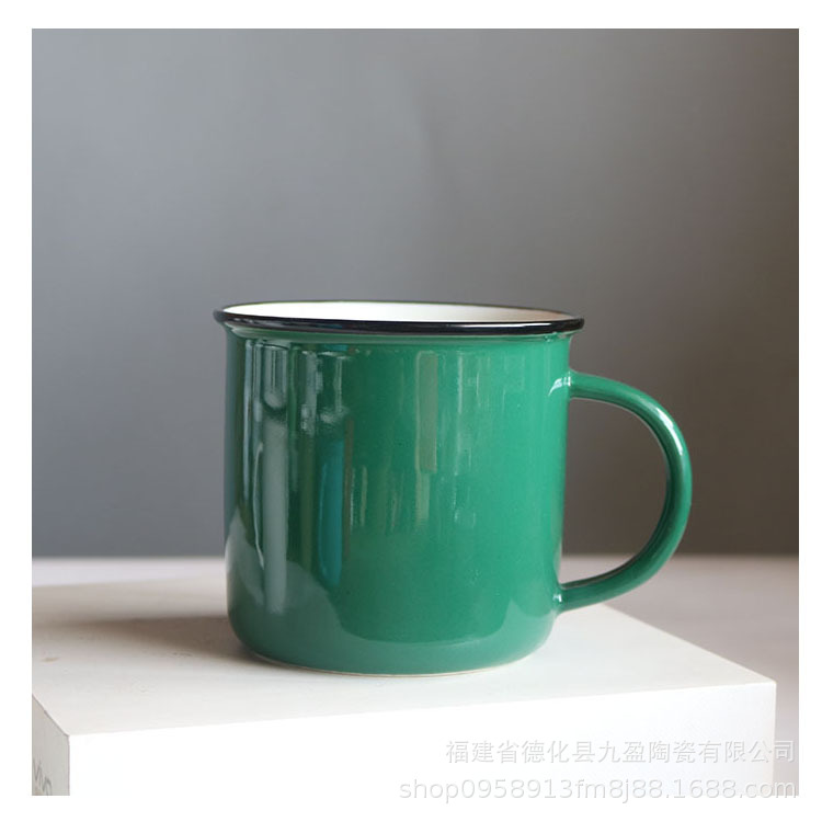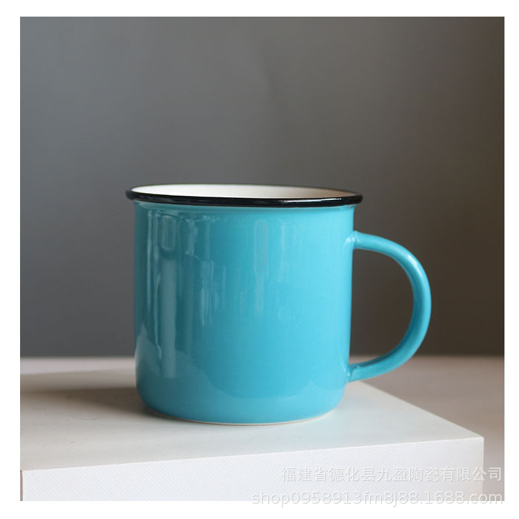 色釉陶瓷杯马克办公水杯复古怀旧仿搪瓷杯创意咖啡欧式杯LOGO礼品
