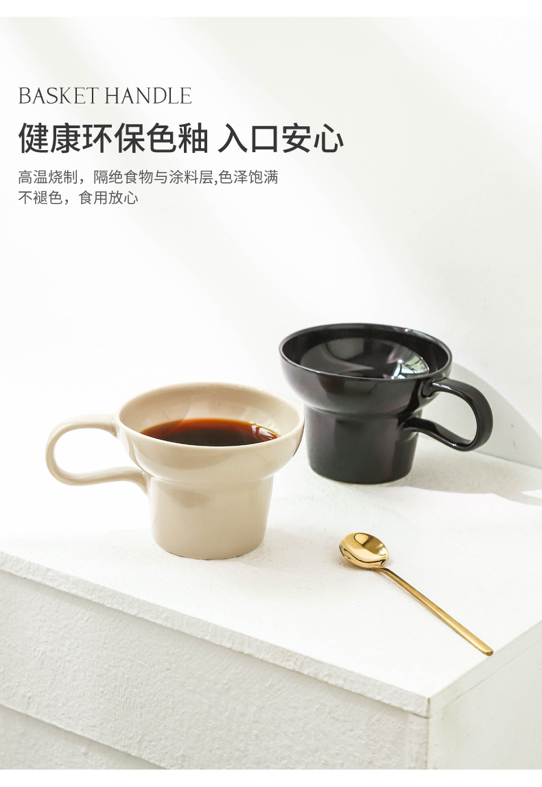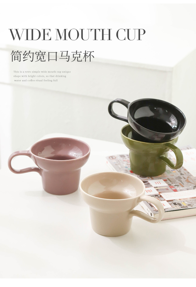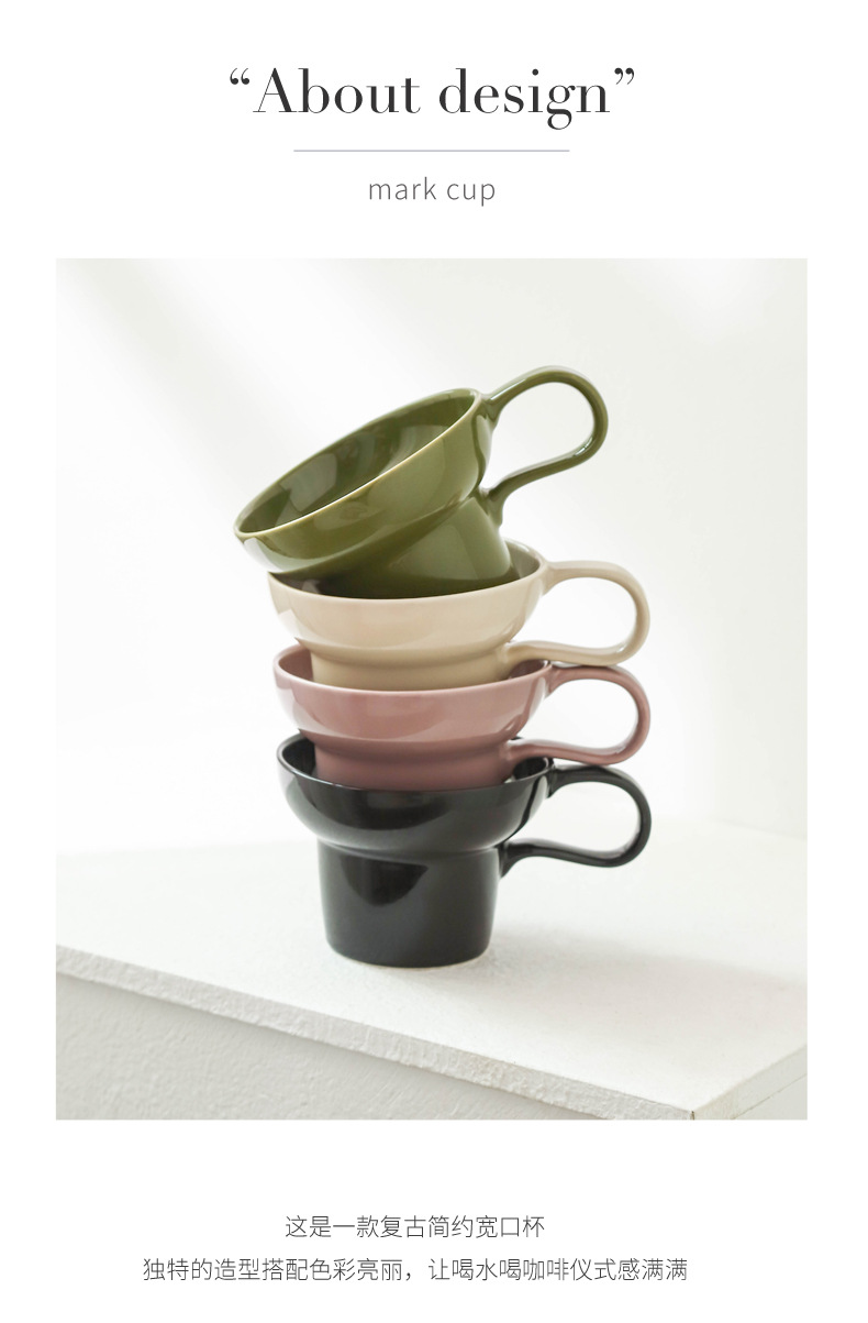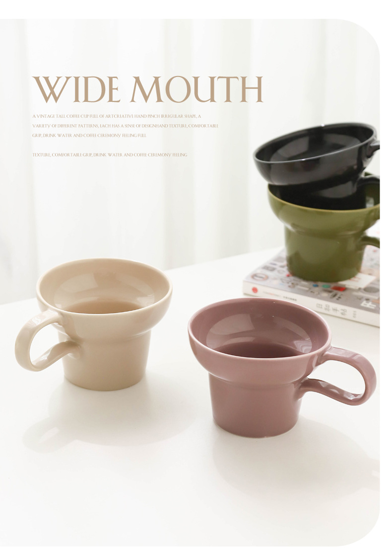 中古风宽口纯色复古陶瓷咖啡杯拉花杯家用办公杯子批发 可印LOGO