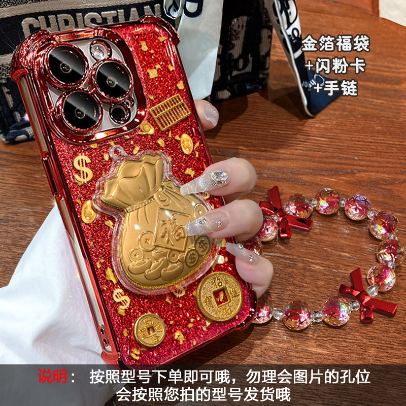金箔福袋手链适用苹果17promax手机壳iphone15电镀防摔16新年女款