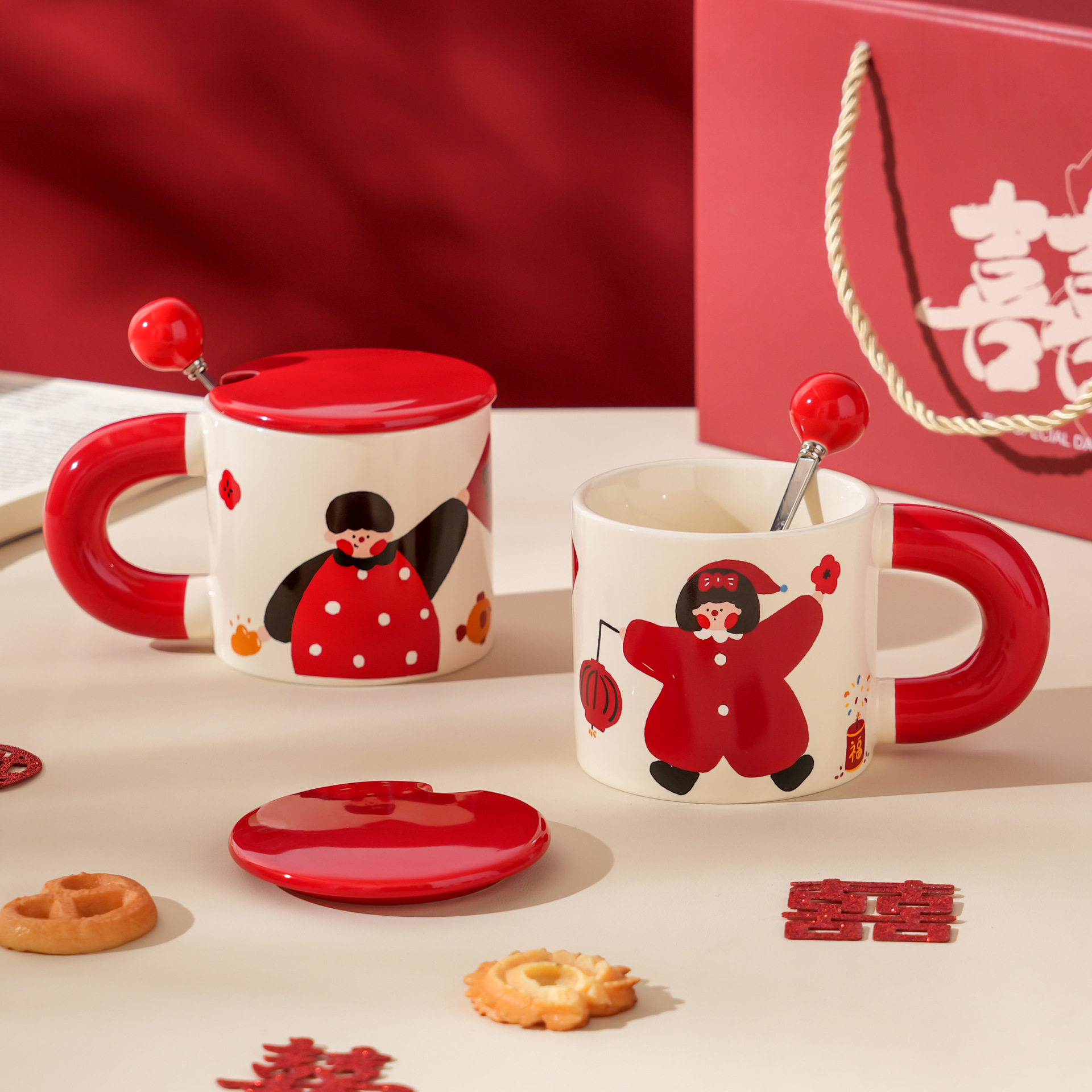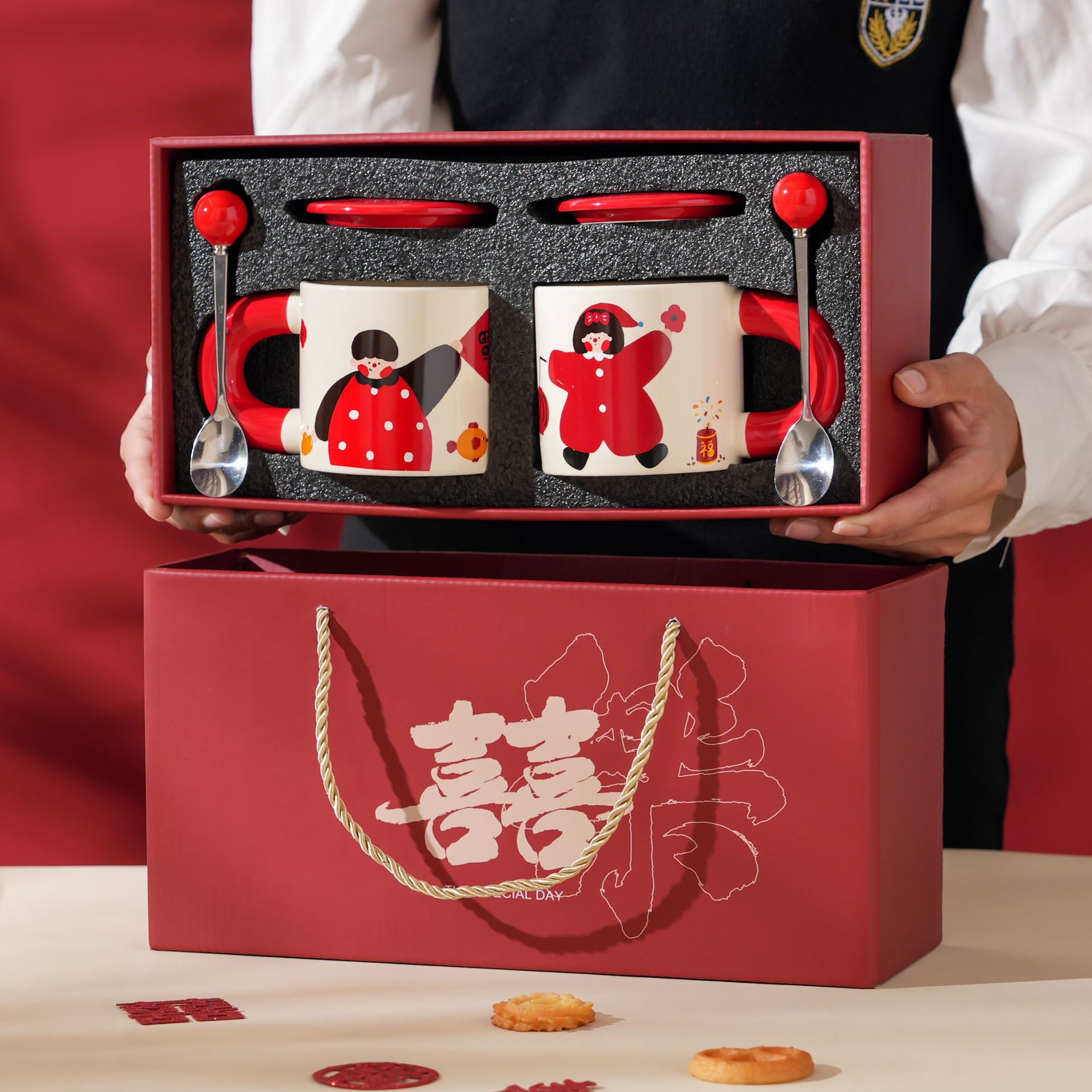 结婚礼物喜字对杯马克杯送朋友新婚礼物杯子一对情侣伴手礼水杯