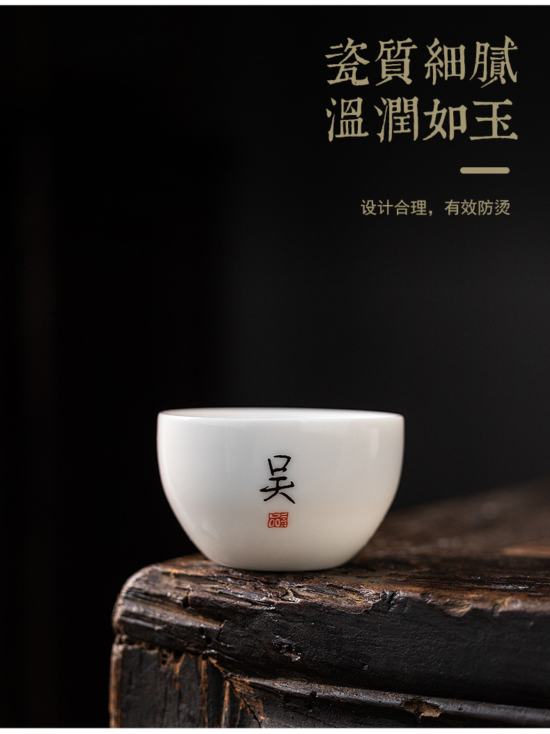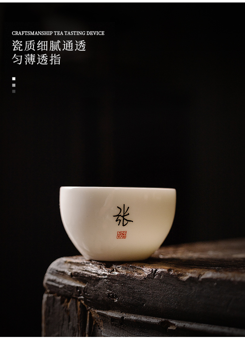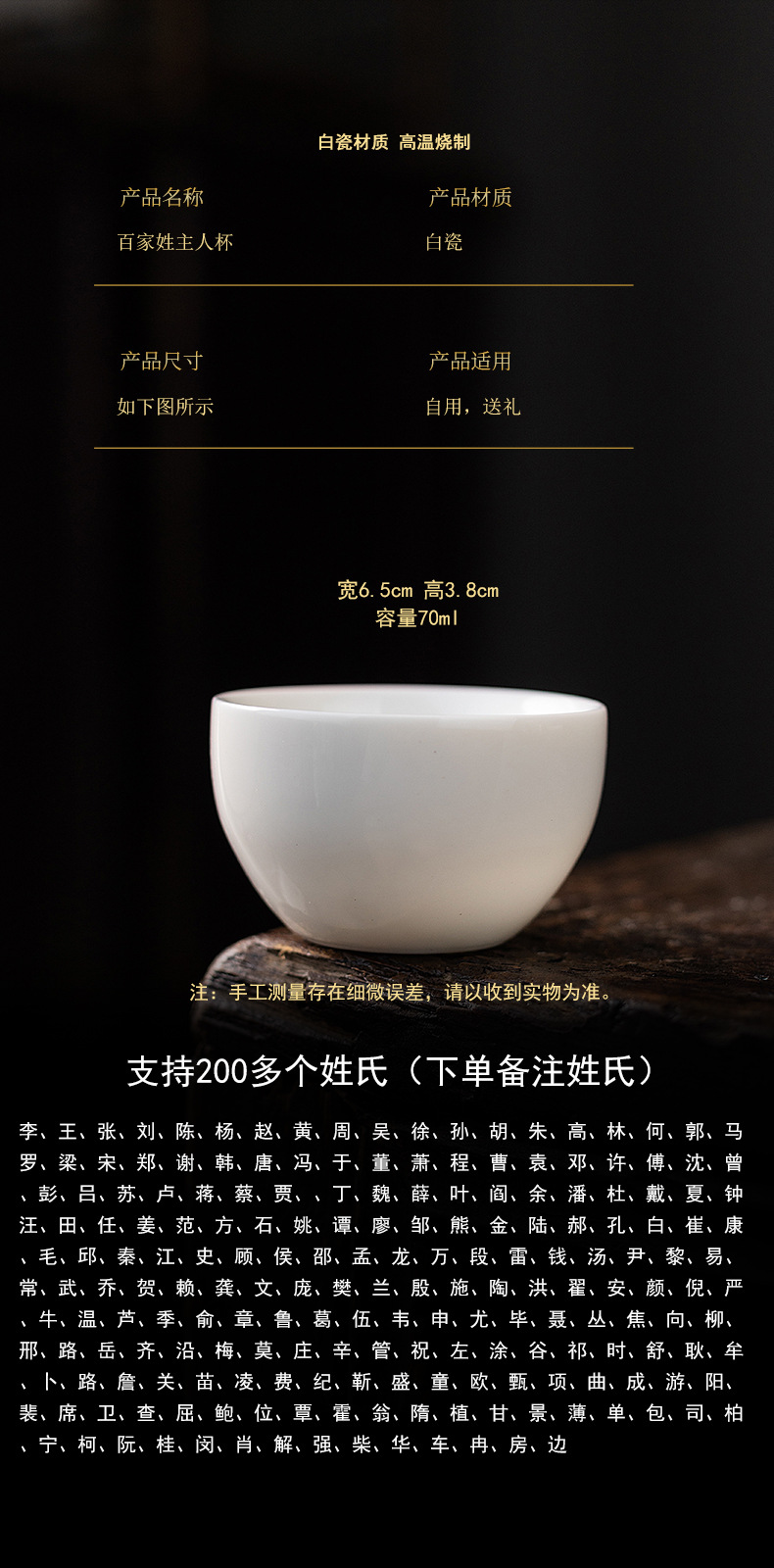 主人杯单杯百家姓私人定 制品茗杯个人杯陶瓷德化白瓷羊脂玉茶杯