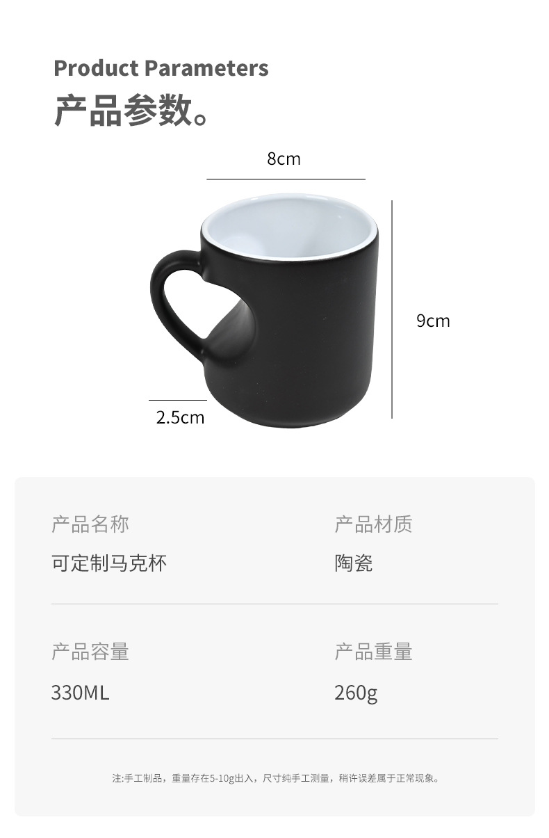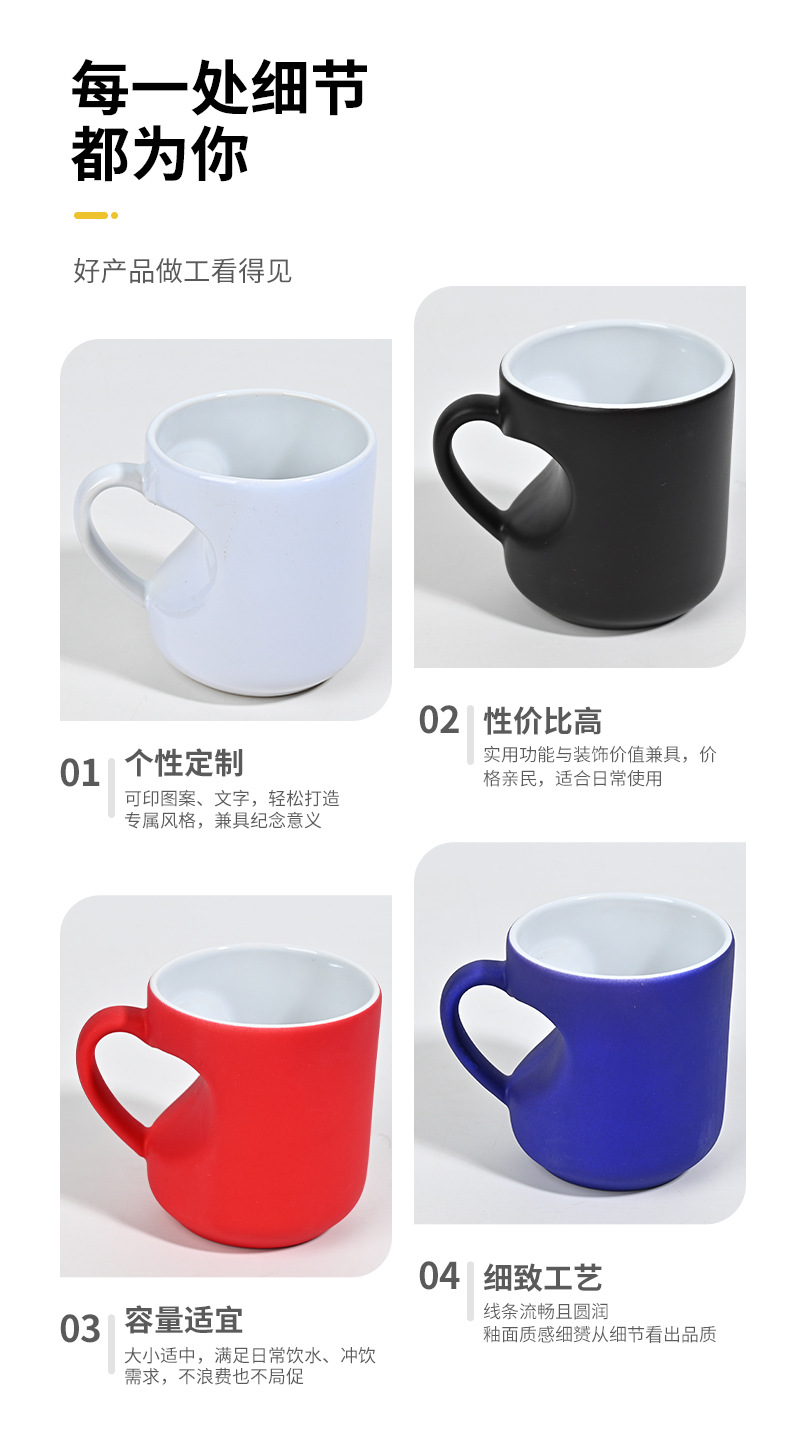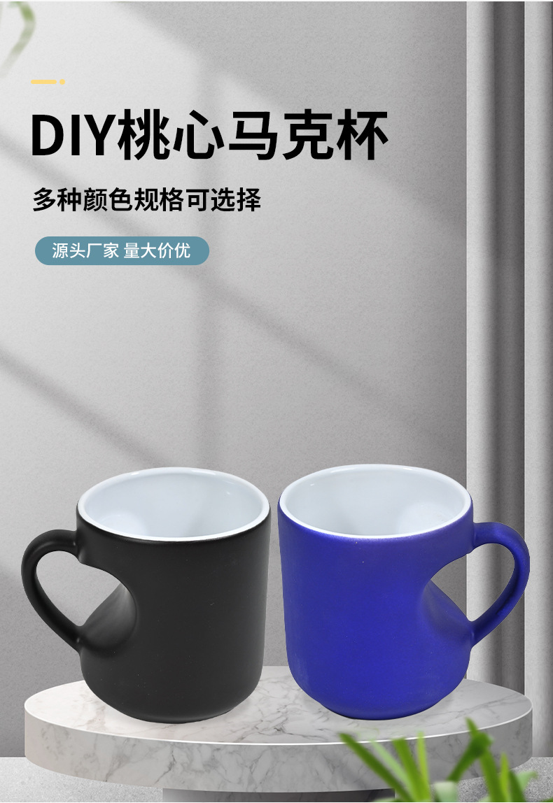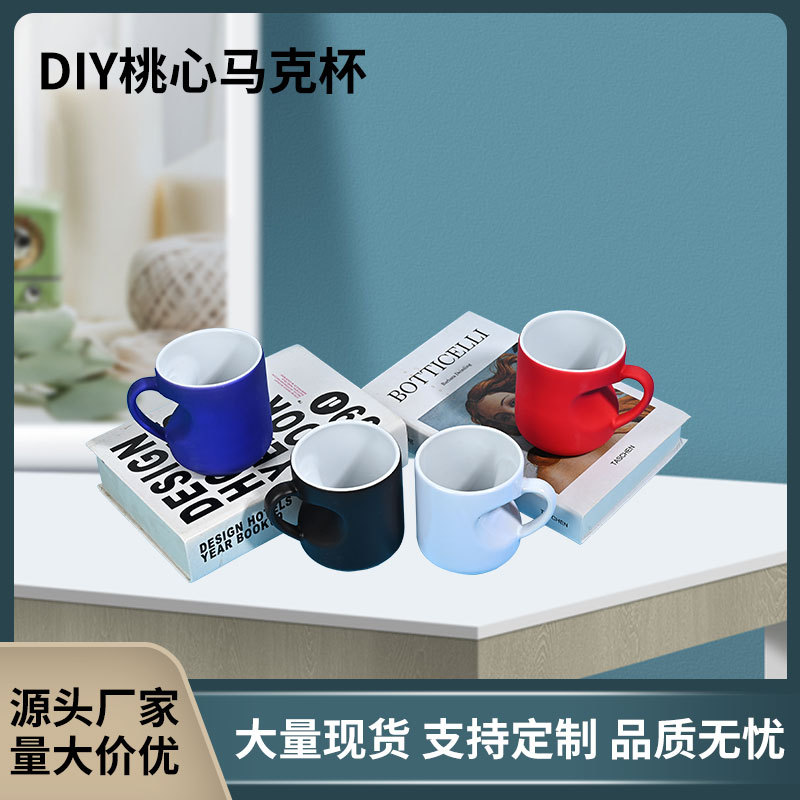 DIY桃心马克杯纯色爱心杯家用杯设计制定图案杯子陶瓷杯批发定制
