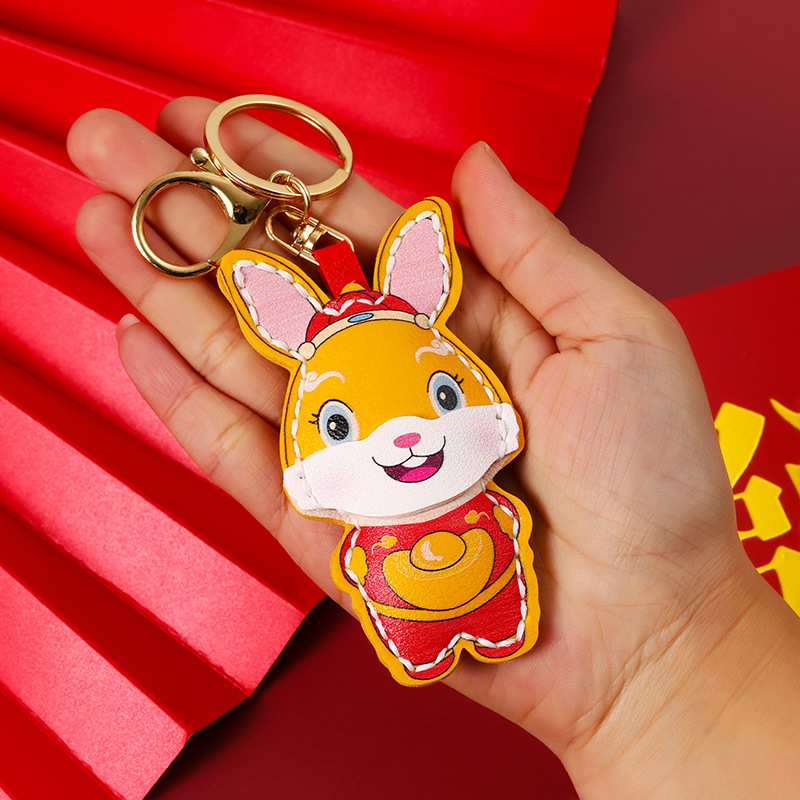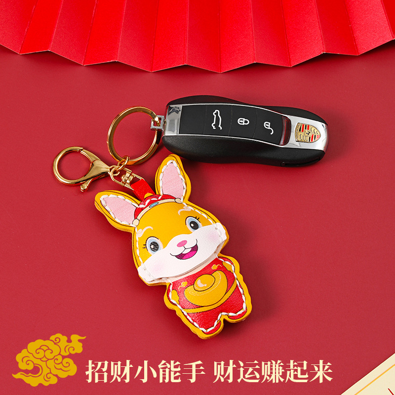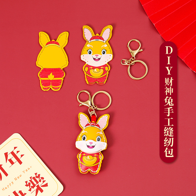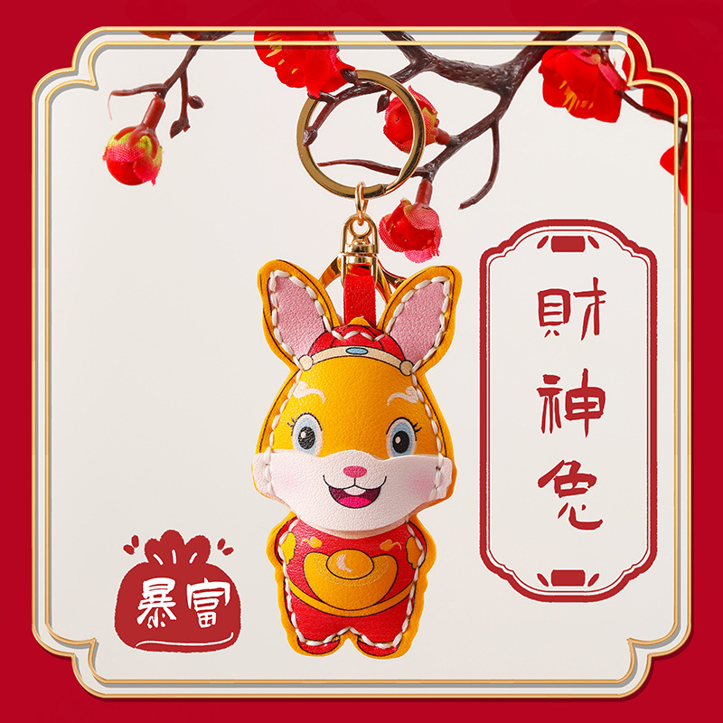 diy财神兔子钥匙扣兔年好运手工挂件可爱卡通挂饰创意新年小礼物