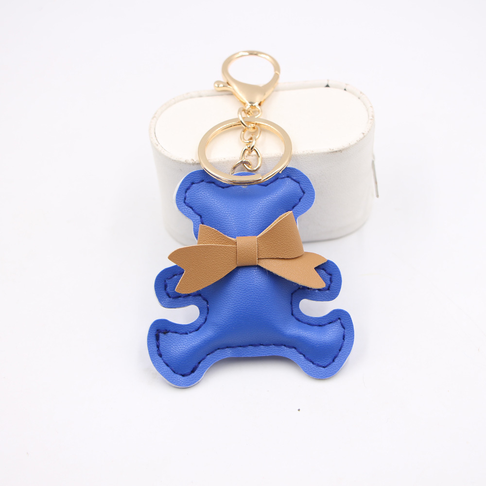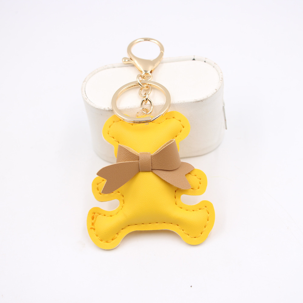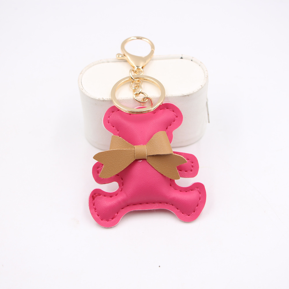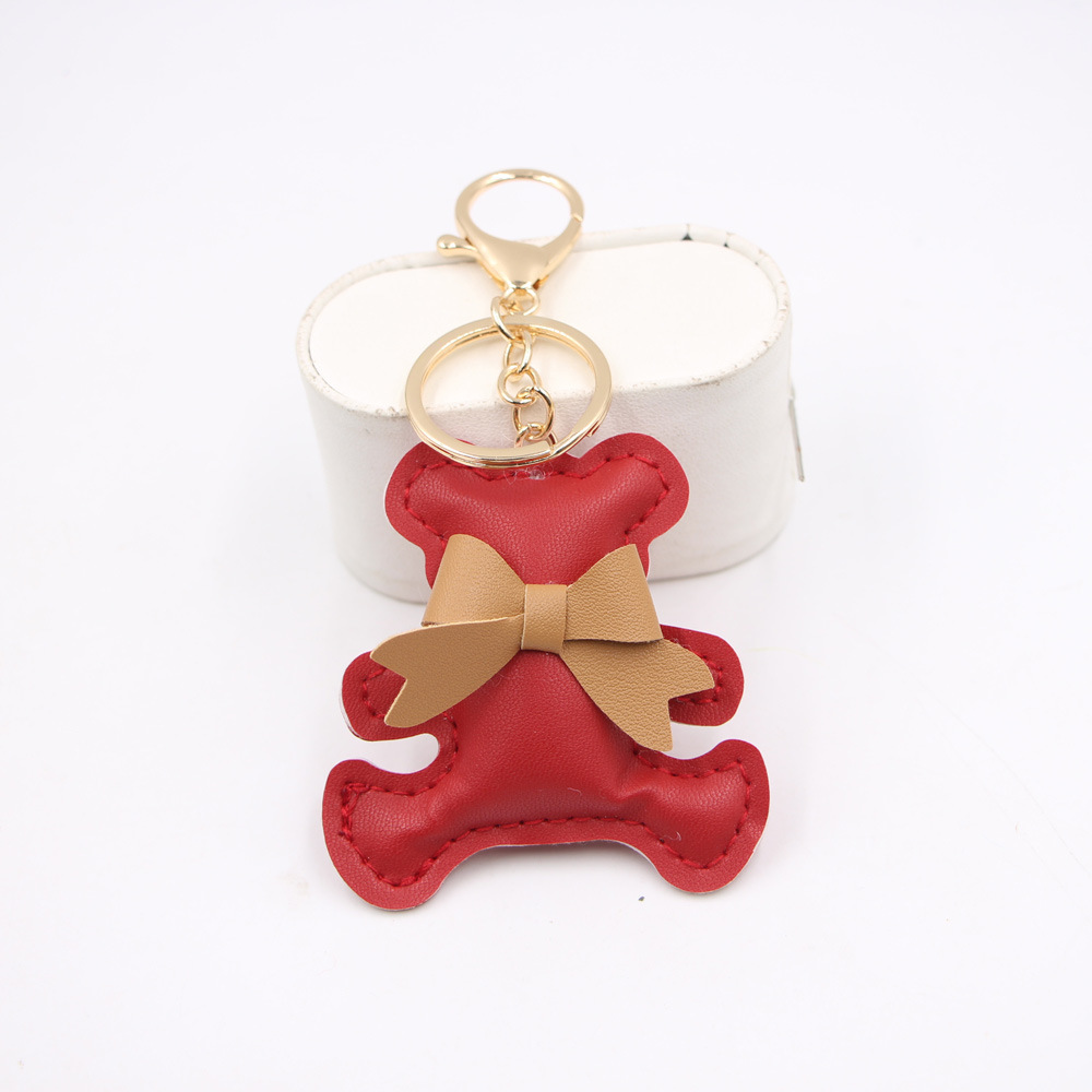 卡通多色可爱小熊蝴蝶结皮革钥匙扣包包挂坠 pu皮革汽车小熊挂饰