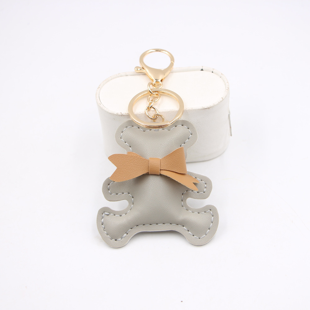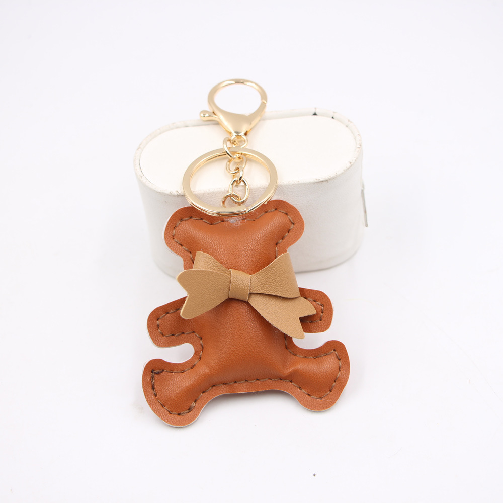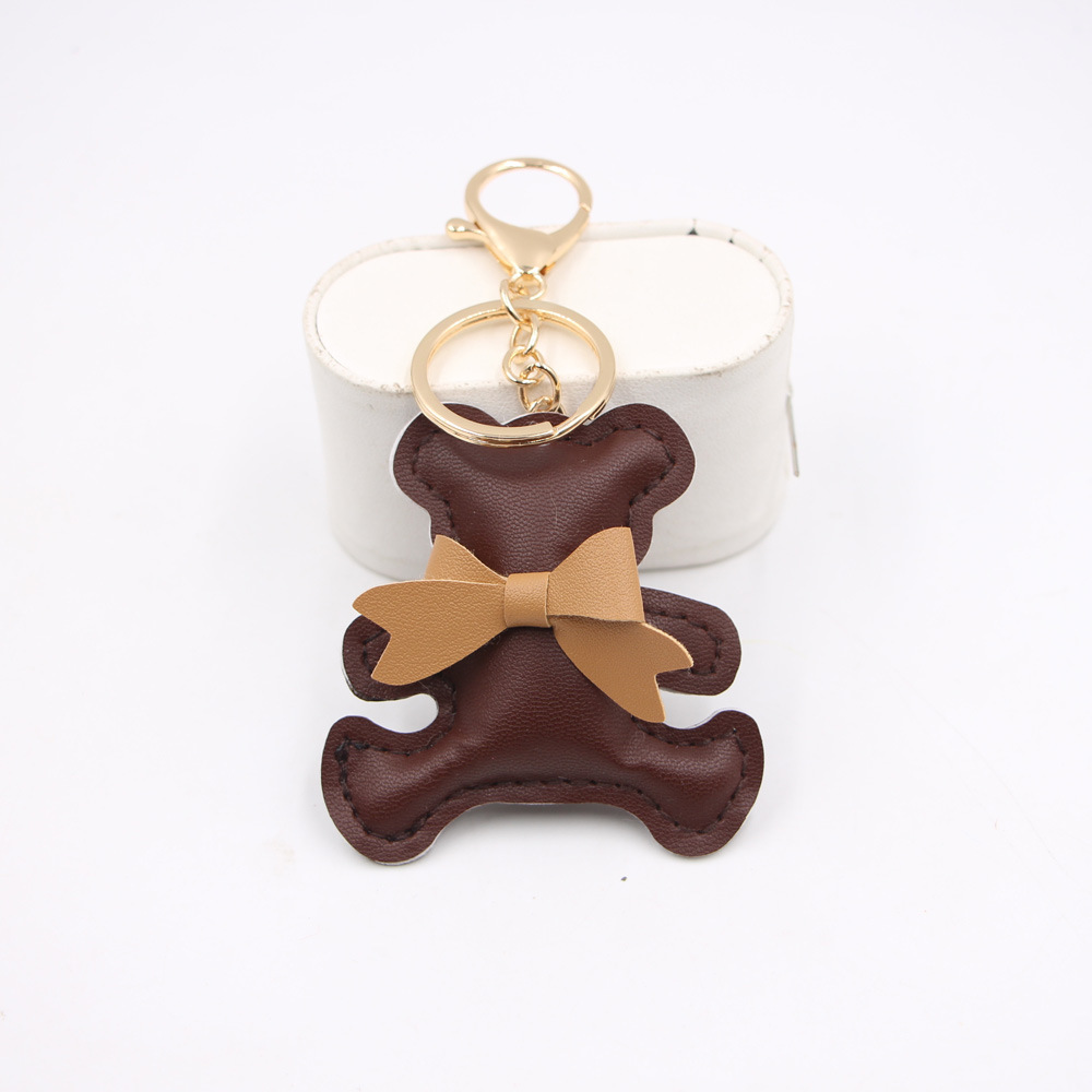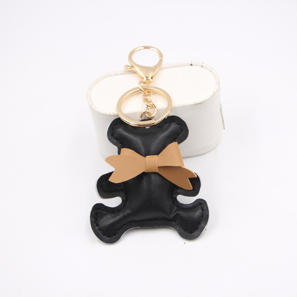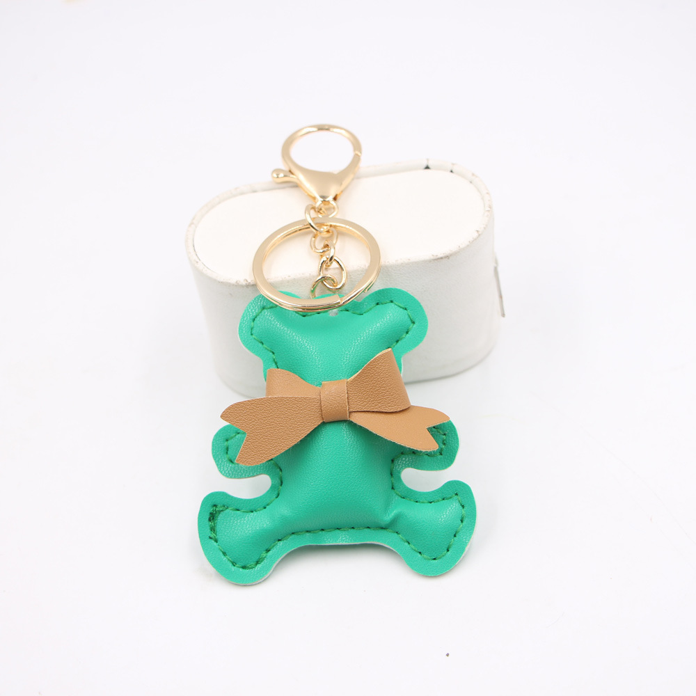 卡通多色可爱小熊蝴蝶结皮革钥匙扣包包挂坠 pu皮革汽车小熊挂饰