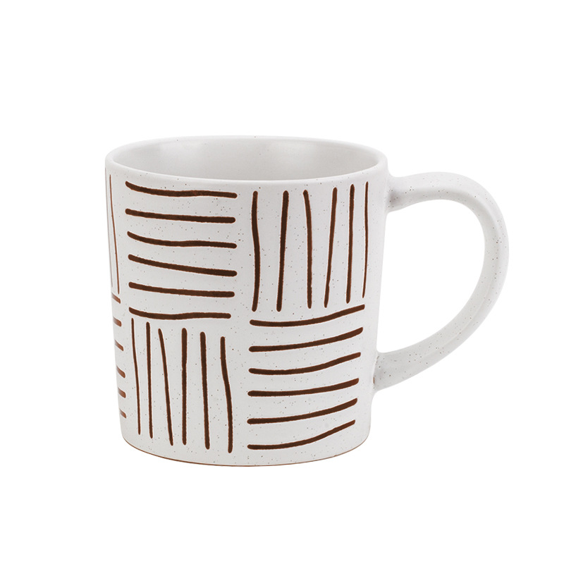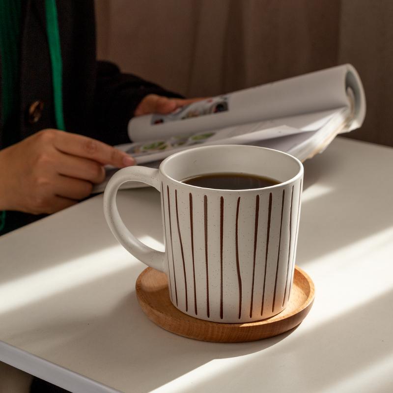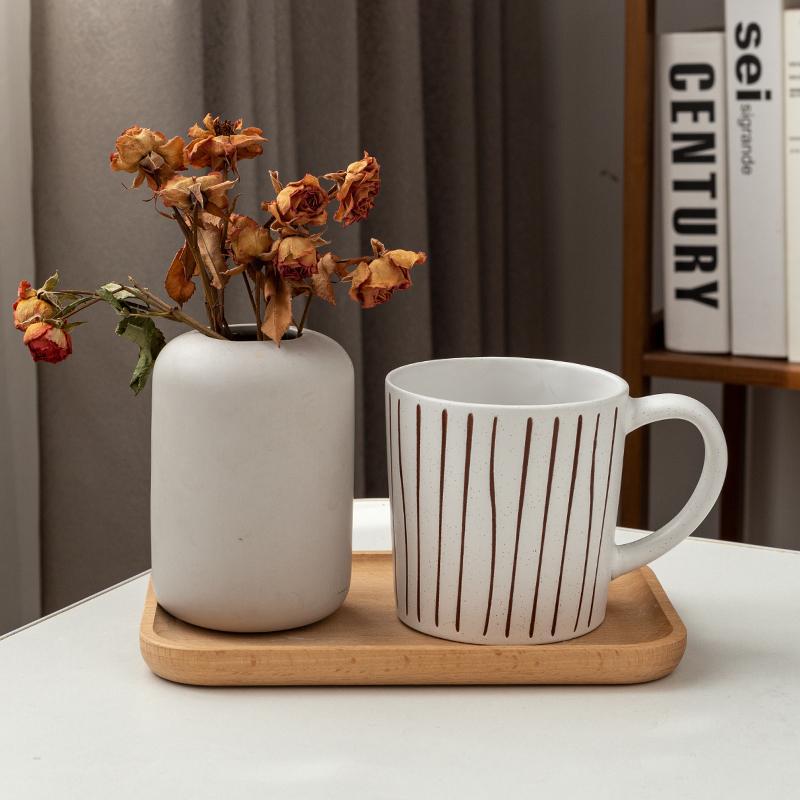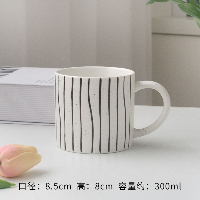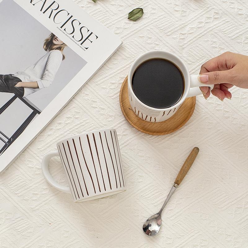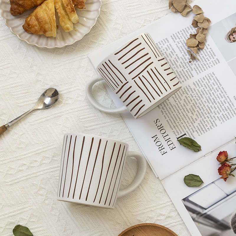 vintage复古简约线条咖色创意陶瓷马克杯情侣对杯手办礼品活动杯z