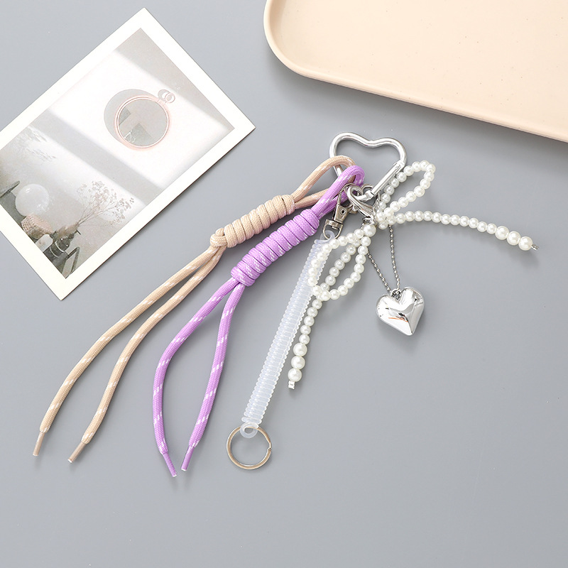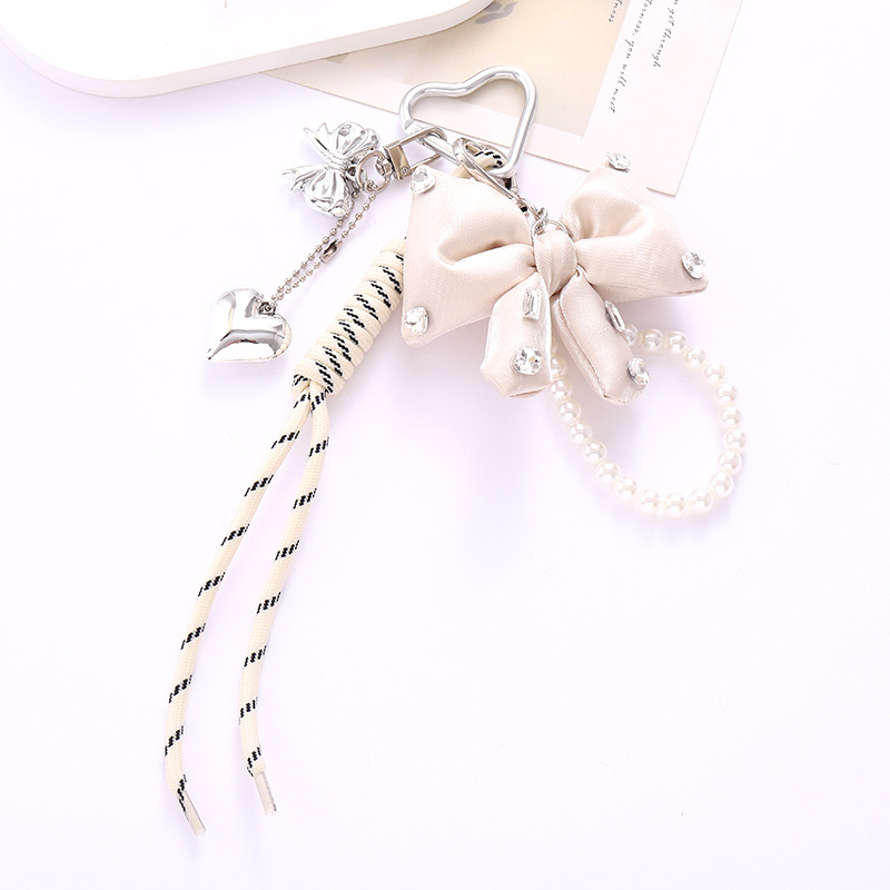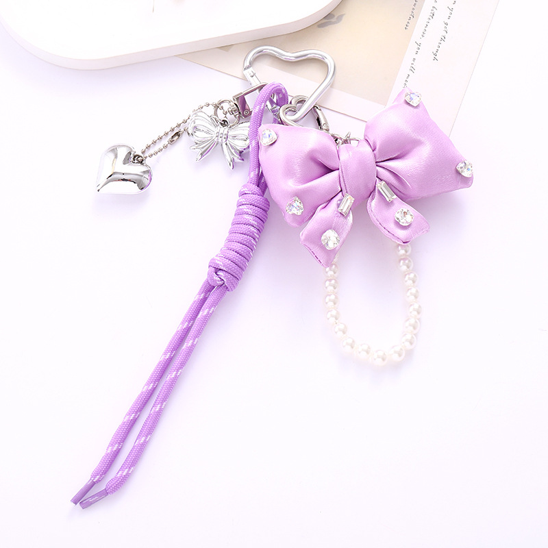 ins新款皮革蝴蝶结爱心挂件箱包钥匙扣挂链配饰单扣流苏挂饰配件