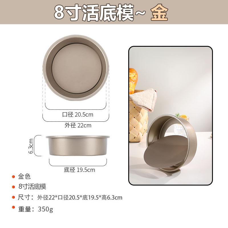 【 金 /黑 】 8寸活底模: 外径:22cm 口径:20.5cm 底径:19.5 高:6.3cm 【重量】8寸:350克