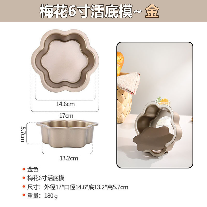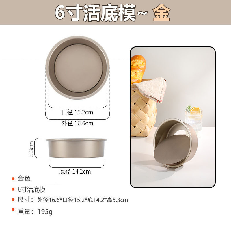 【 金 /黑 】 6寸活底模: 外径:16.6cm 口径:15.2cm 底径:14.2 高:5.3cm 【重量】8寸:195克
