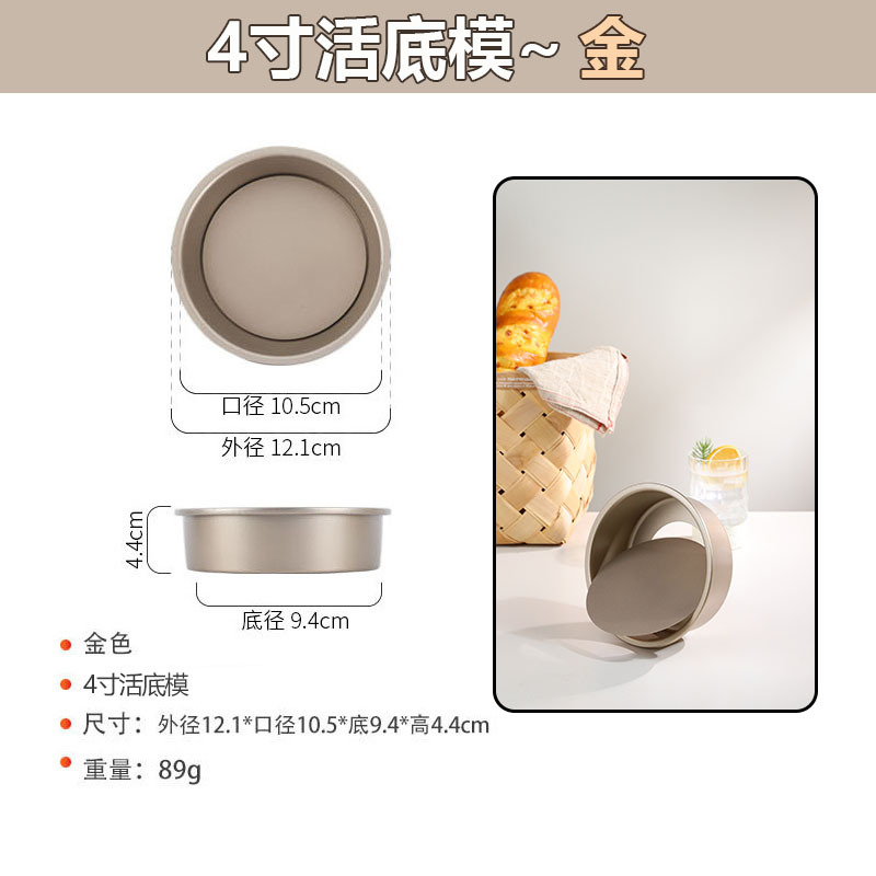 【 金 /黑 】 4寸活底模: 外径:12.1cm 口径:10.5cm 底径:9.4 高:4.4cm 【重量】4寸:89克
