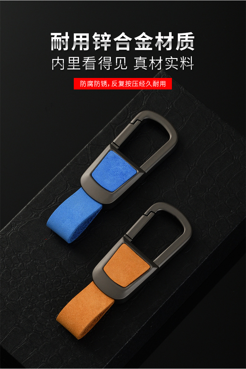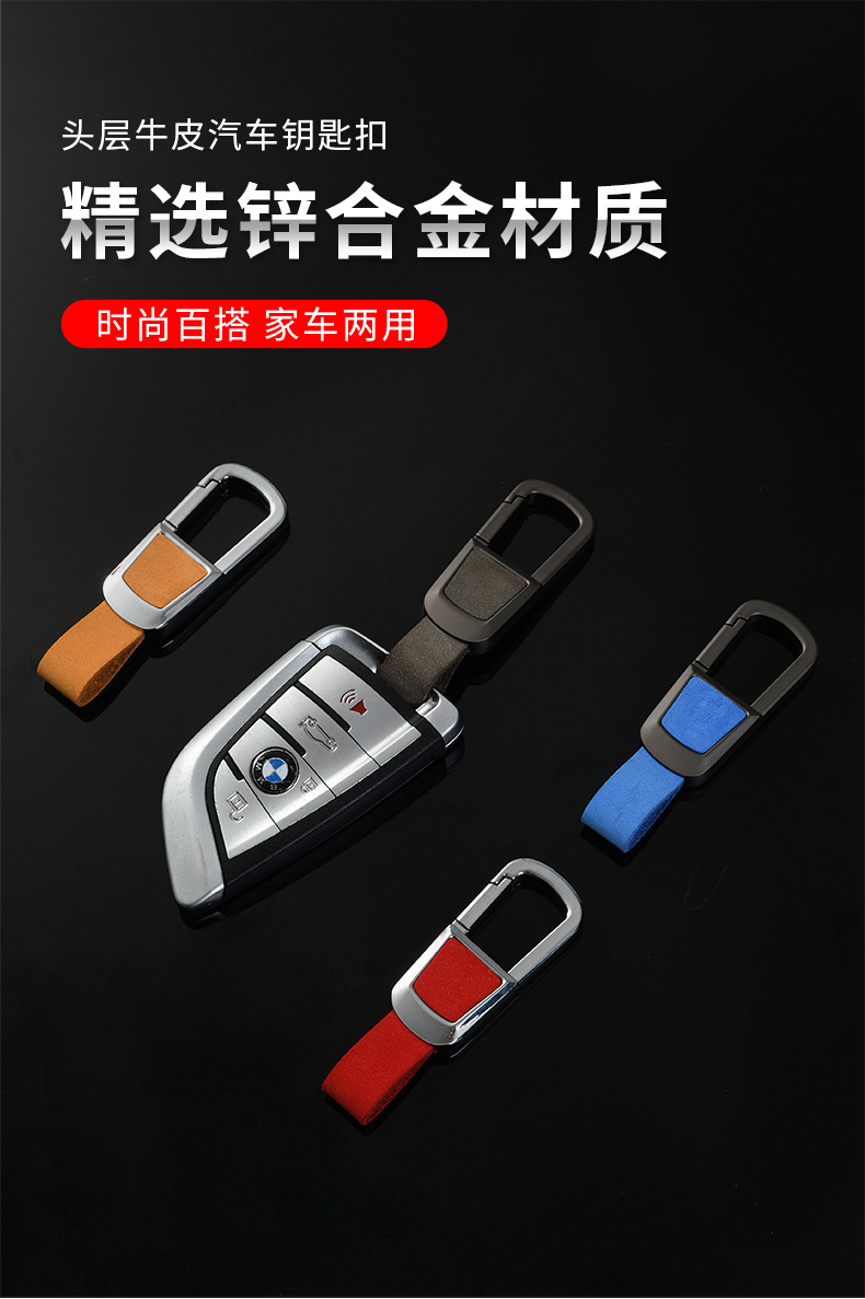 跨境磨砂牛皮汽车钥匙扣男士锁匙扣挂饰高档真皮防丢钥匙链包挂件