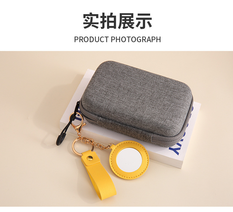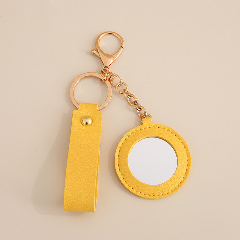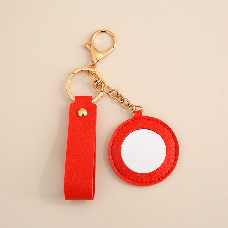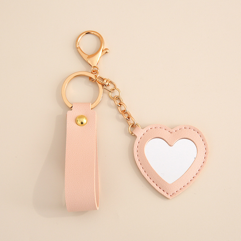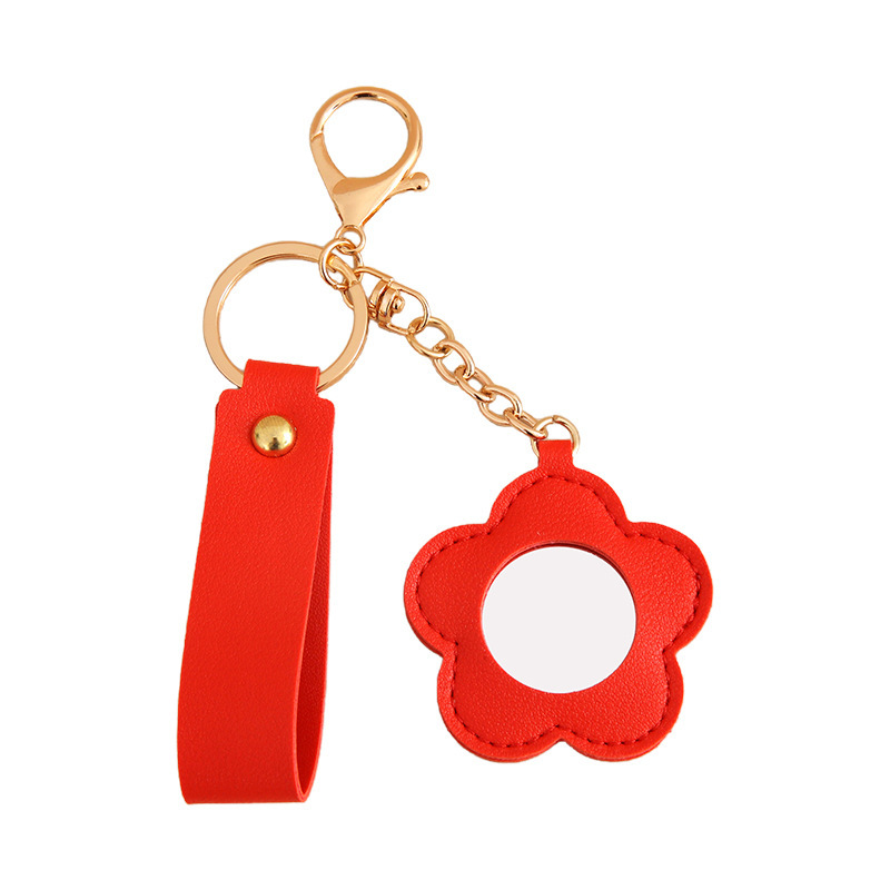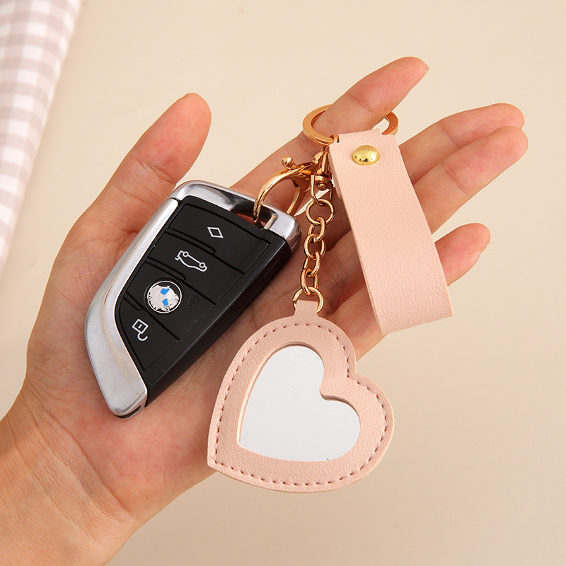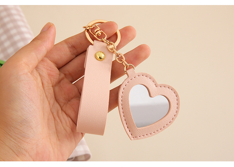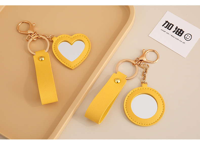 创意简约爱心镜子钥匙扣包包饰品钥匙绳PU皮质花朵圆镜防丢钥匙扣