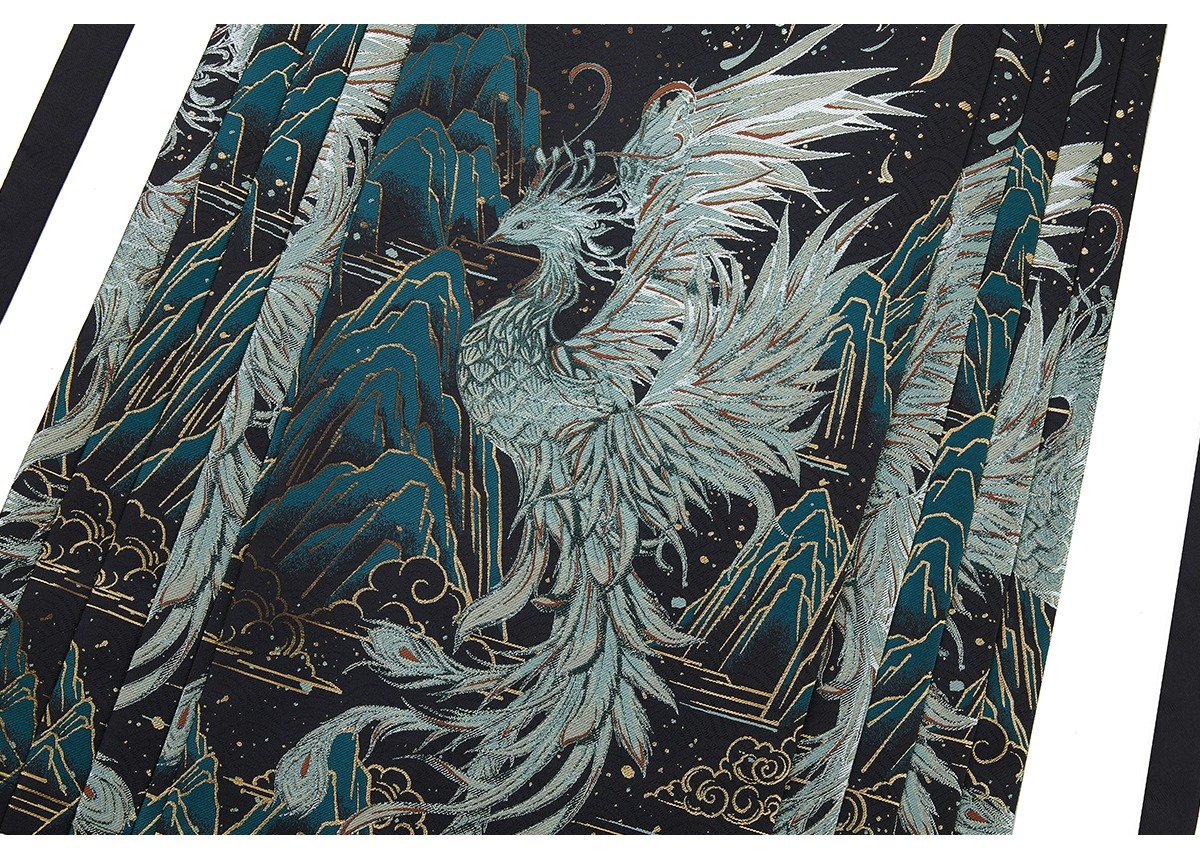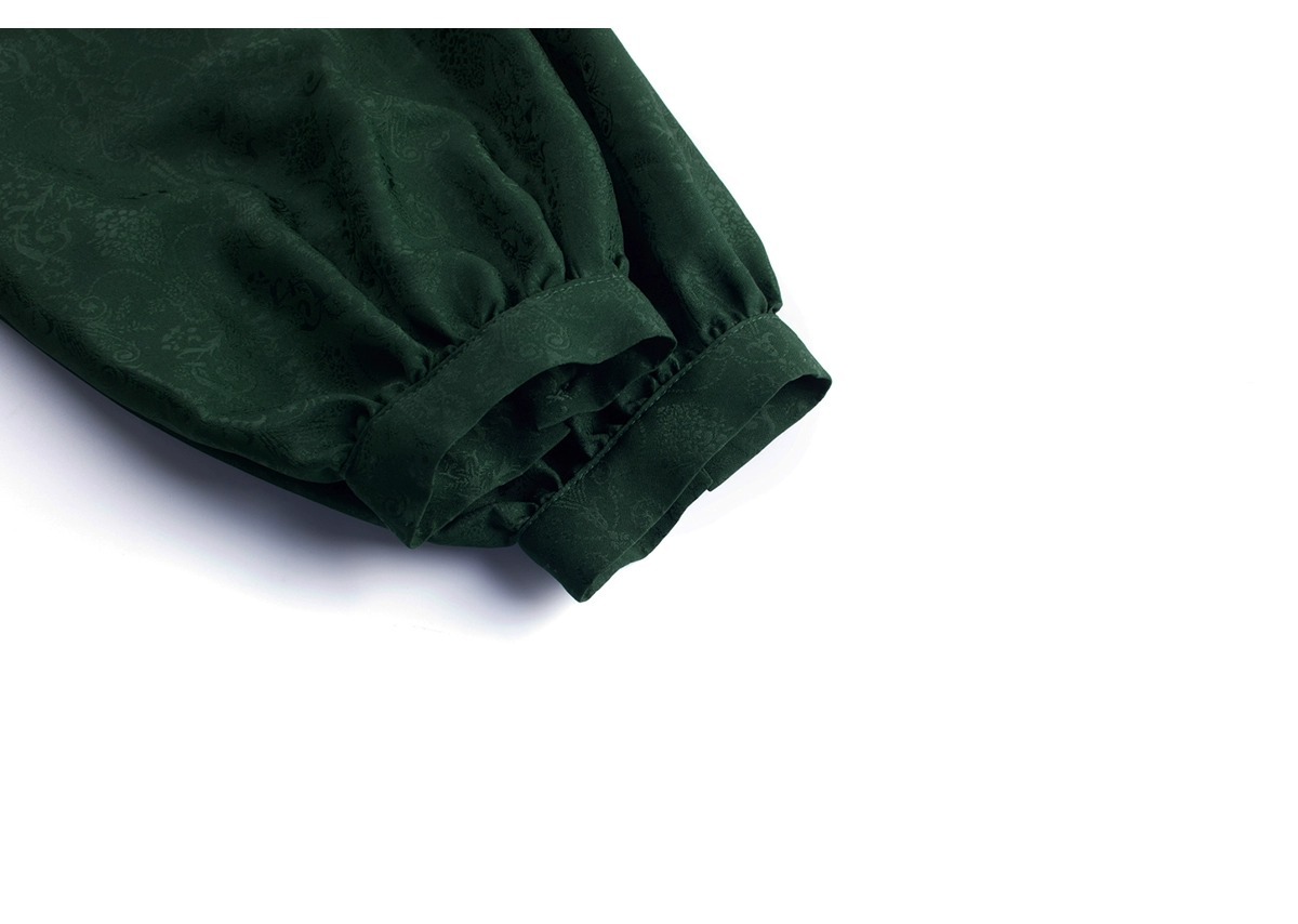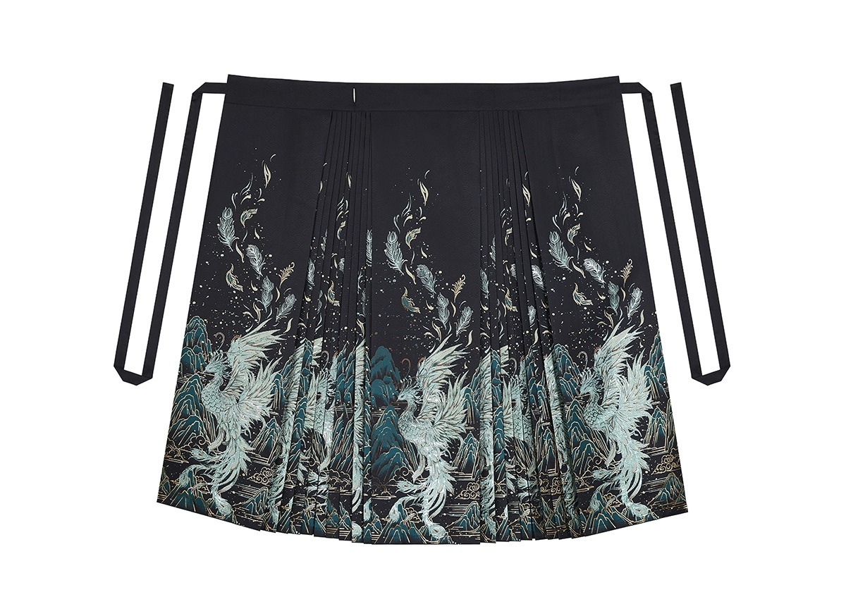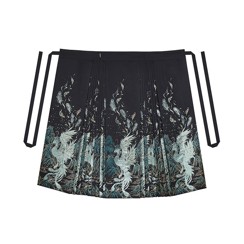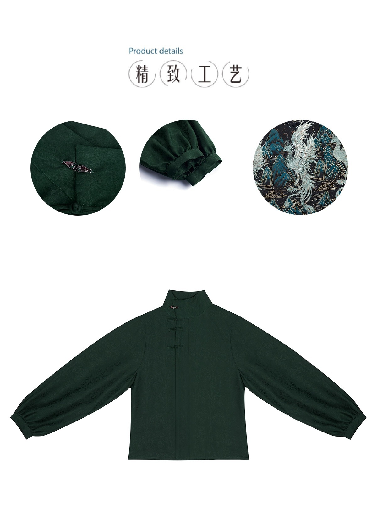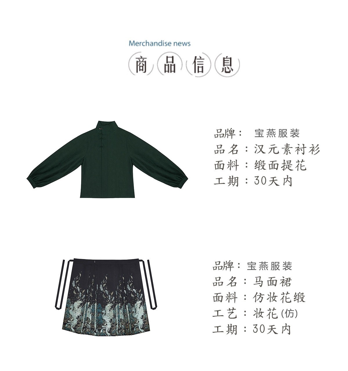 明制汉服半高领衬衫上衣仿妆花马面裙套装羽裳墨绿青羽马面裙