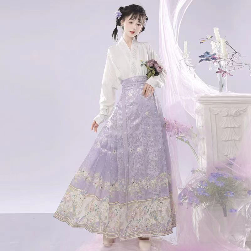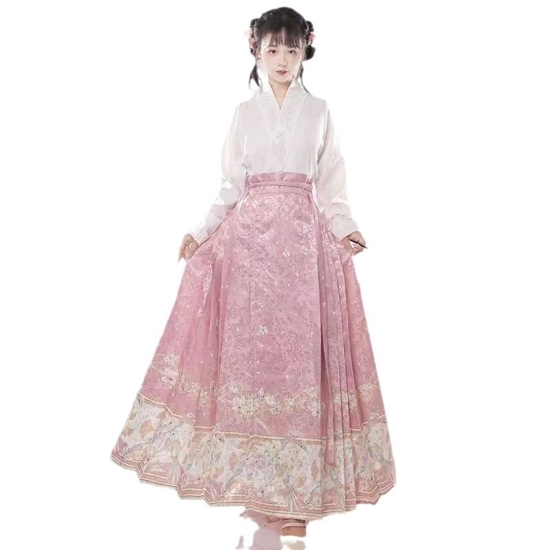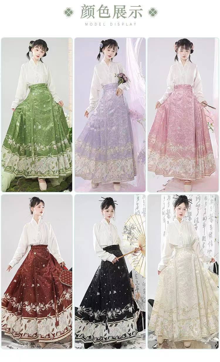 新款国风汉服马面裙搭配汉服明制绣花交领飞机袖日常显瘦套装