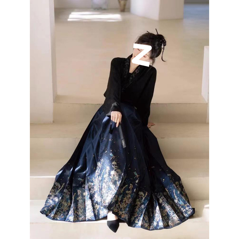 罗袖动香明制汉服女国风马面裙通勤酷系女春夏印花款一件包邮