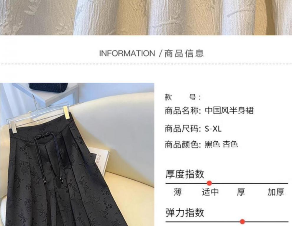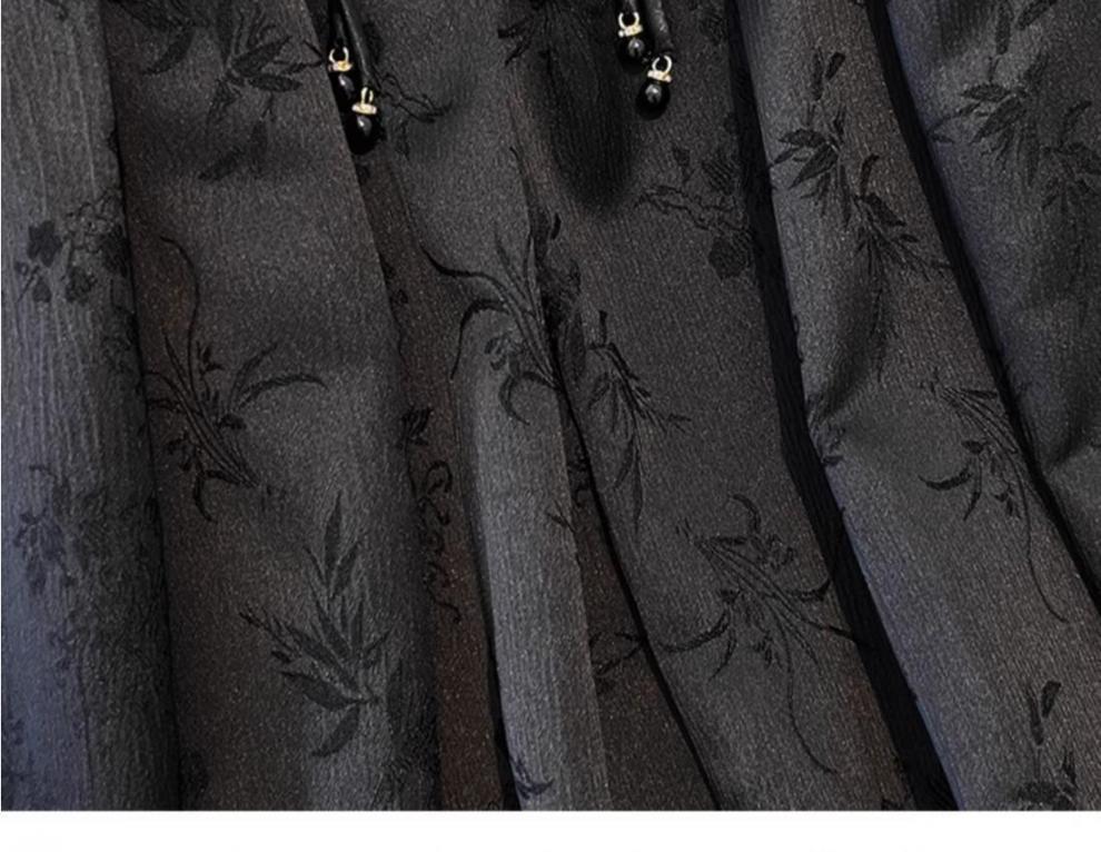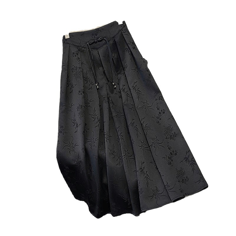 高级感提花国风盘扣黑色马面裙春夏新款大码胖mm新中式改良百褶裙