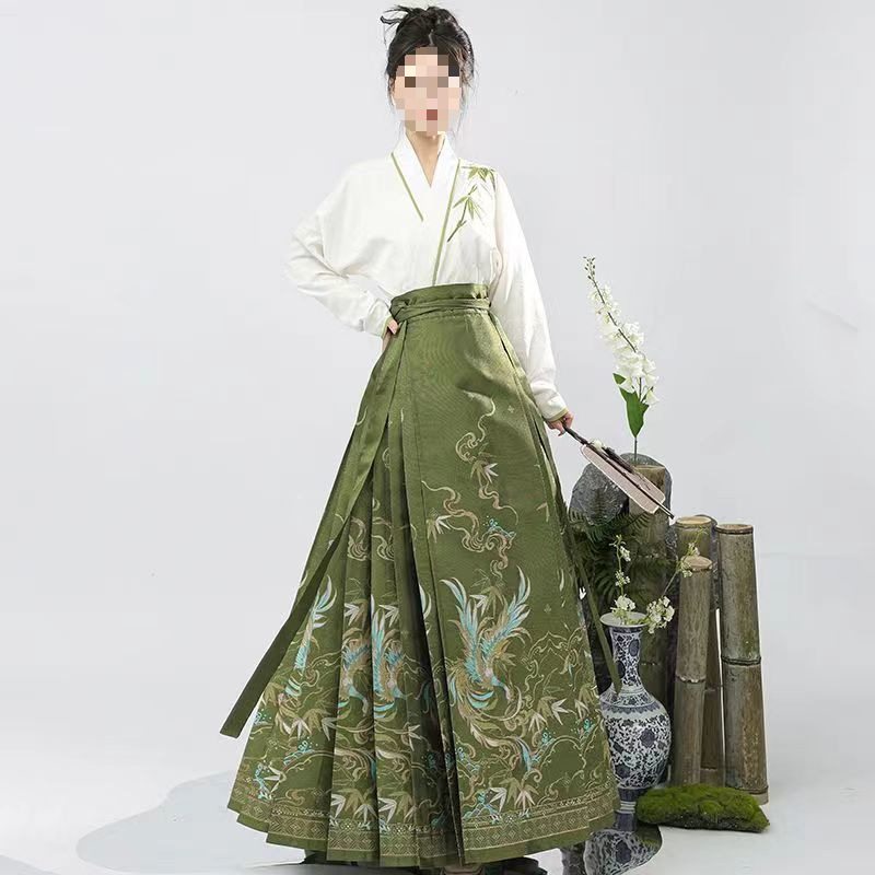 国风马面裙明制汉服女新中式长袖刺绣衬衫两件套装包邮一件起批