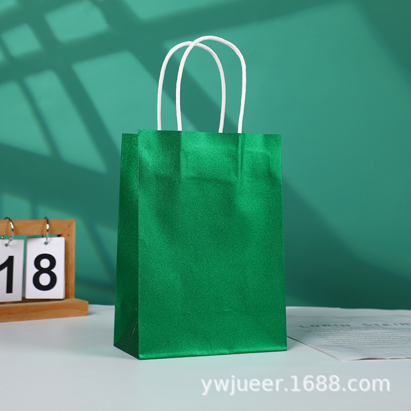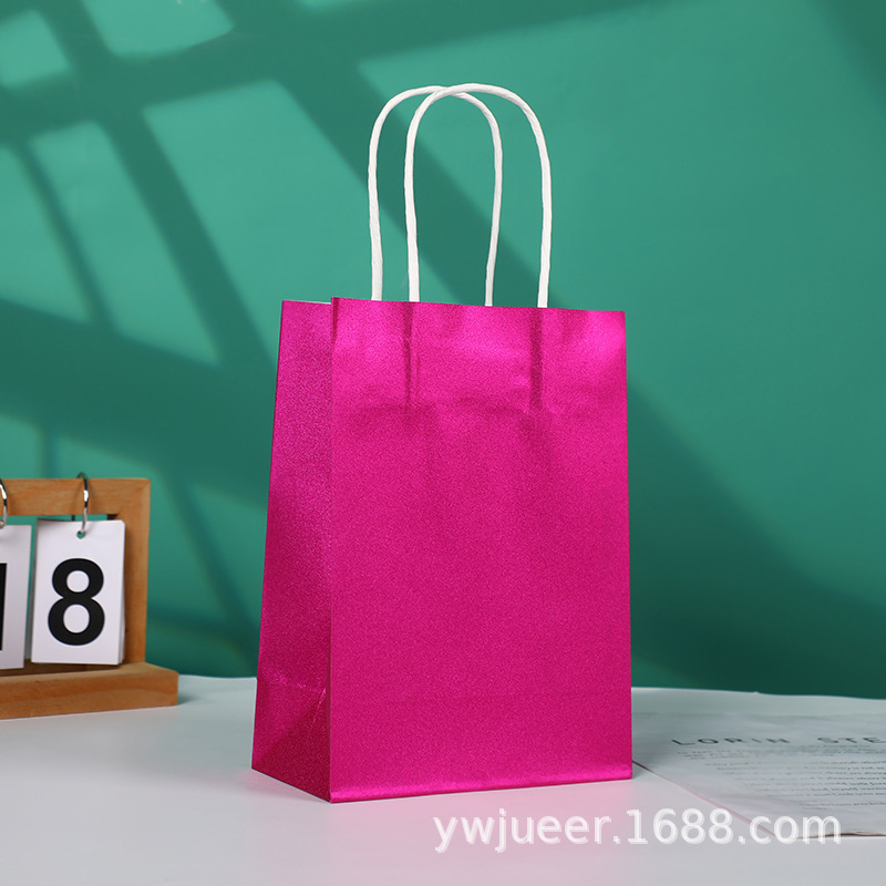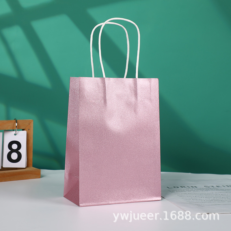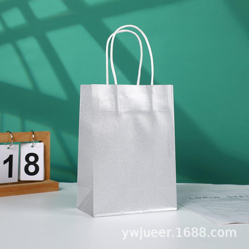 创意彩色亮面手提礼品袋 白牛皮纸大容量送礼纸袋细闪超市购物袋