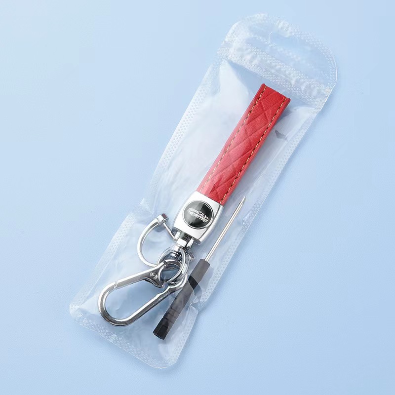 厂家现货新款锌合金钥匙汽车钥匙扣压纹小羊皮马D扣商务礼品