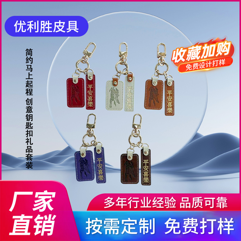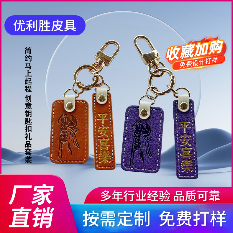 简约马上起程创意方形钥匙扣皮革挂件配饰包包钥匙饰品可定logo