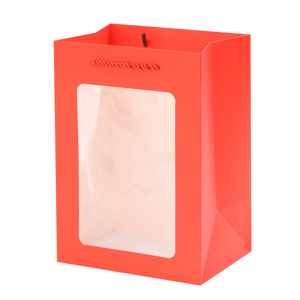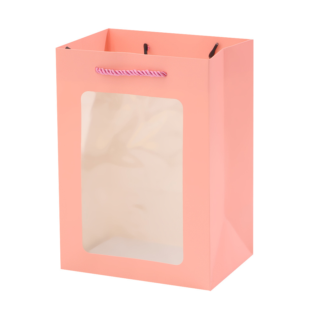 情人节空窗透明手提袋节日礼品鲜花包装袋网红方形开窗玩偶礼品袋