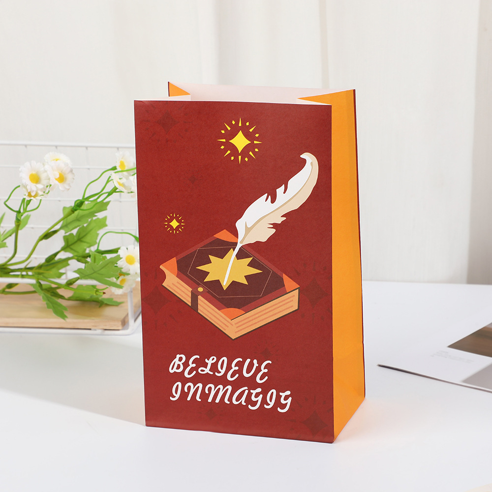 牛皮纸袋卡通礼物袋大容量伴手礼包装纸袋打包收纳平口手提礼品袋