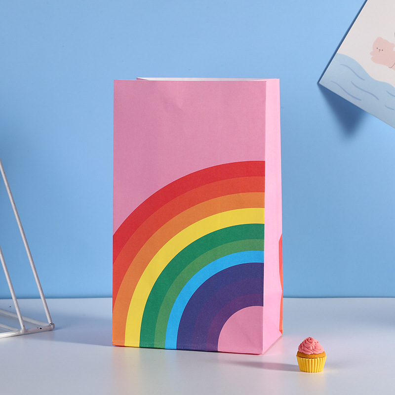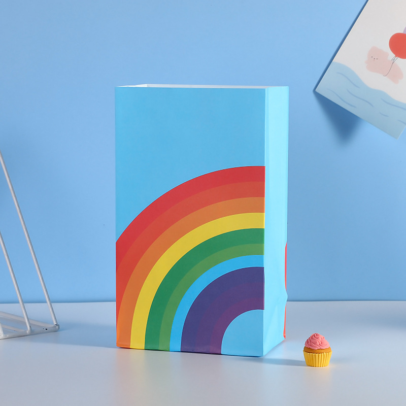 平口方底白牛皮纸袋彩虹印花配色伴手礼节日礼物甜品包装袋批发