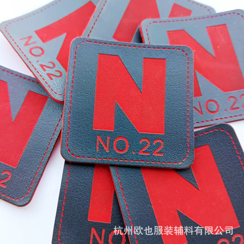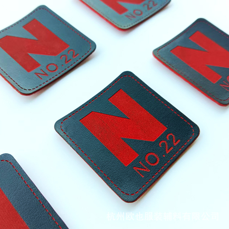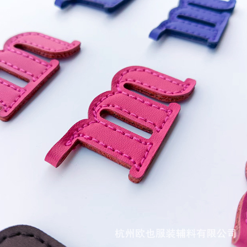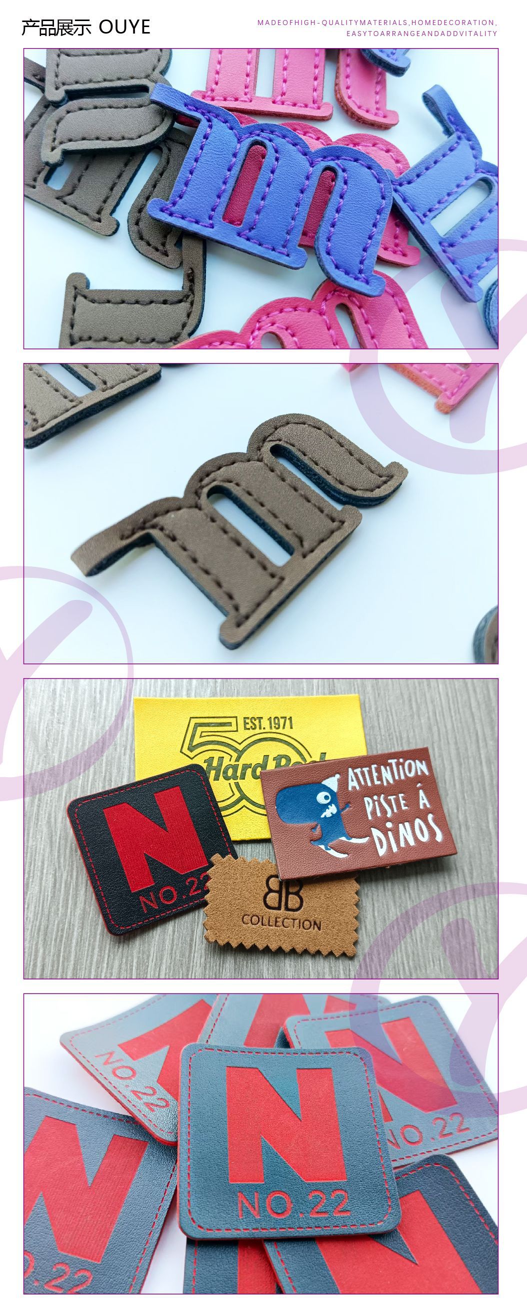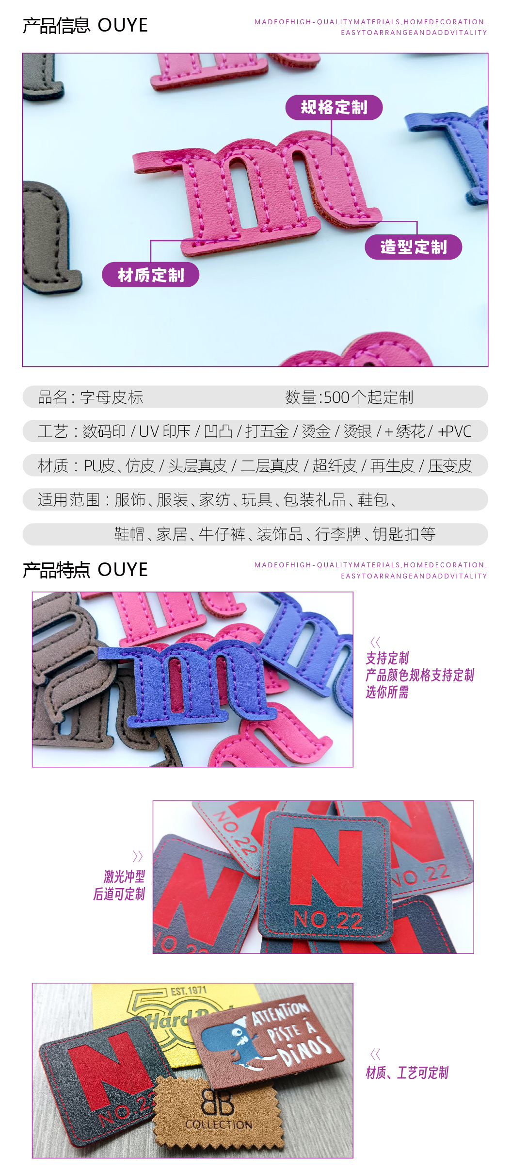 英文字母皮标手工缝纫空白皮牌激光LOGO切型PU皮压印钥匙扣挂饰