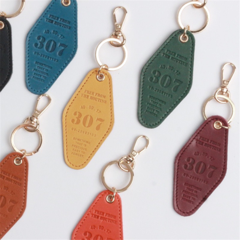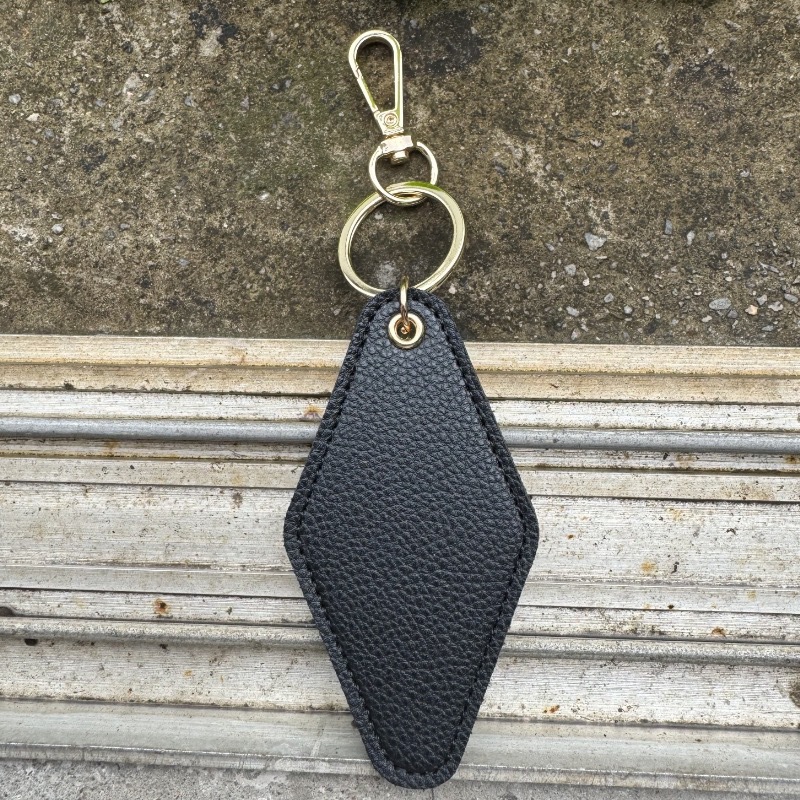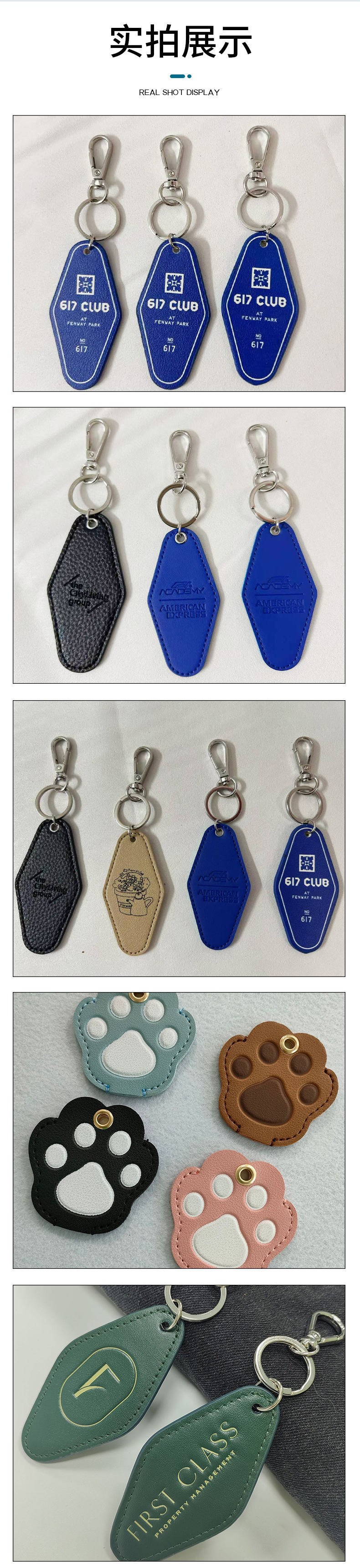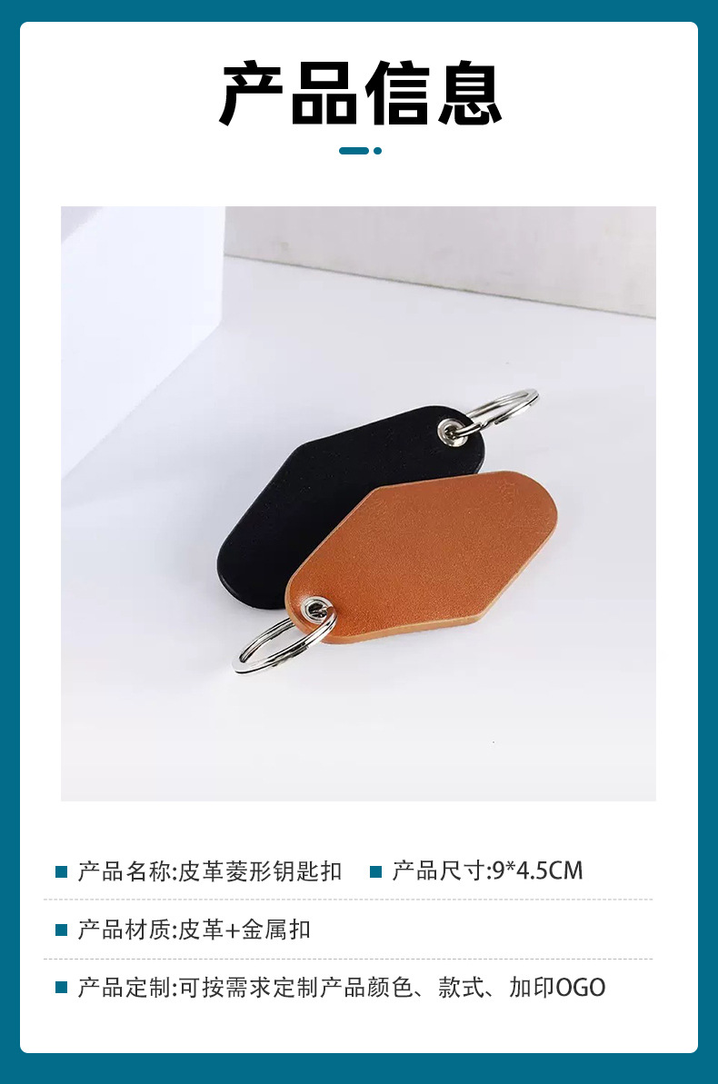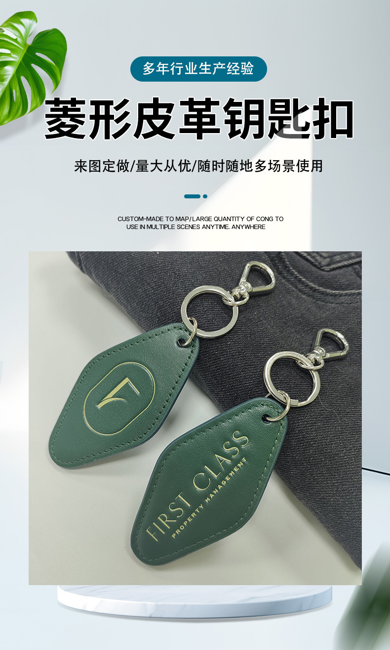 跨境菱形皮革钥匙扣挂件便携包包配饰PU皮菱形汽车钥匙装饰配件