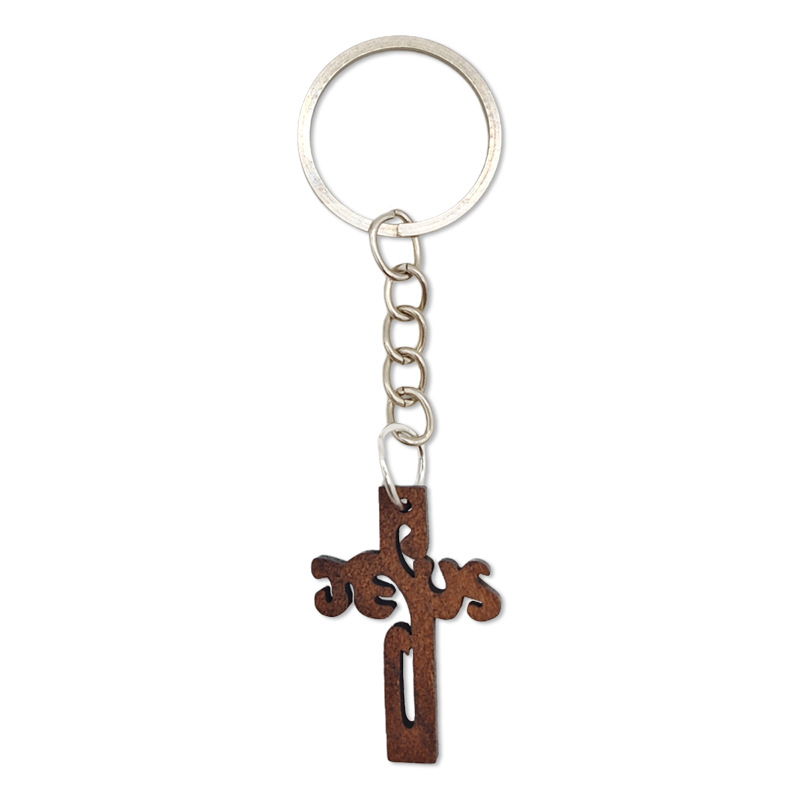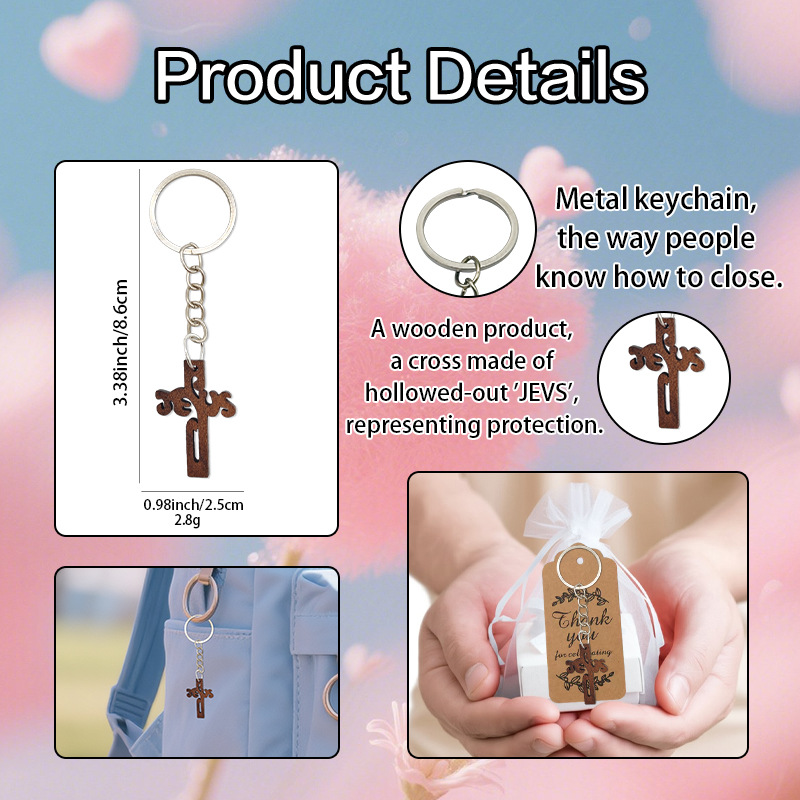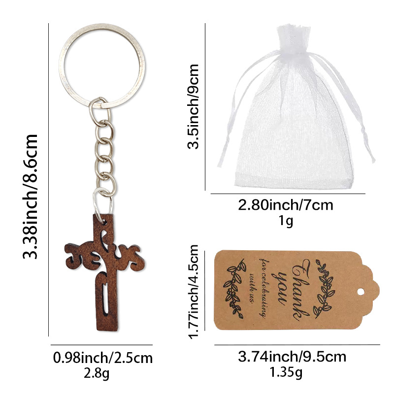 跨境爆款木牌十字架钥匙扣派对礼品牛皮纸标签和欧根纱袋洗礼礼品
