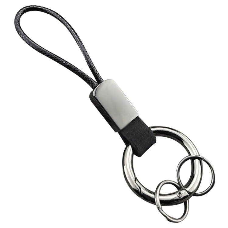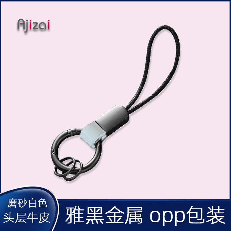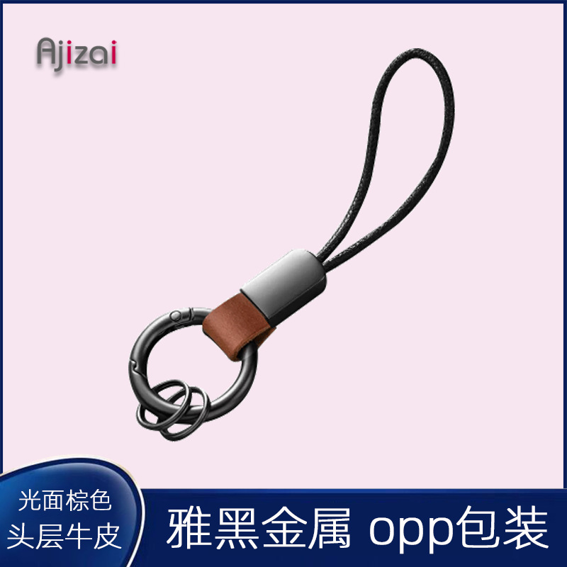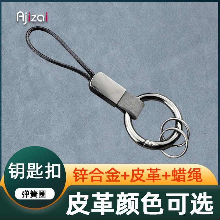 锌合金弹簧圈钥匙扣牛皮汽车用钥匙环链圈磨砂手机挂绳亚马逊外贸