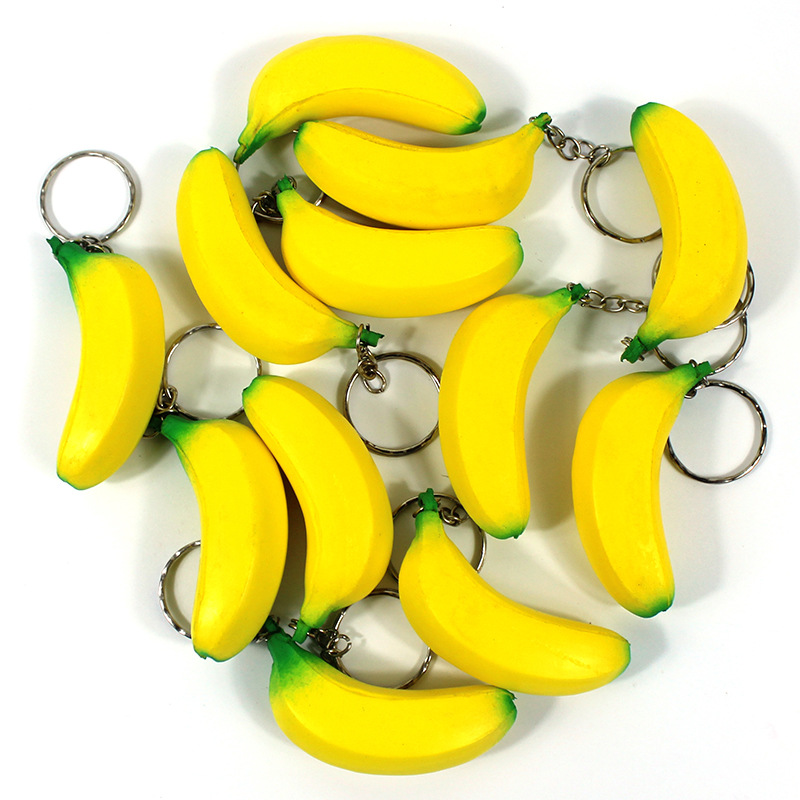 创意可爱迷你香蕉草莓仿真水果钥匙扣挂件PU发泡蔬菜带链厂家批发