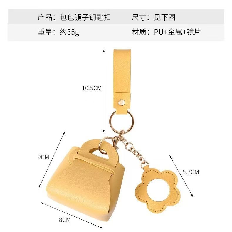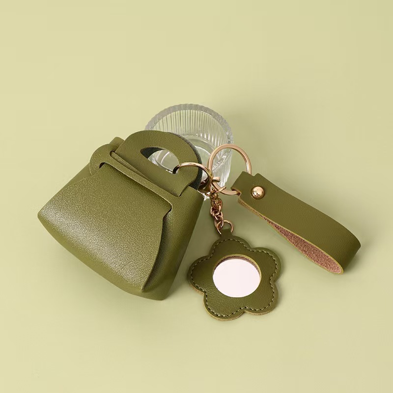 韩版PU皮质迷你包包钥匙扣 小包包收纳挂件带镜子纯色收纳小钱包