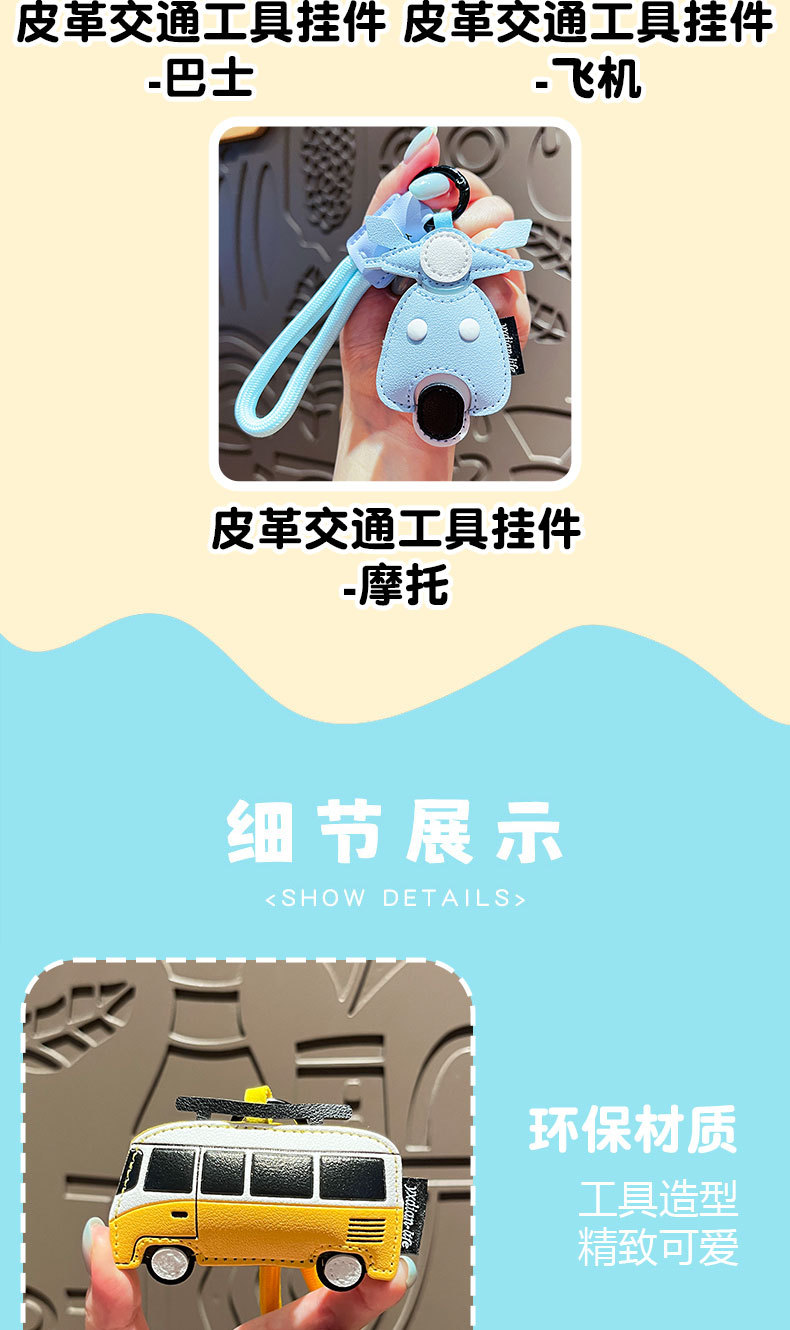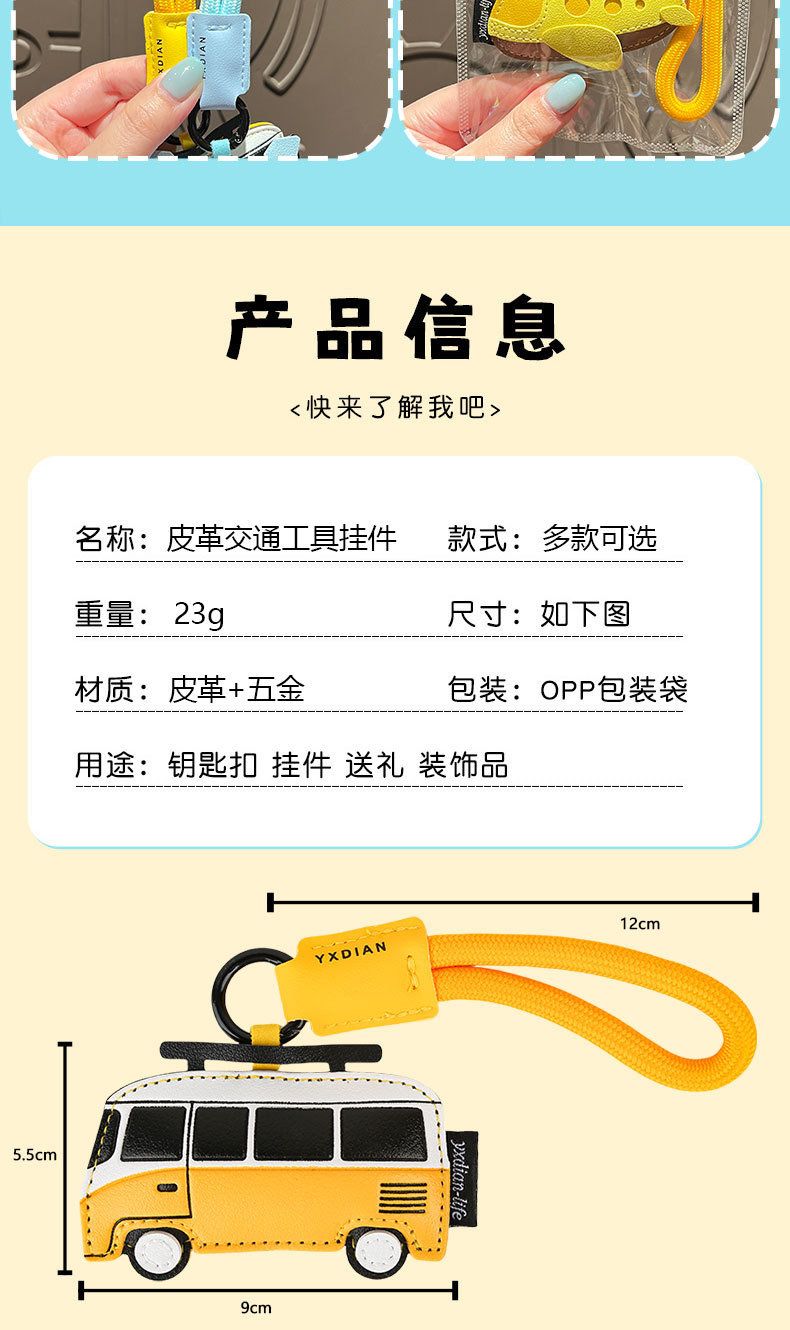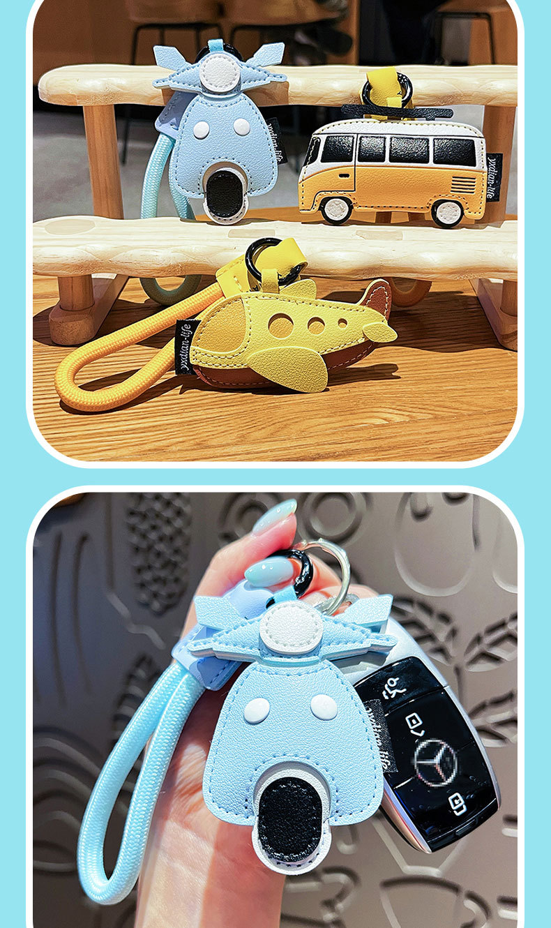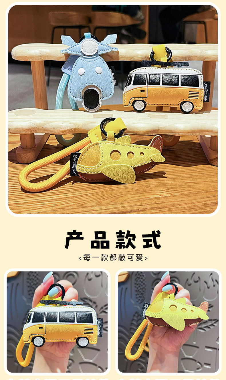 创意卡通皮革交通工具钥匙扣链可爱飞机巴士高级感包包挂件小礼品