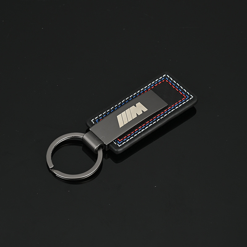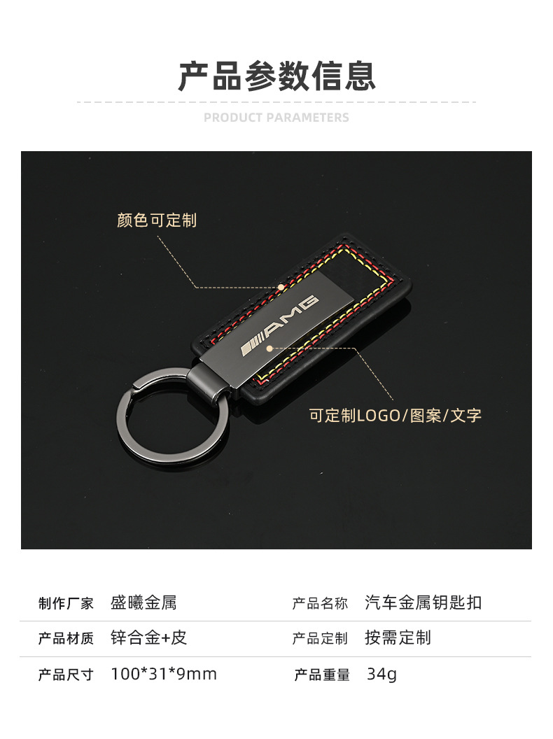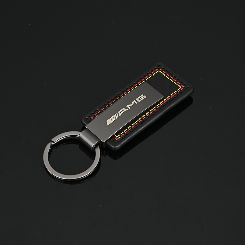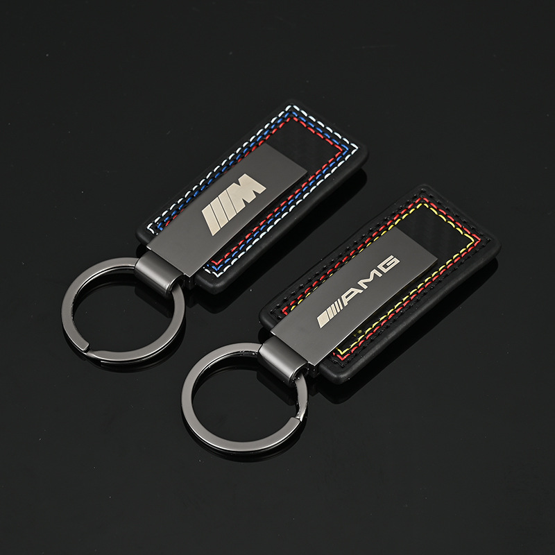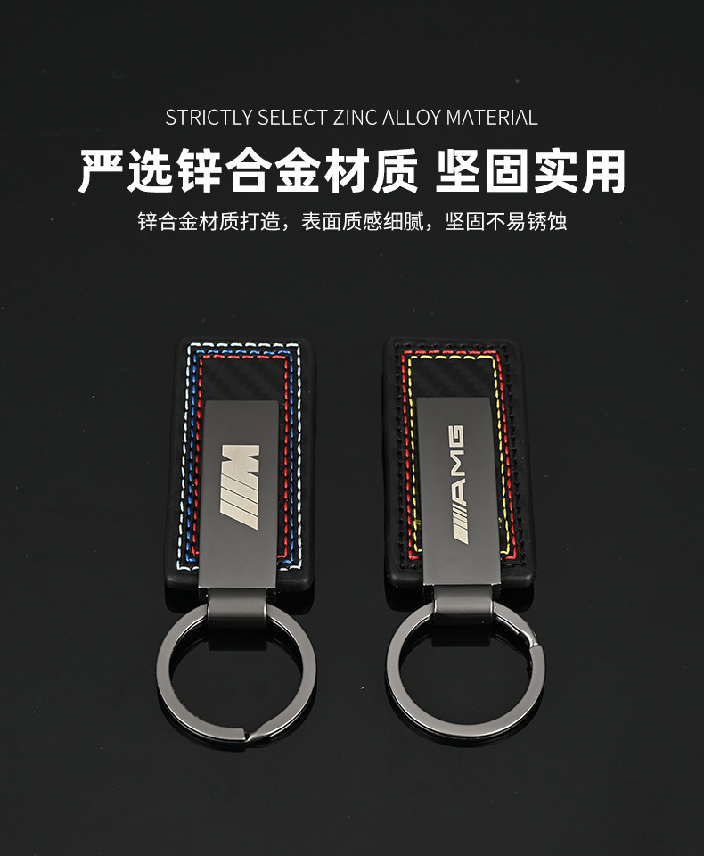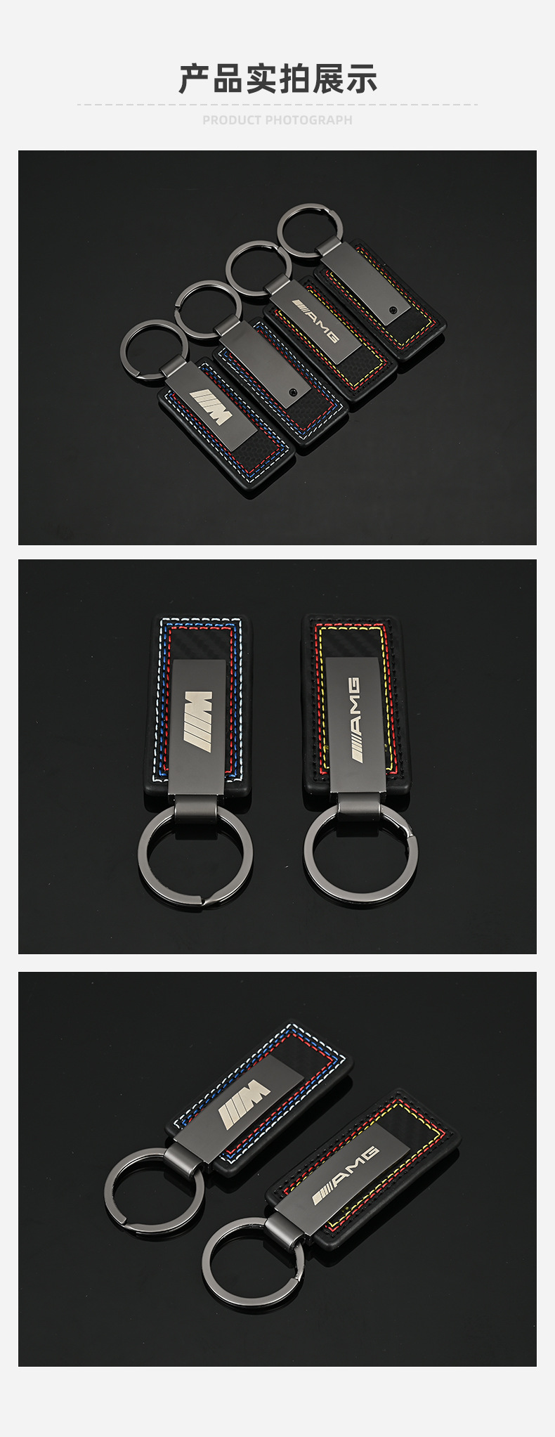 M三色运动标奥迪Sline大众R奔驰AMG真皮碳纤维汽车车标钥匙扣挂件