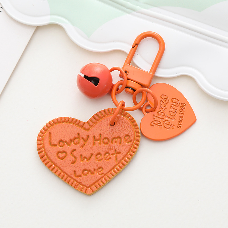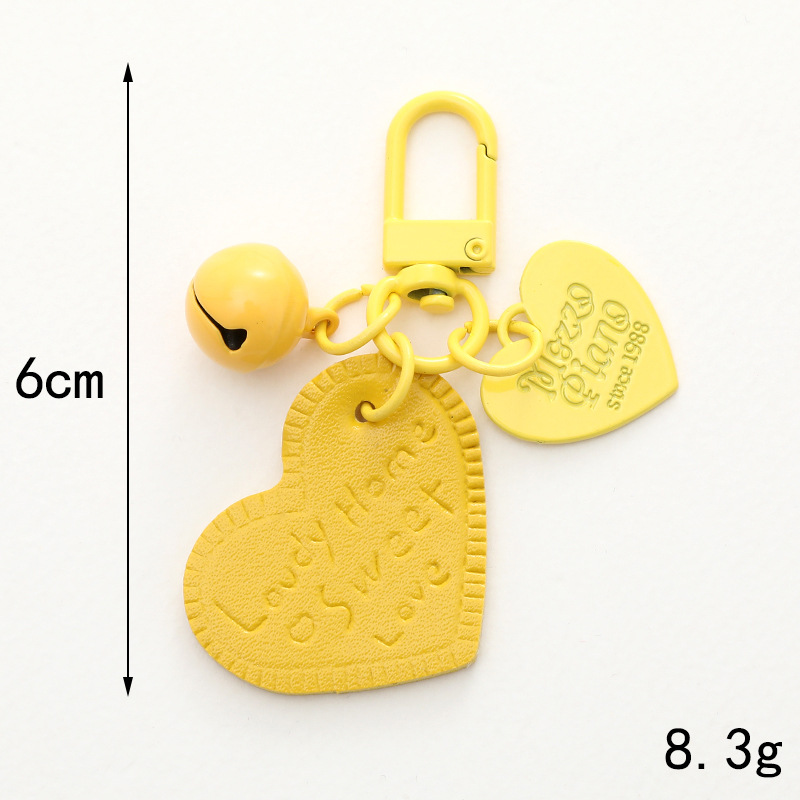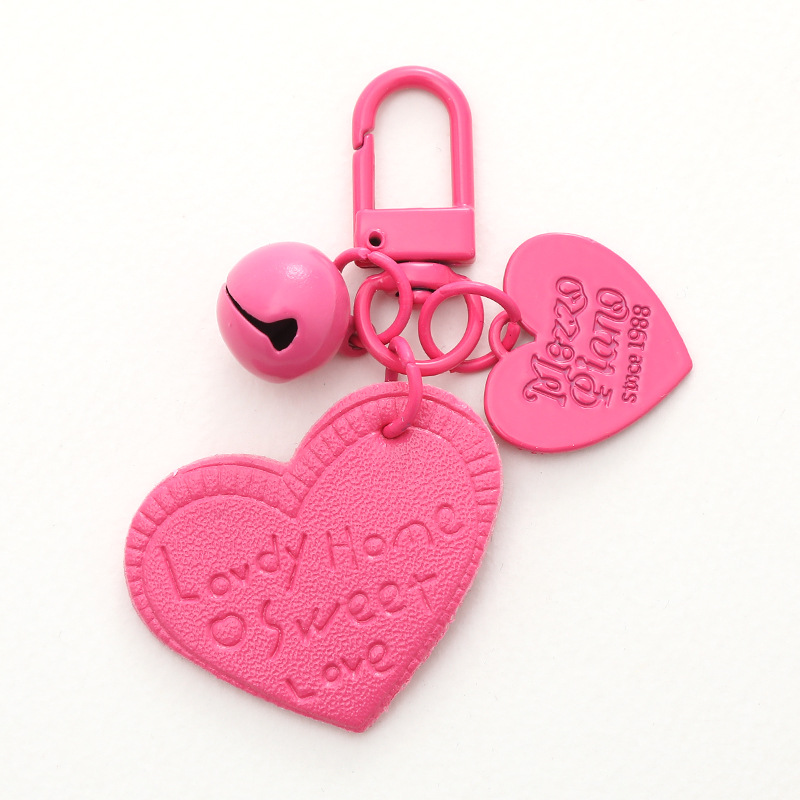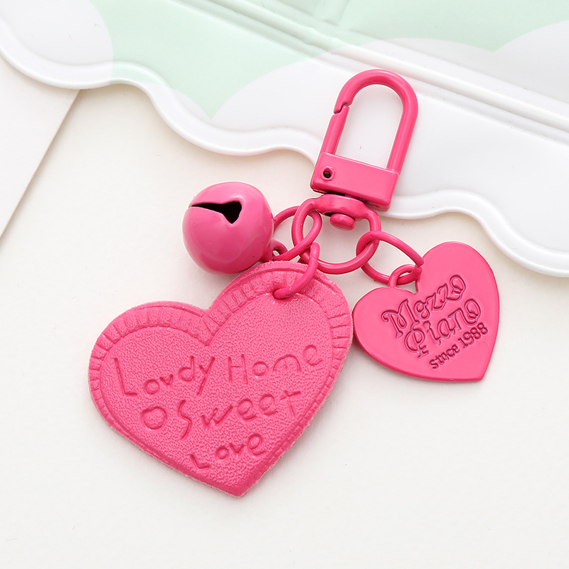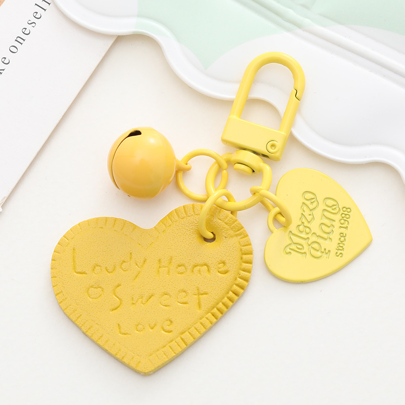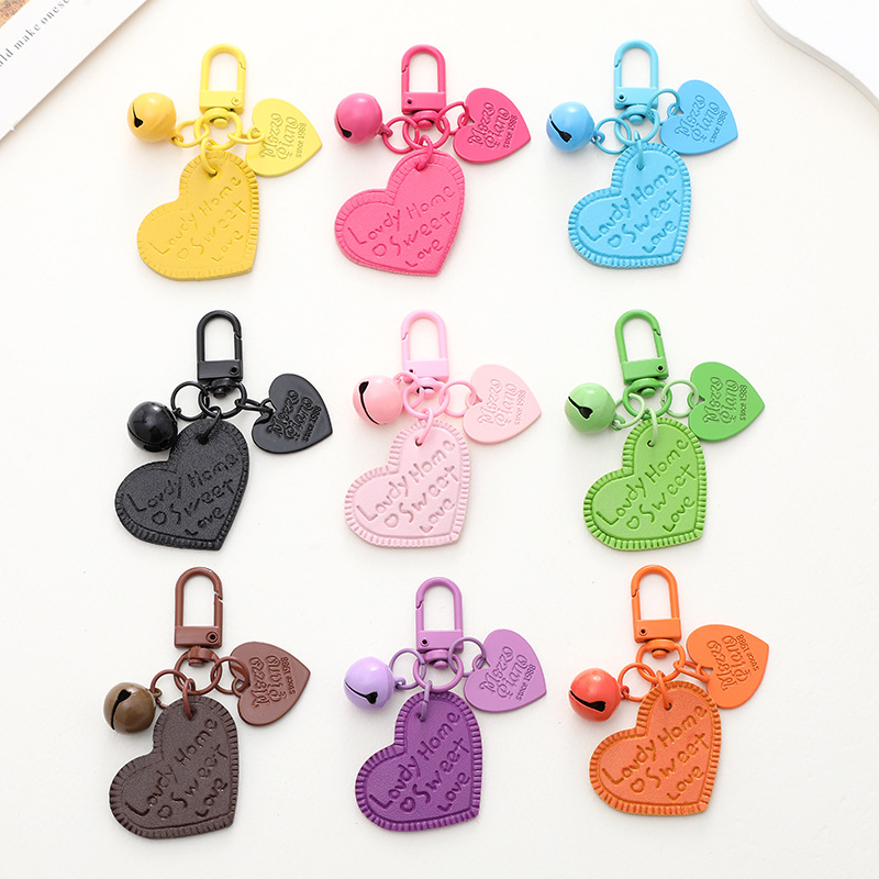 新款时尚爱心皮革钥匙扣铃铛挂件耳机包包挂饰女生小礼品批发