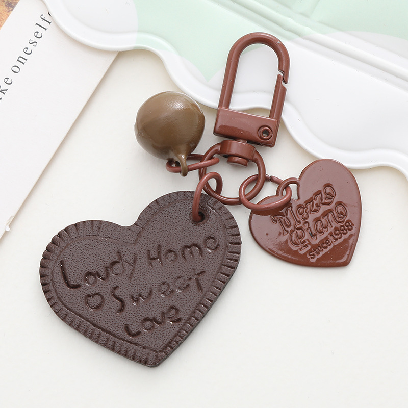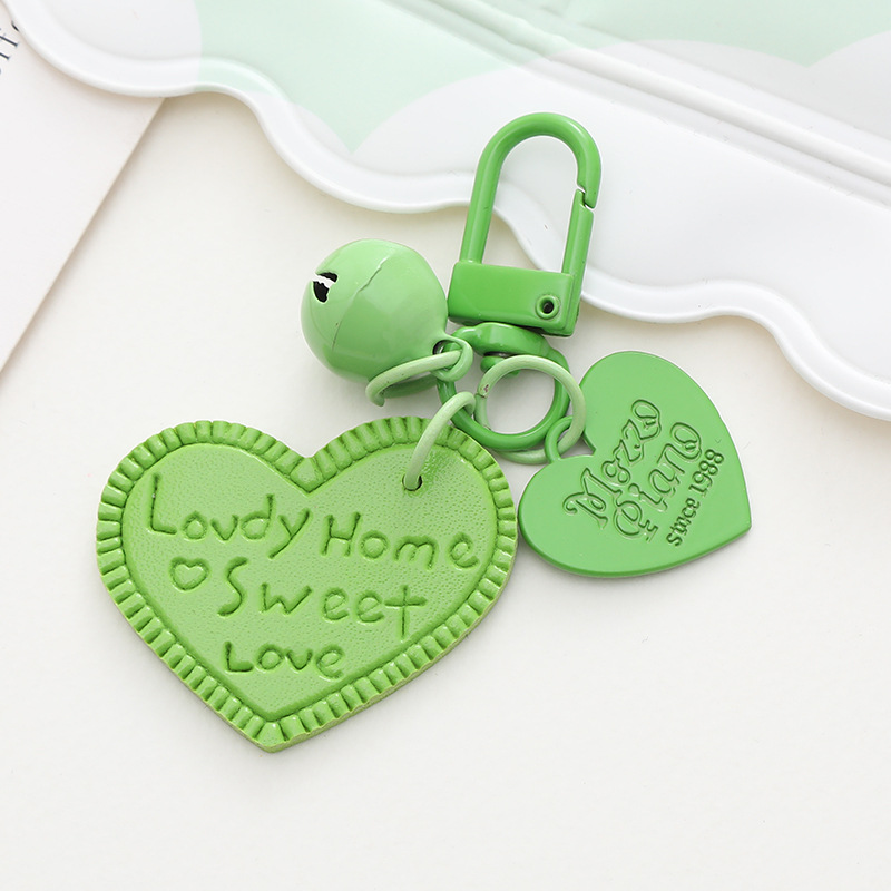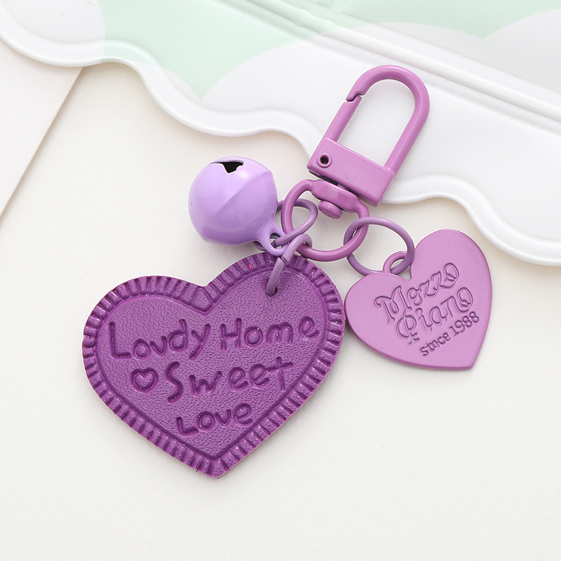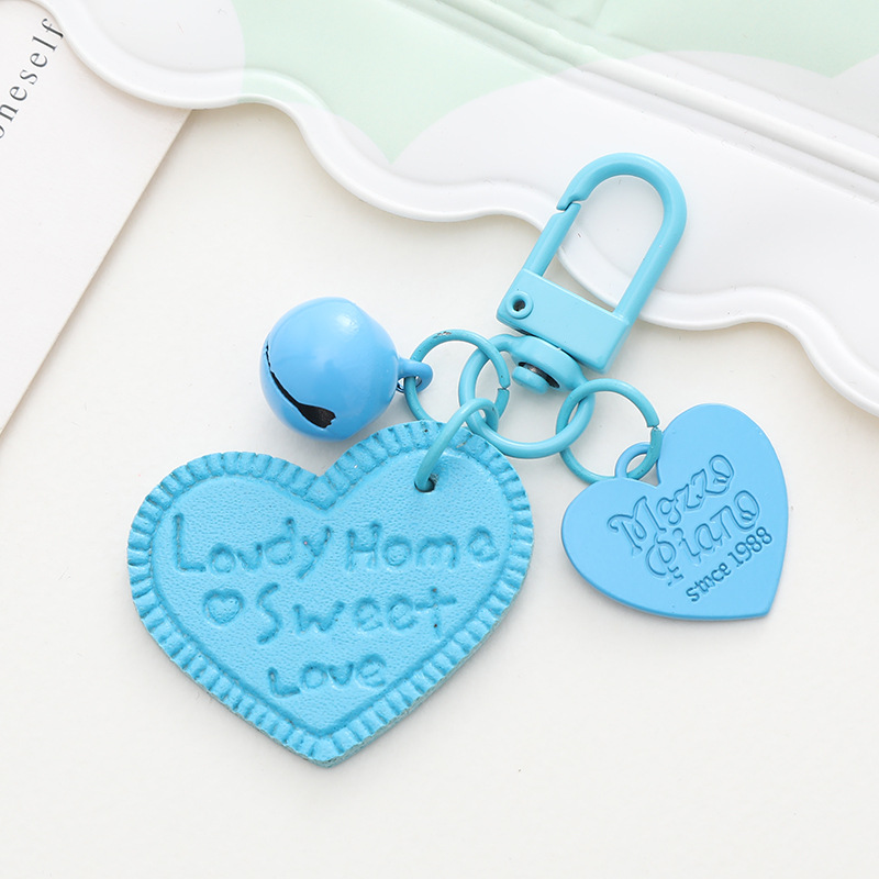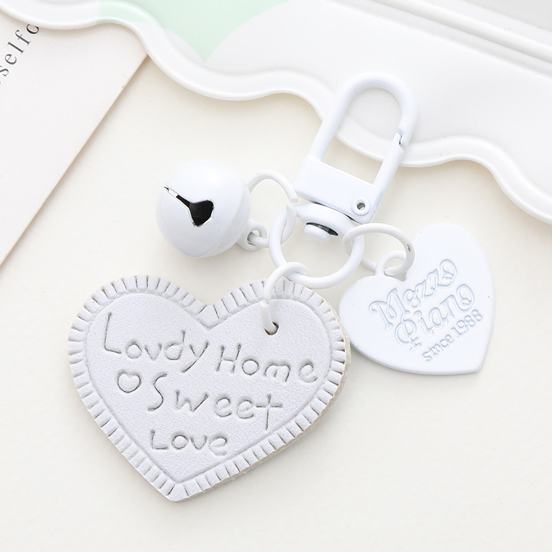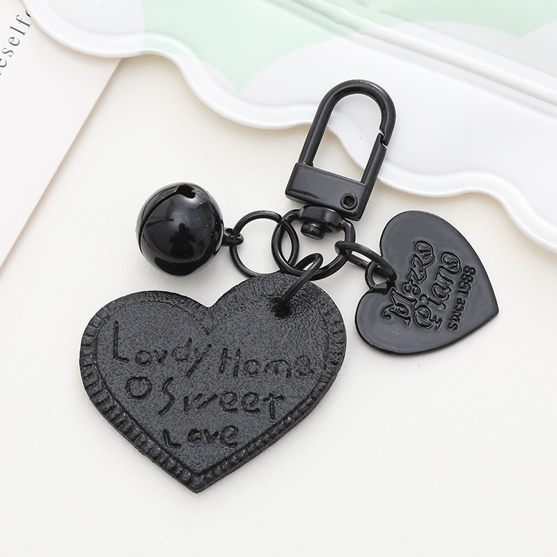 新款时尚爱心皮革钥匙扣铃铛挂件耳机包包挂饰女生小礼品批发