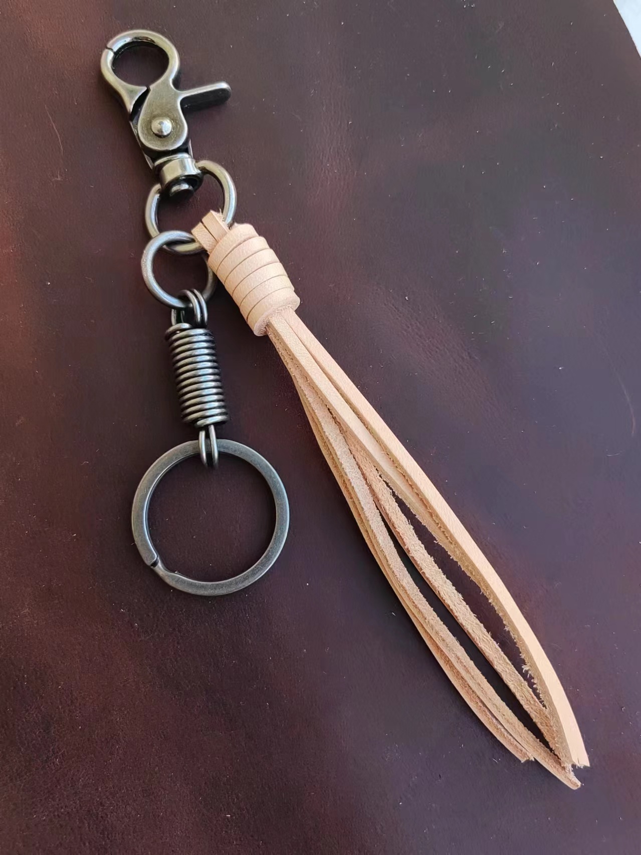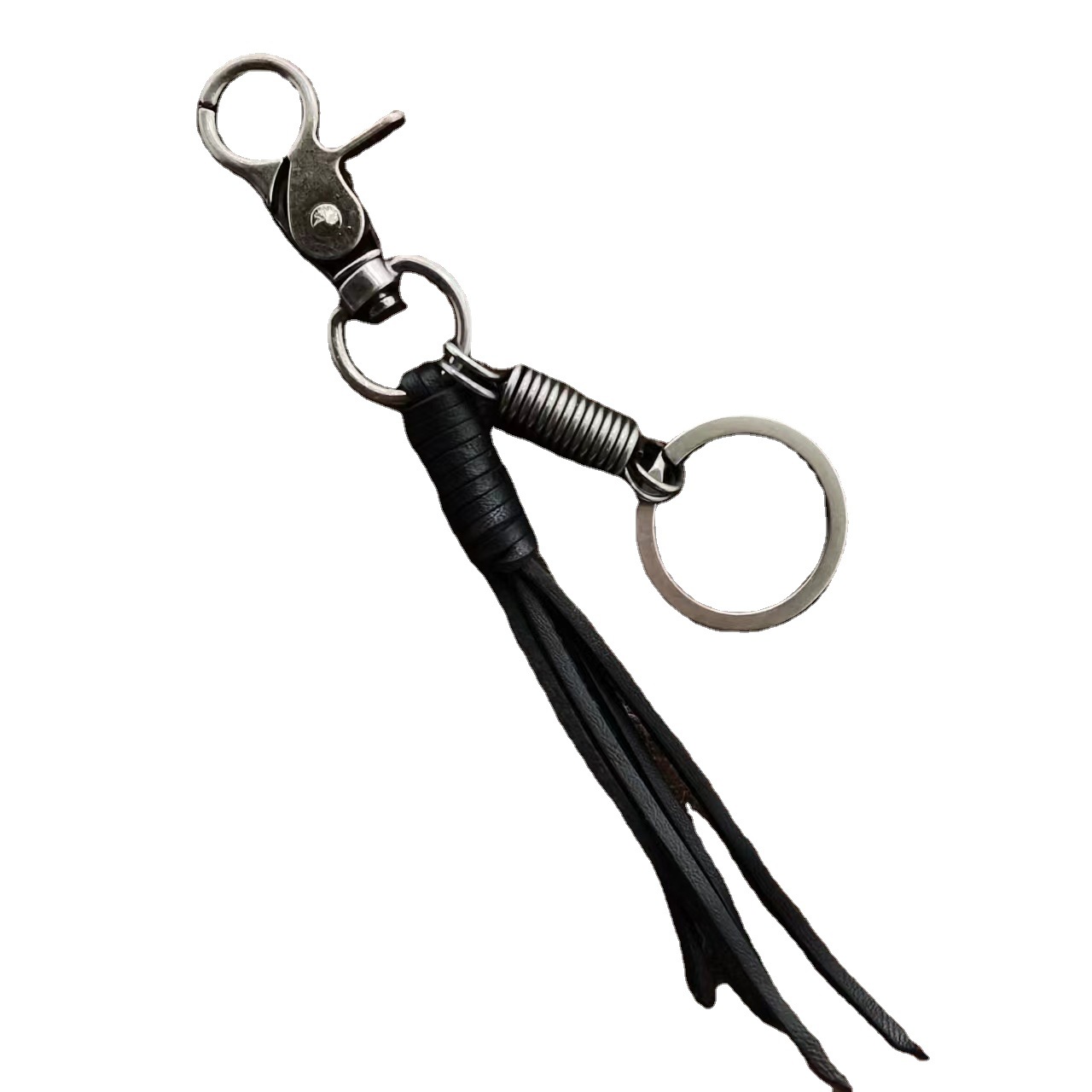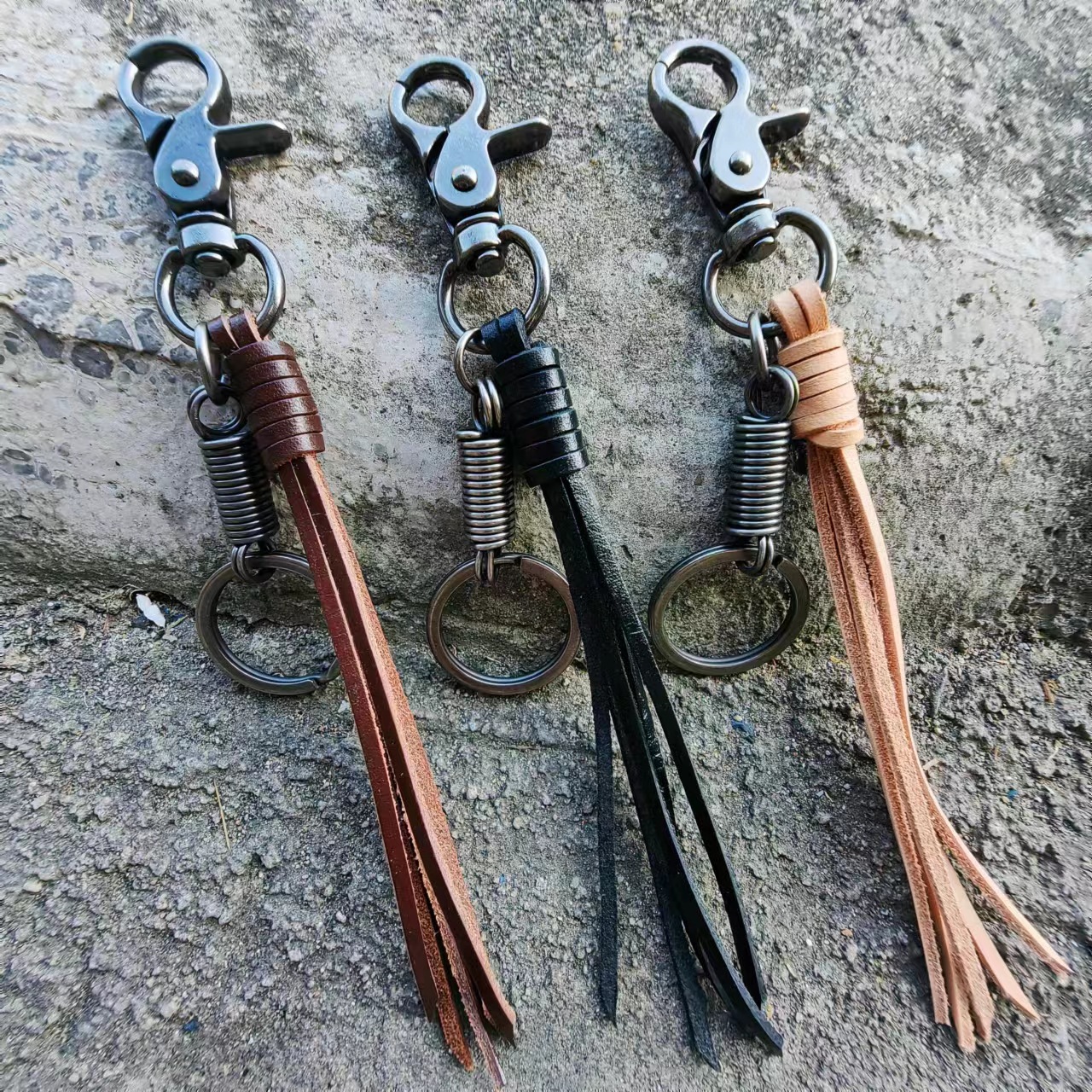 手工汽车钥匙扣四股编织创意牛皮流苏简约腰挂合金狗扣钥匙圈挂件
