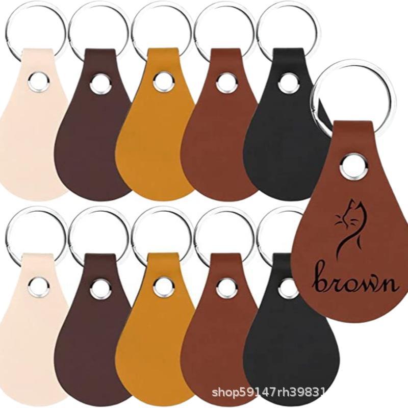 跨境热销汽车钥匙扣pu皮革多色可选logo压印热压真皮皮革料钥匙扣