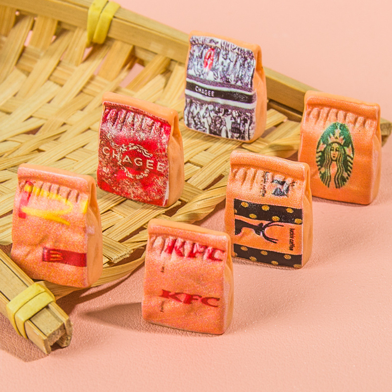 diy配件批发 手机挂件钥匙扣发夹吊坠 立体麦当劳星巴克牛皮纸袋