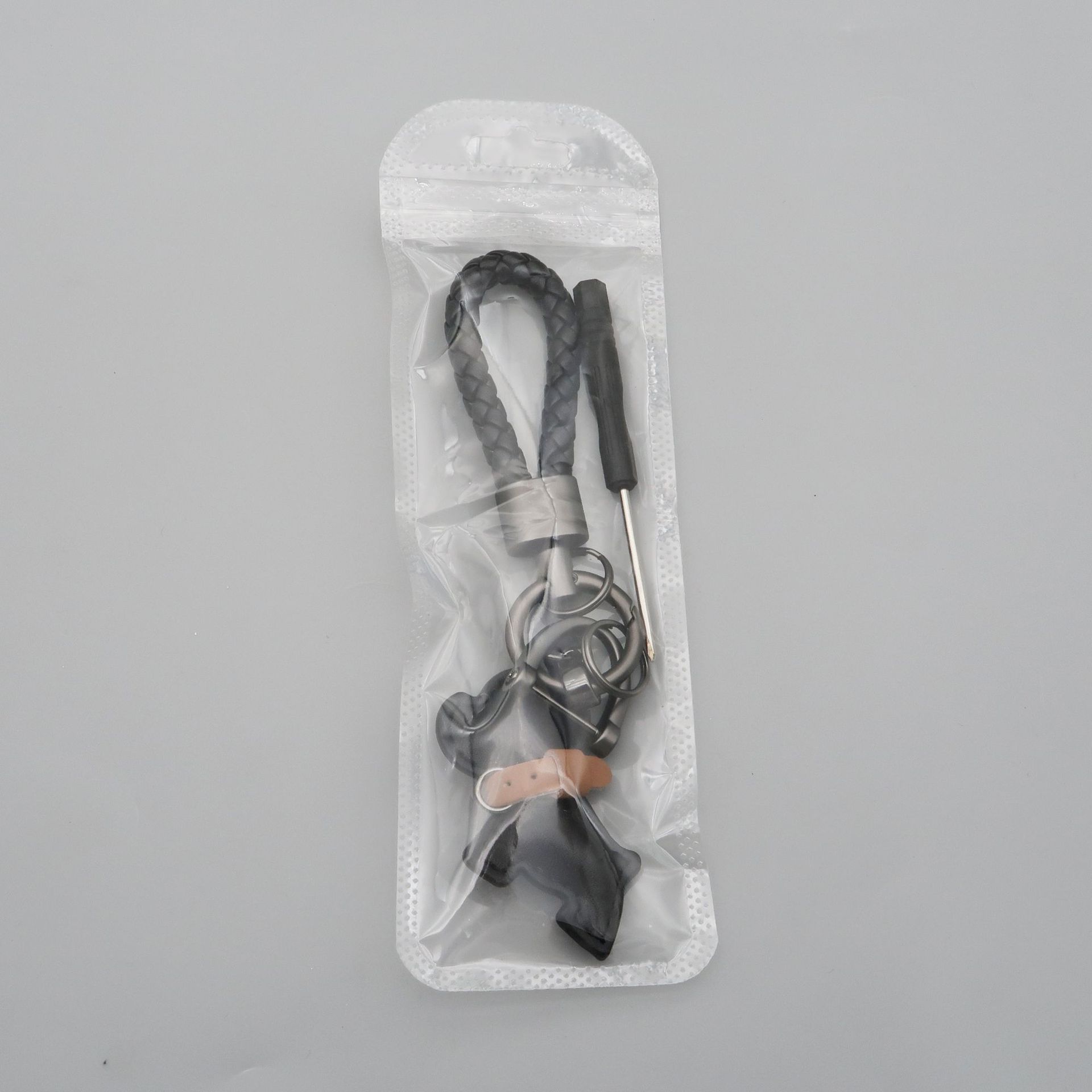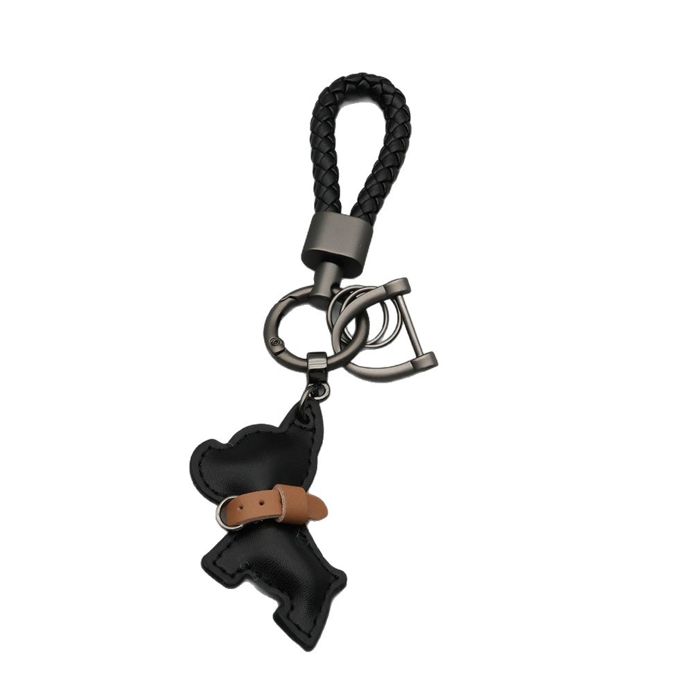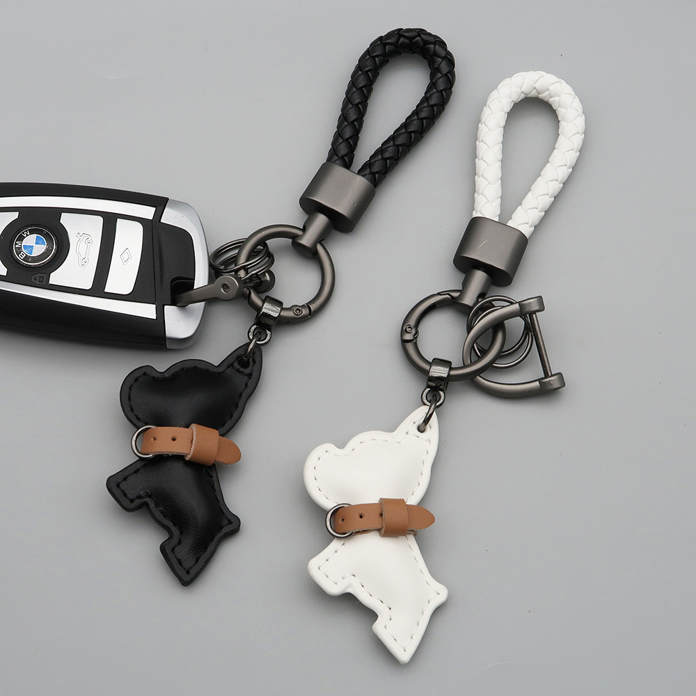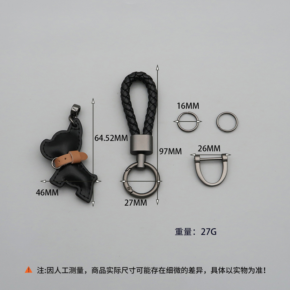 跨境现货可爱迷你法斗狗汽车钥匙扣皮革小狗挂件编织绳防丢钥匙链
