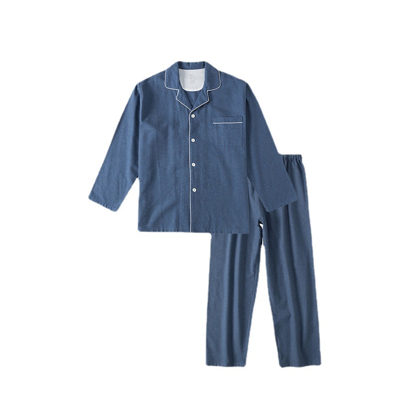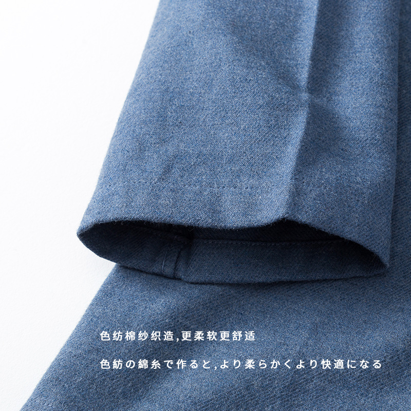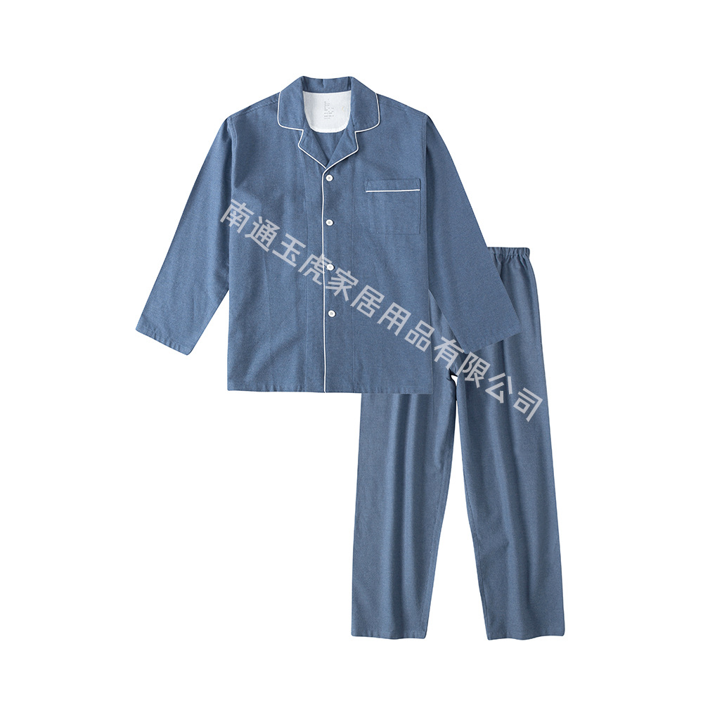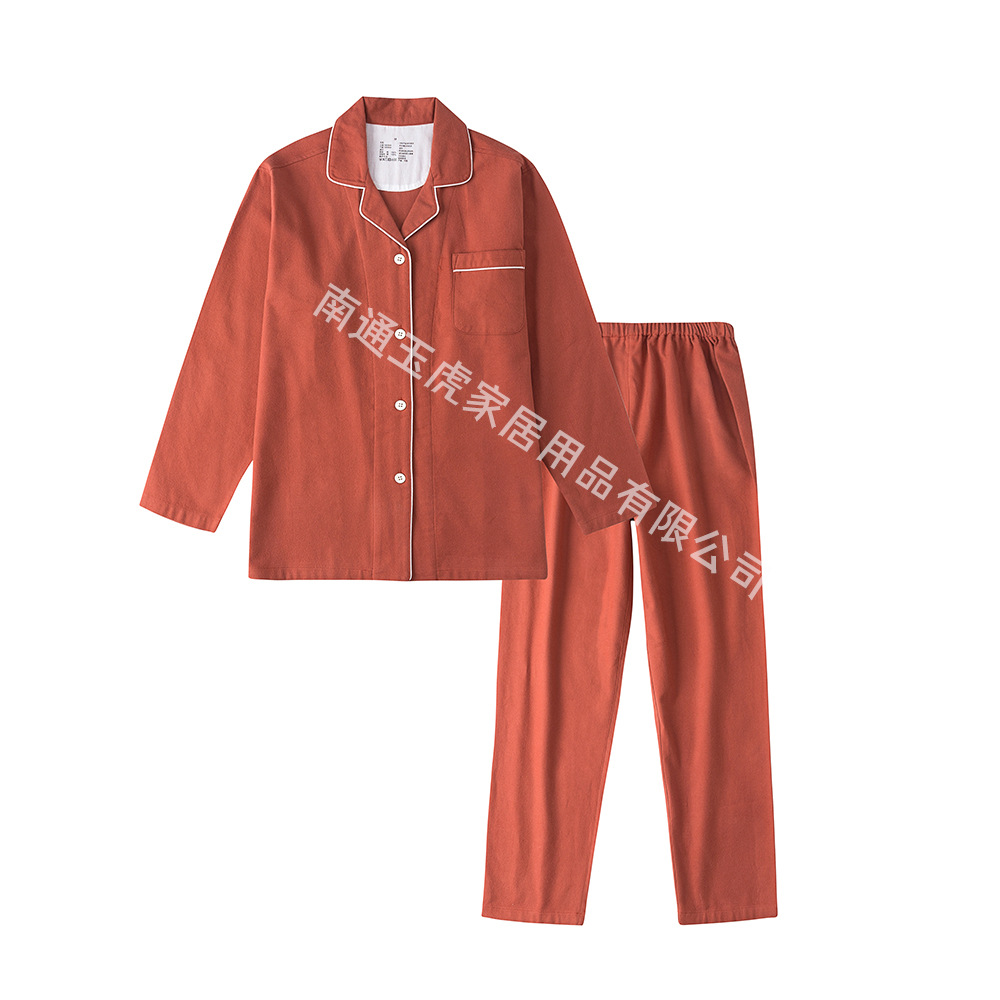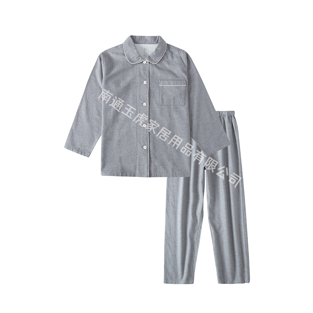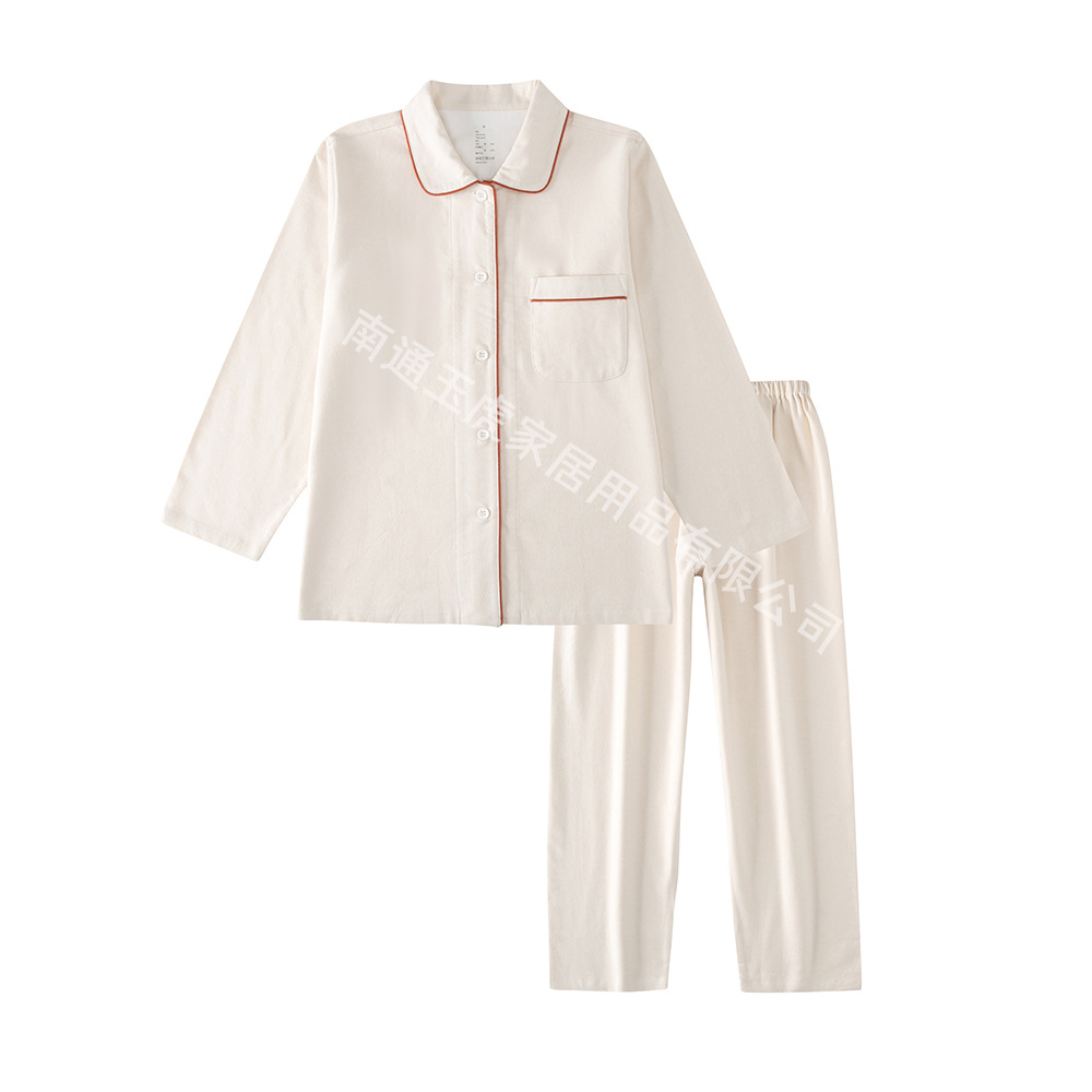 无印日式全棉磨毛长裤无侧缝睡衣加厚保暖长袖套装纯色情侣家居服