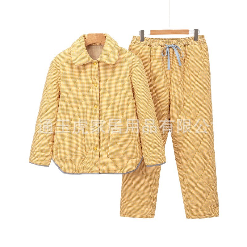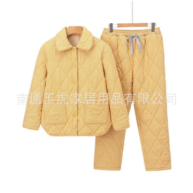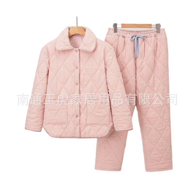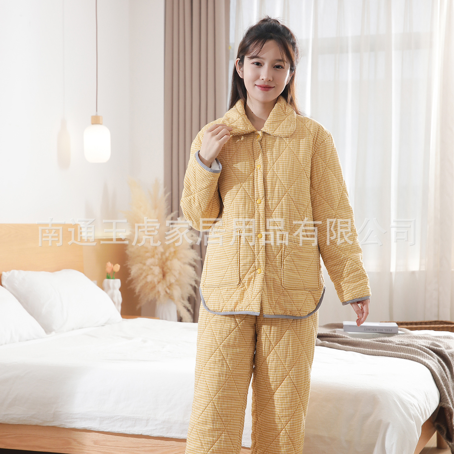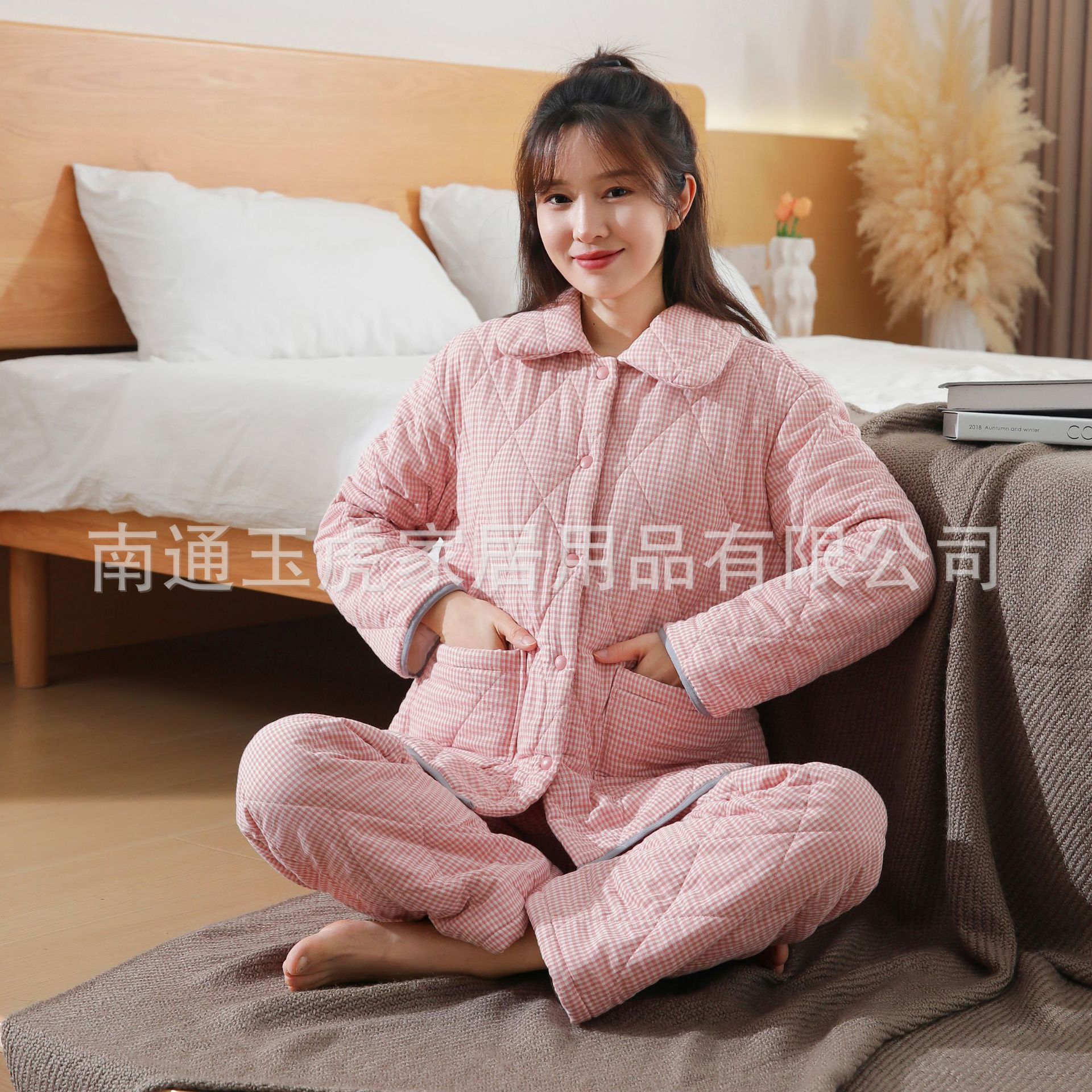 棉花妈妈睡衣冬季纯棉三层加厚夹棉保暖超厚女保暖家居服