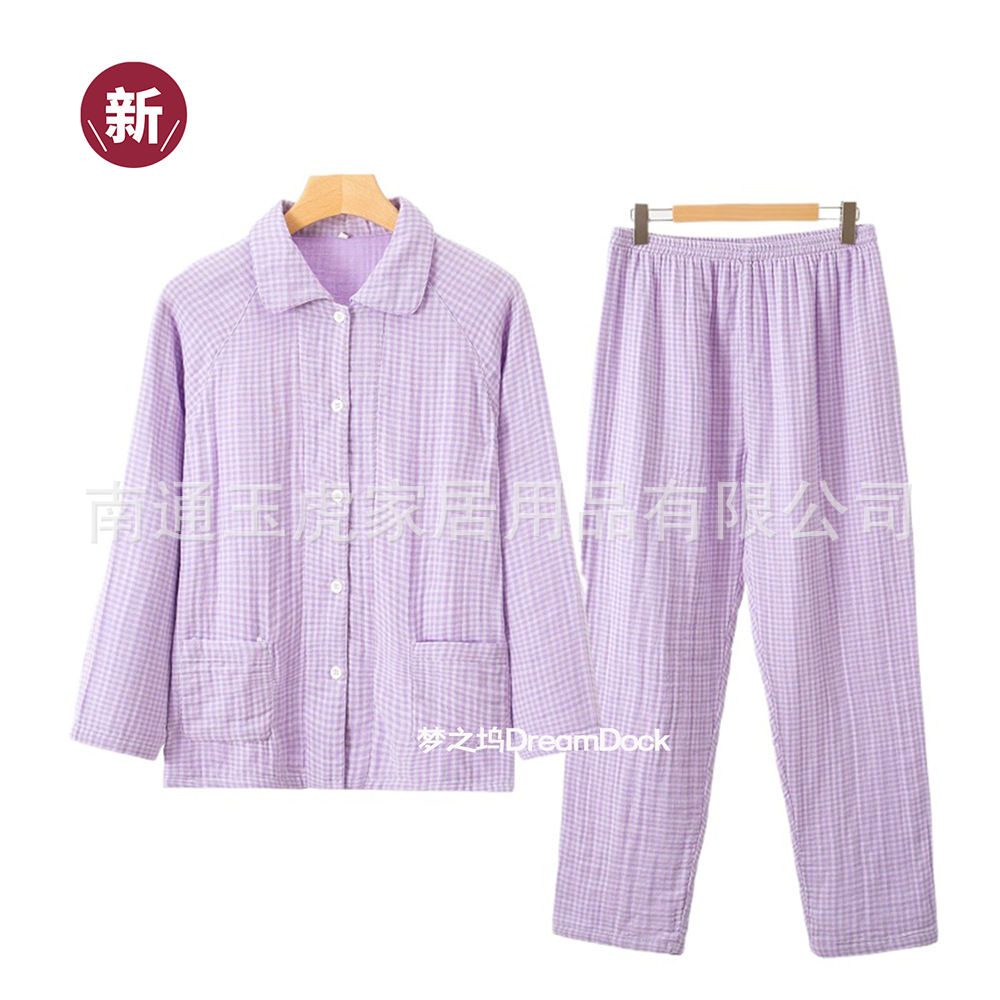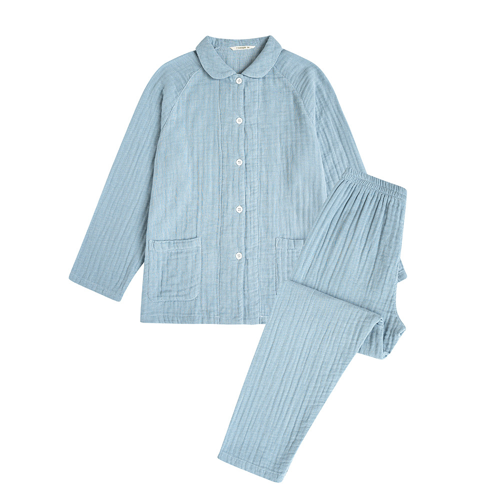 四层纱纯棉长款家居服纱布长袖全棉舒适长裤睡衣春秋季套装日系风