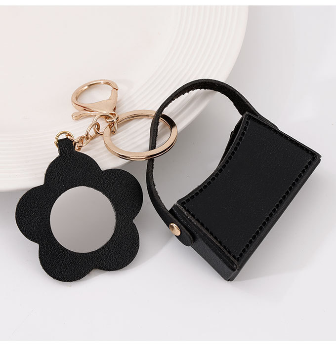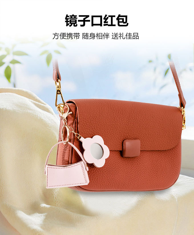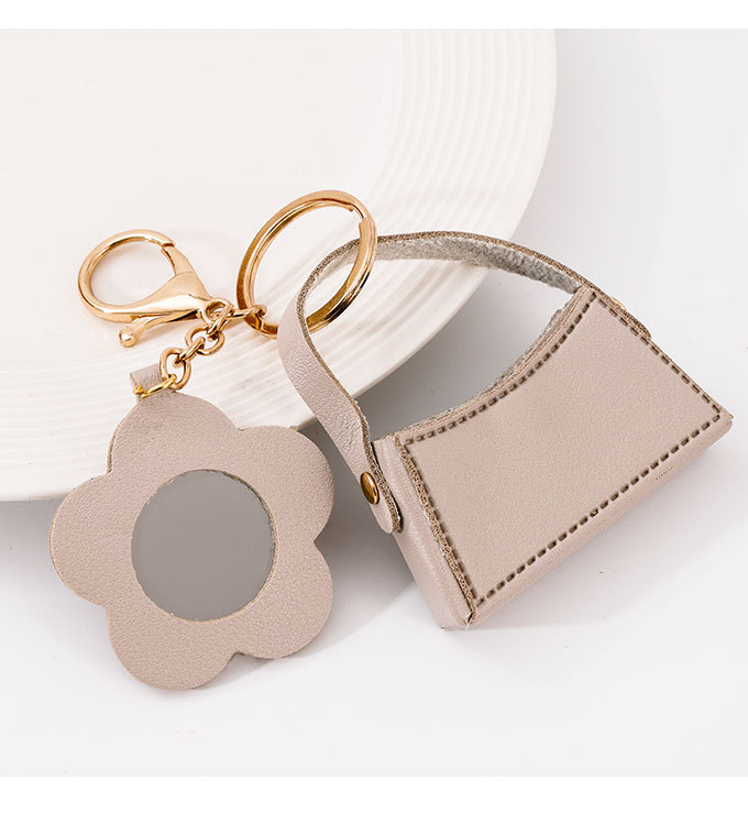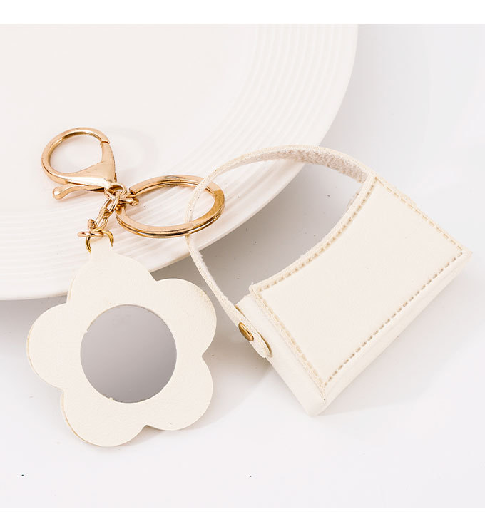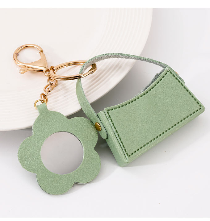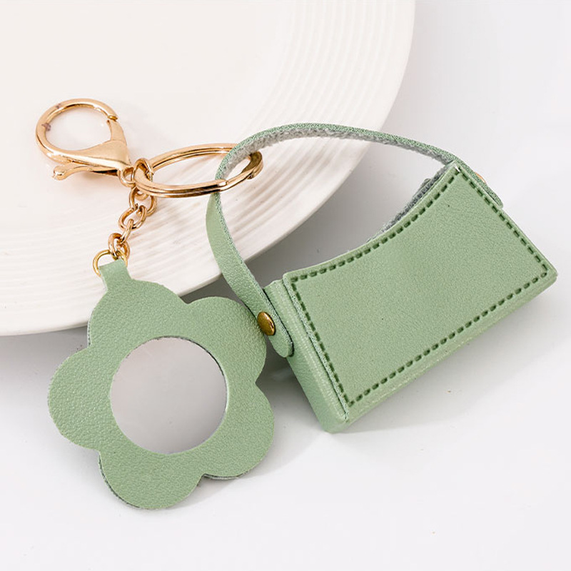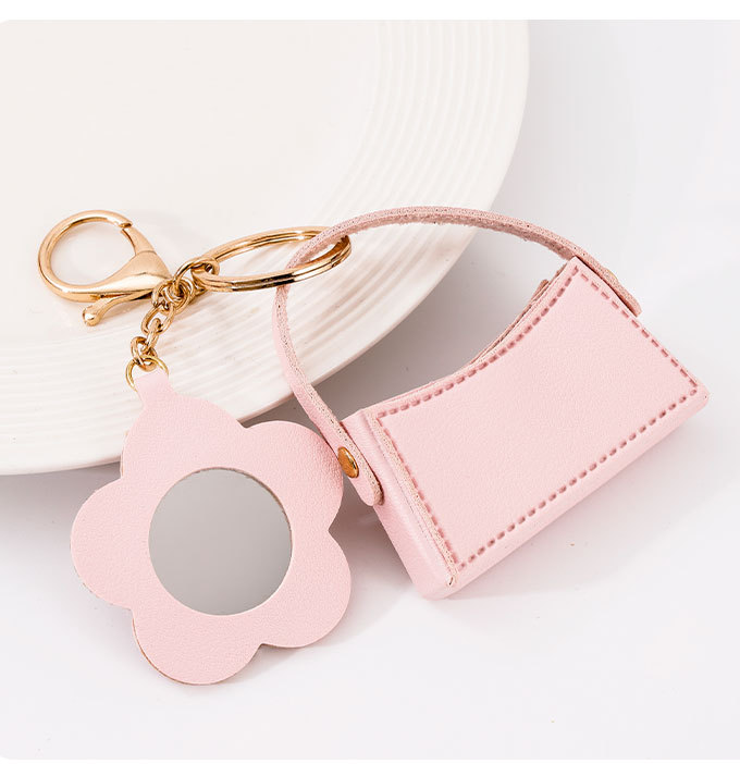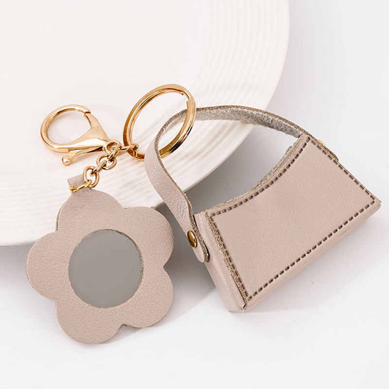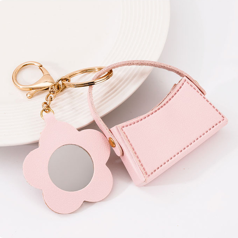 厂家直销便携花朵小镜子小弯包钥匙扣彩色皮革创意礼品挂件钥匙链