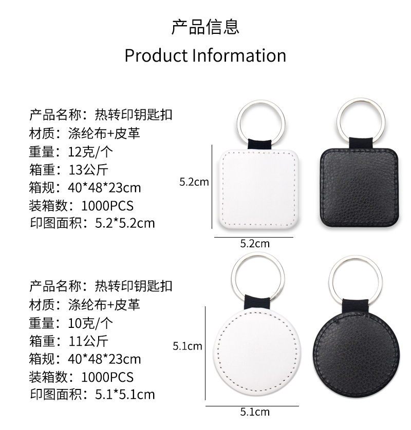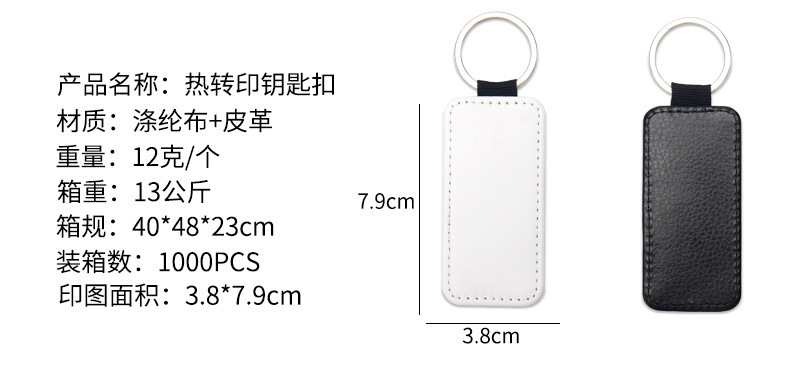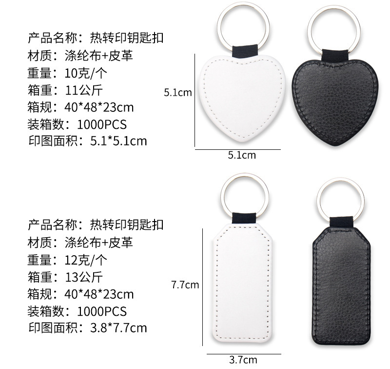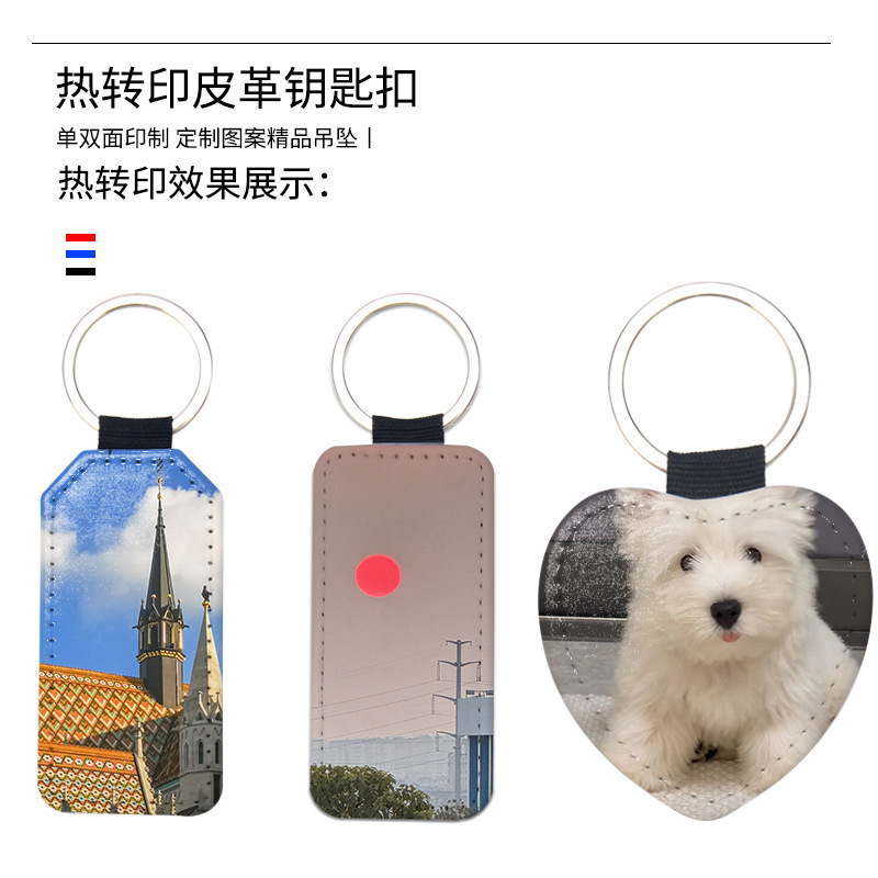 工厂直销热转印钥匙扣热升华空白色皮革挂件DIY彩色图像印制LOGO