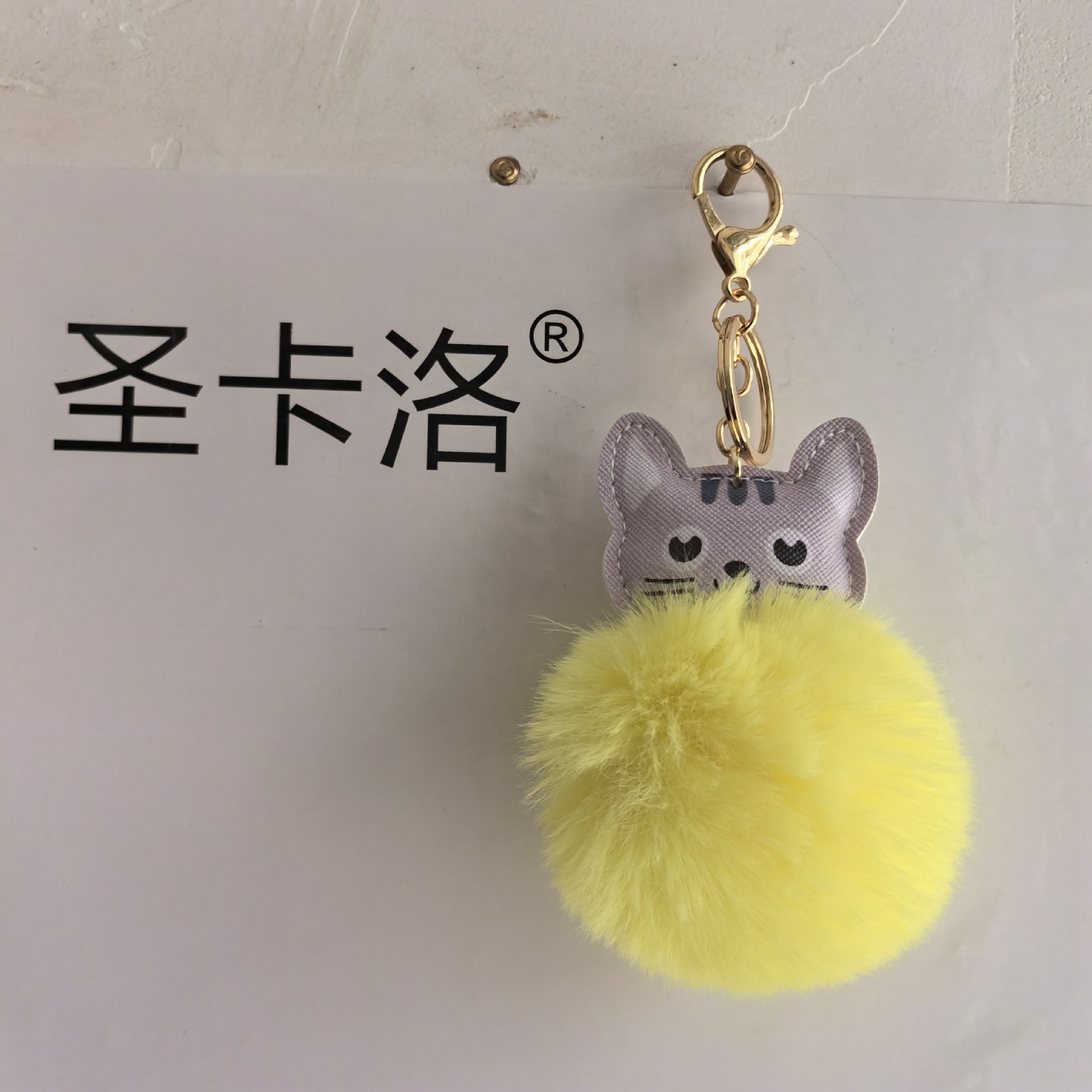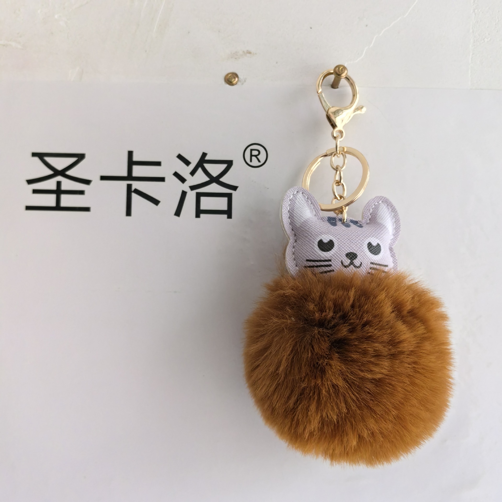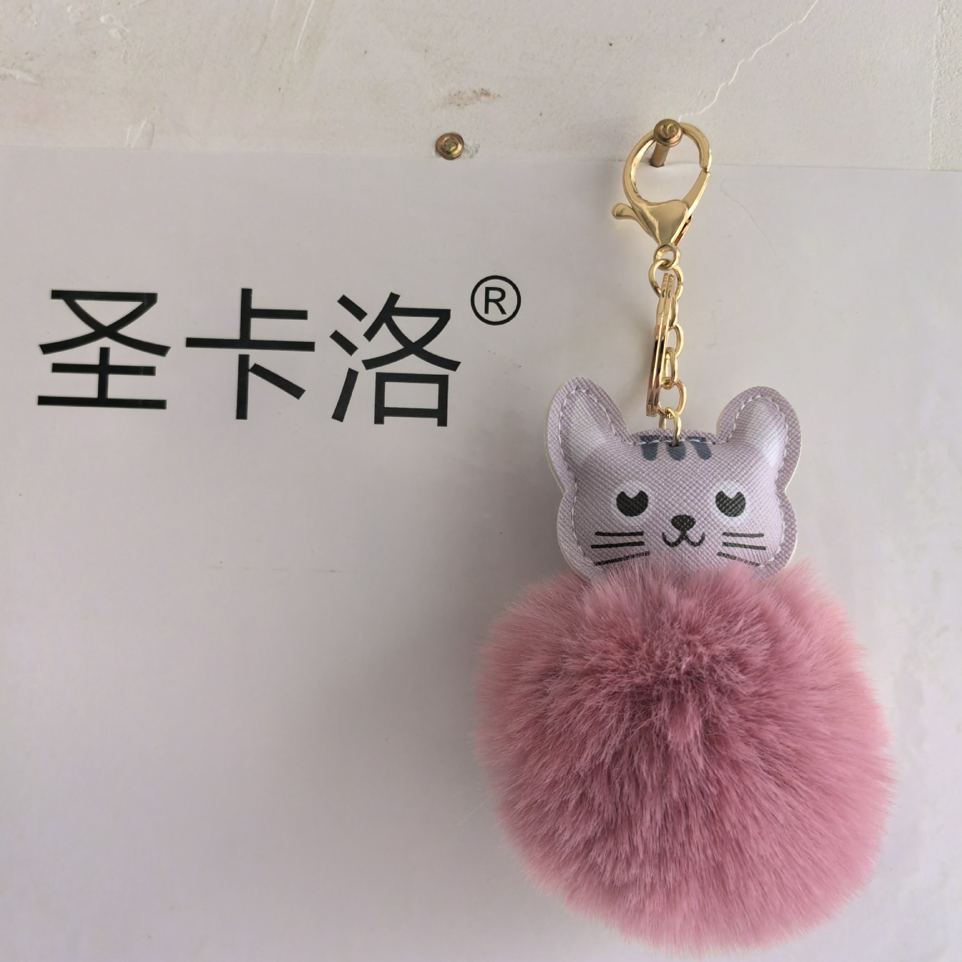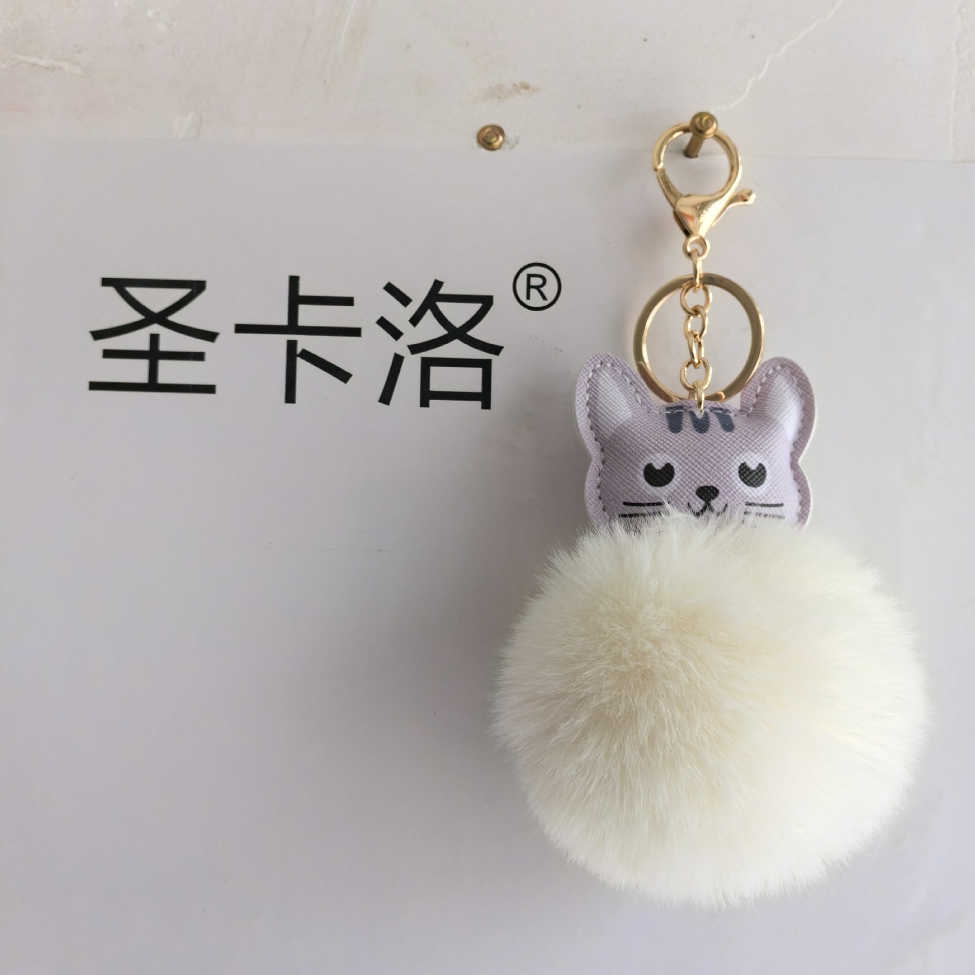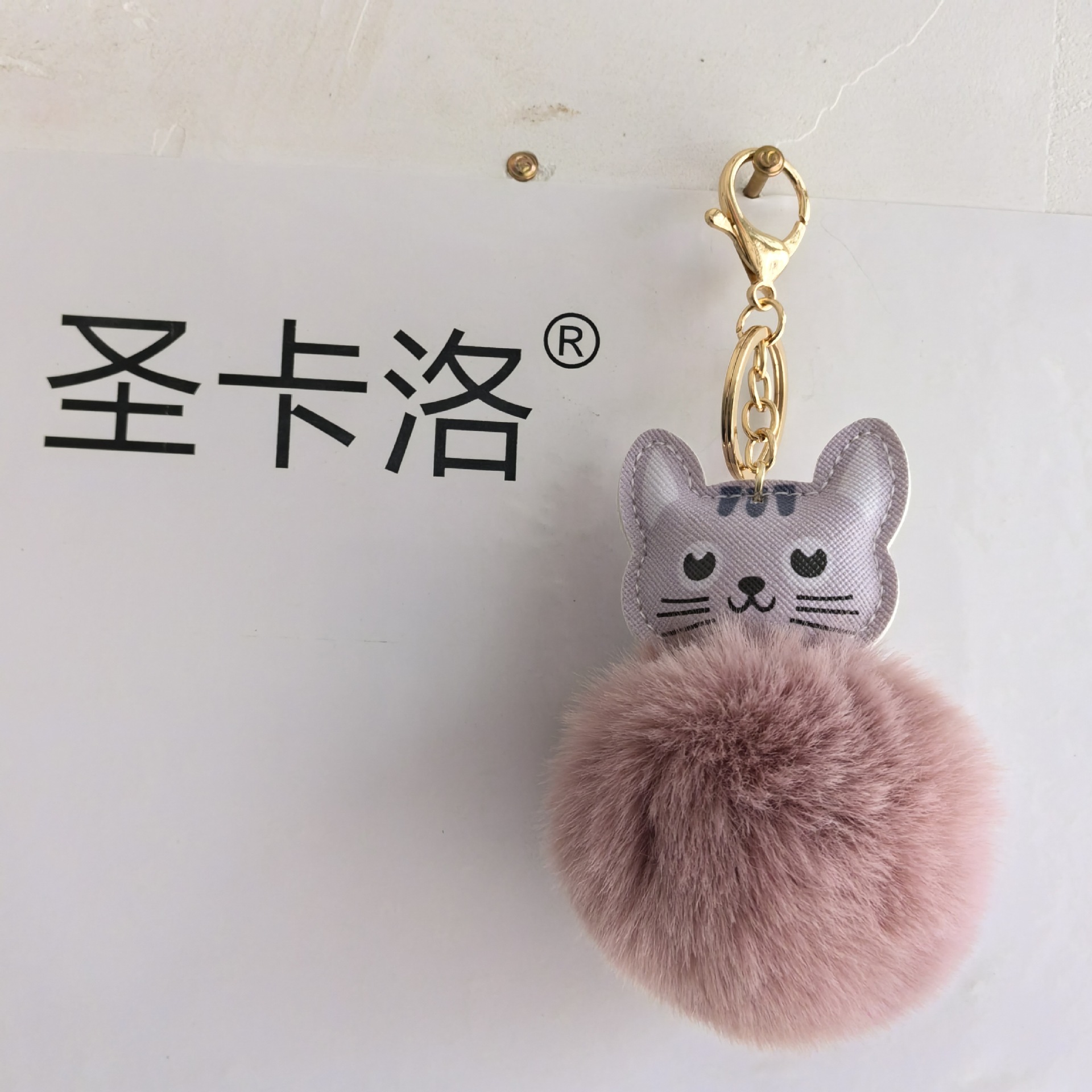 可爱猫咪毛球钥匙扣pu小猫毛绒抓娃娃机獭兔毛球挂件汽车挂饰