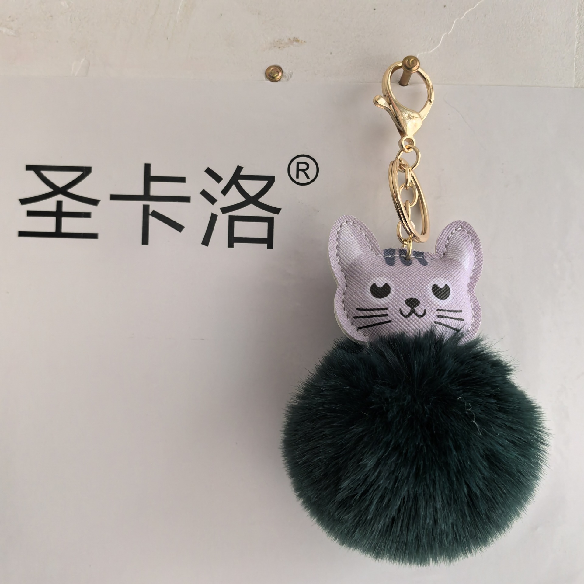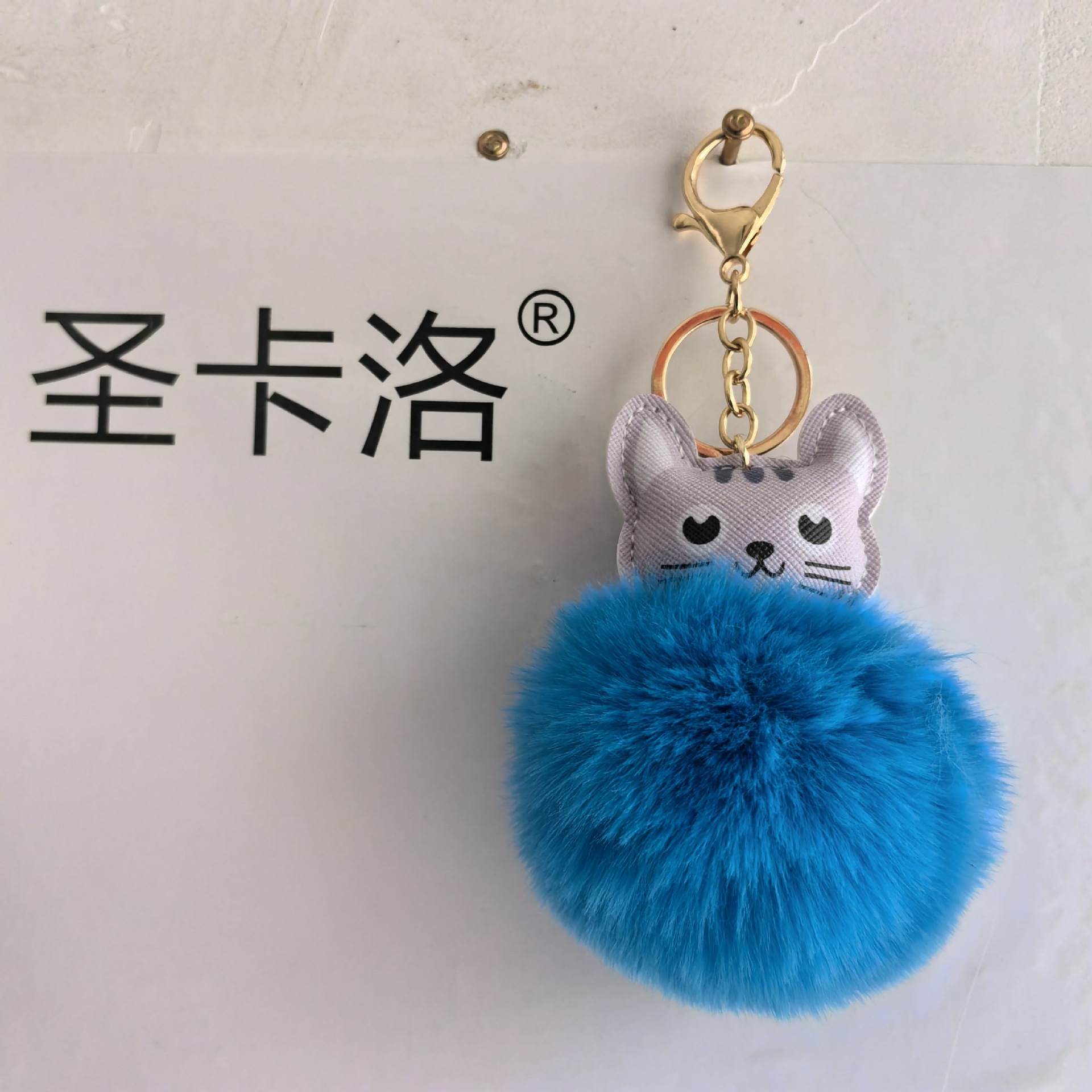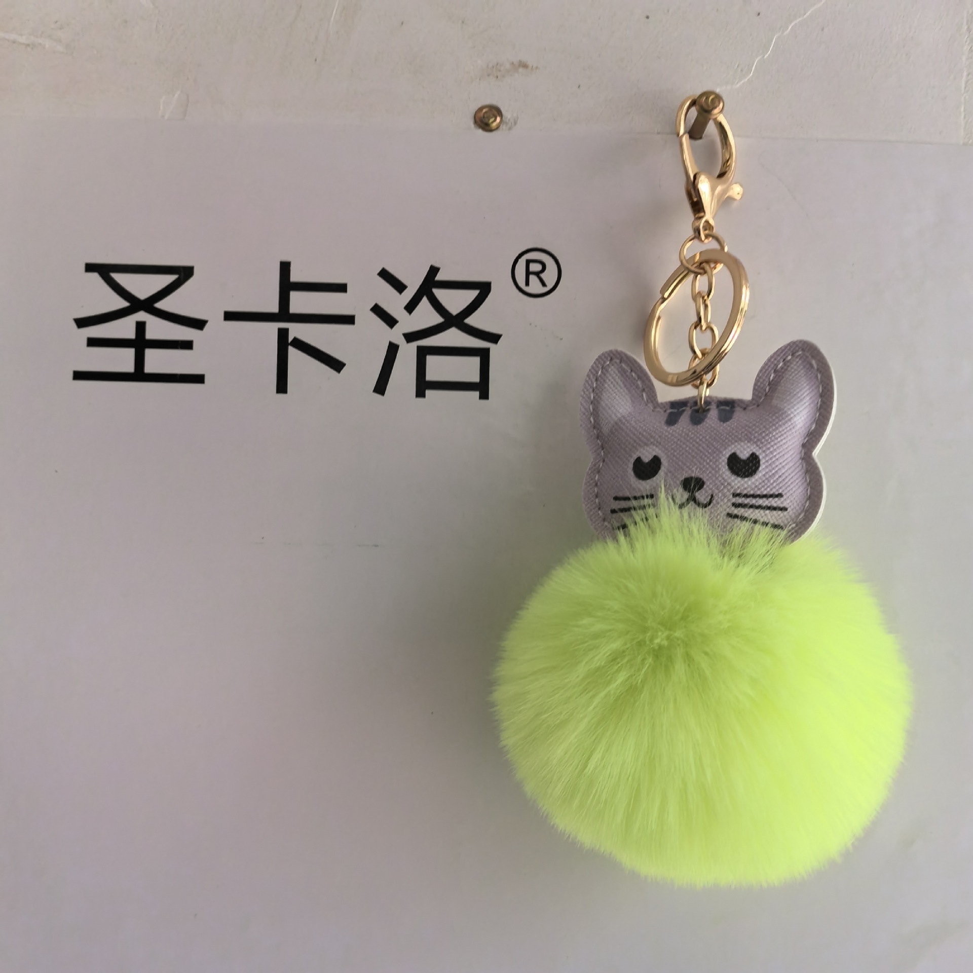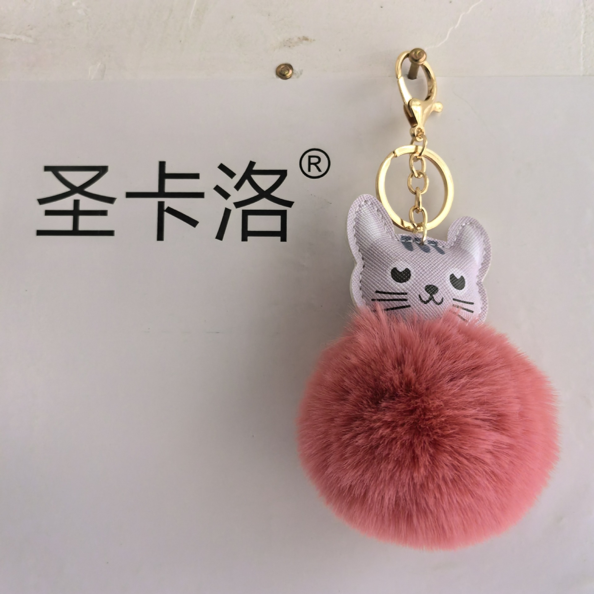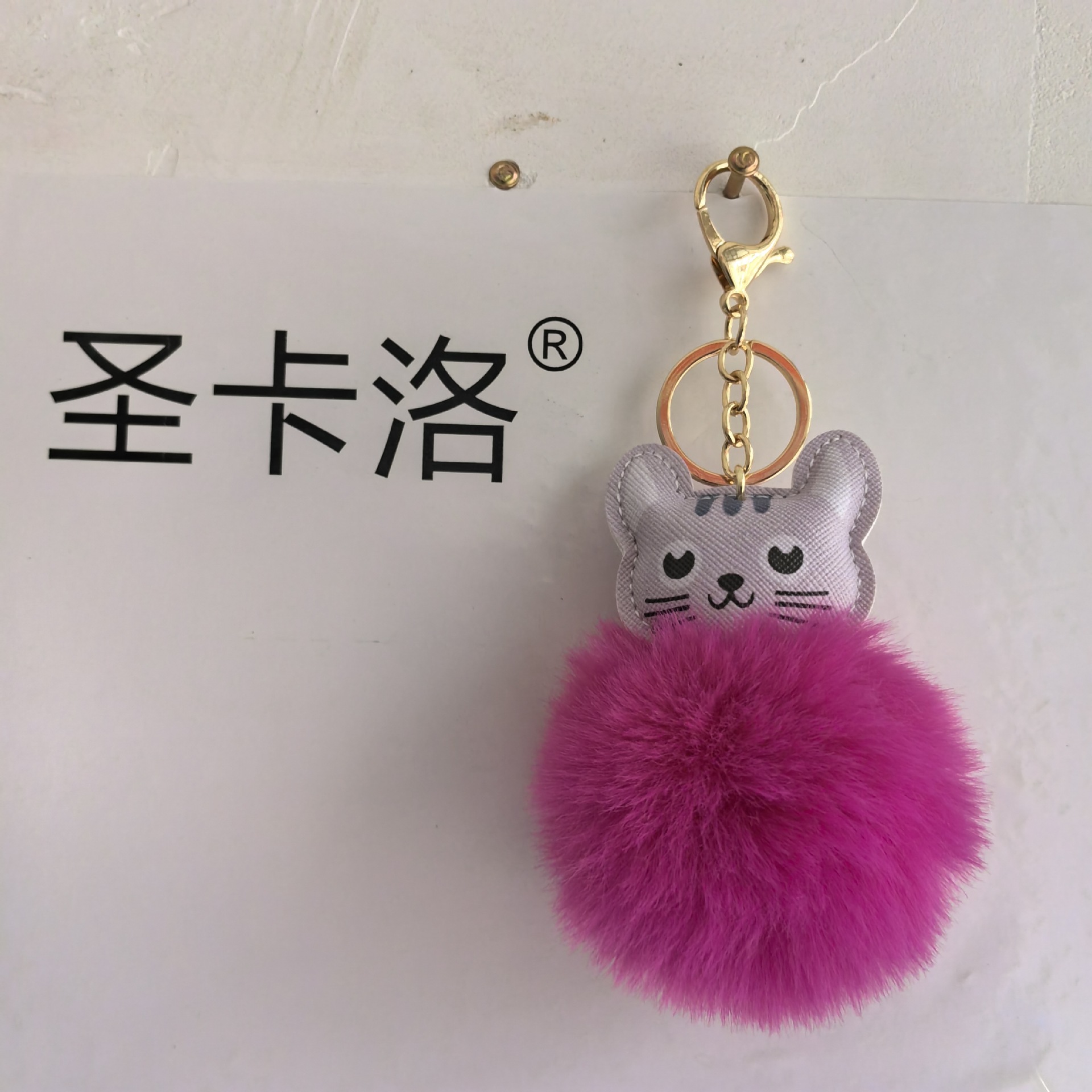 可爱猫咪毛球钥匙扣pu小猫毛绒抓娃娃机獭兔毛球挂件汽车挂饰