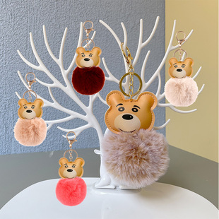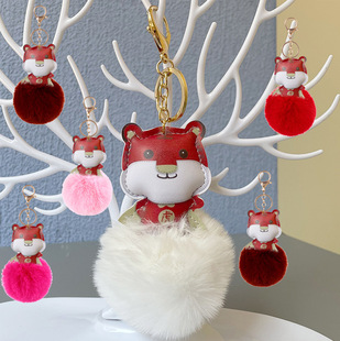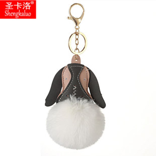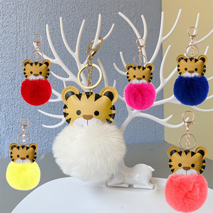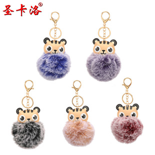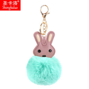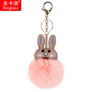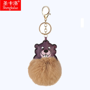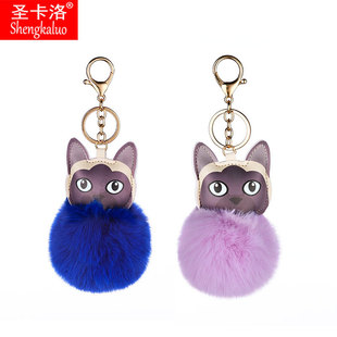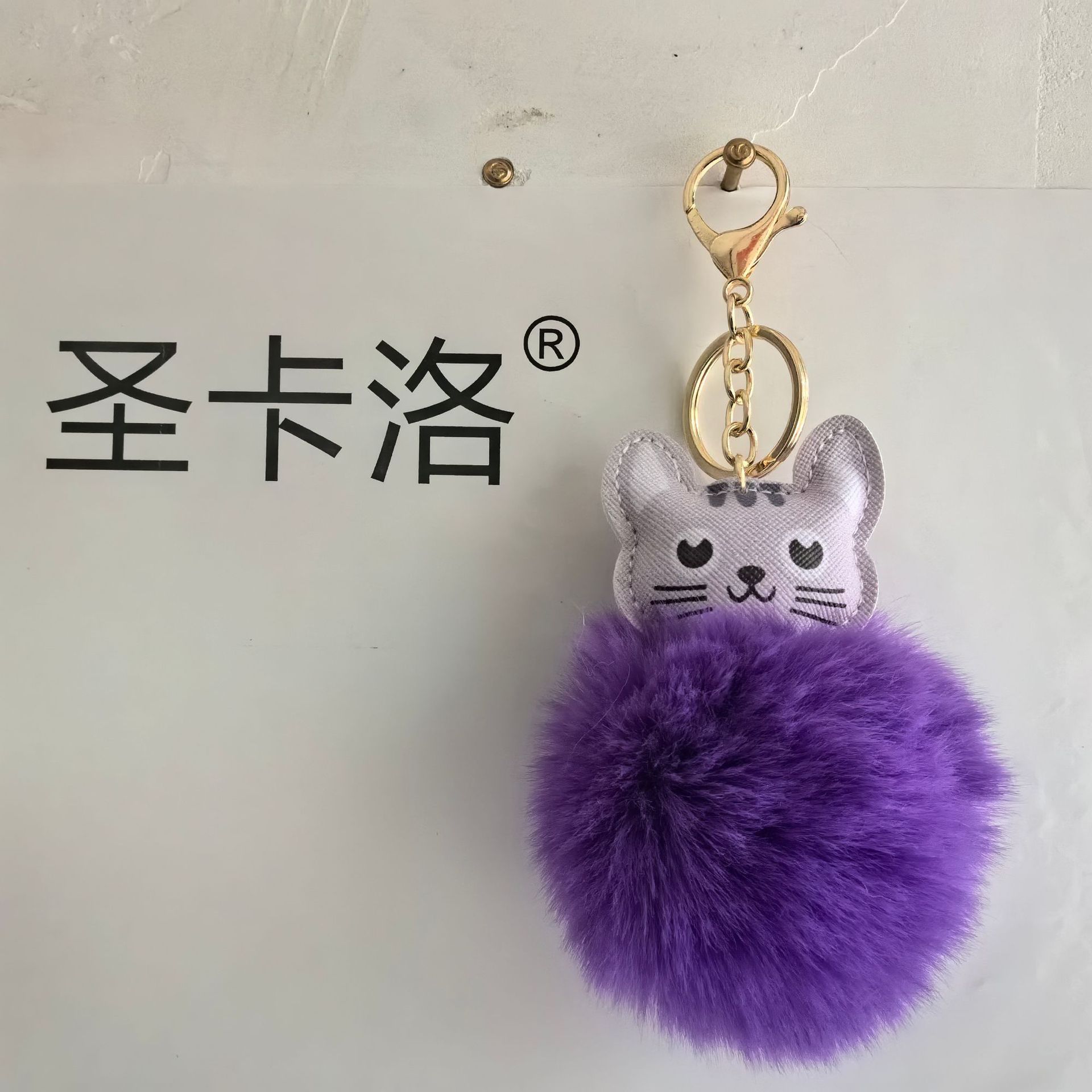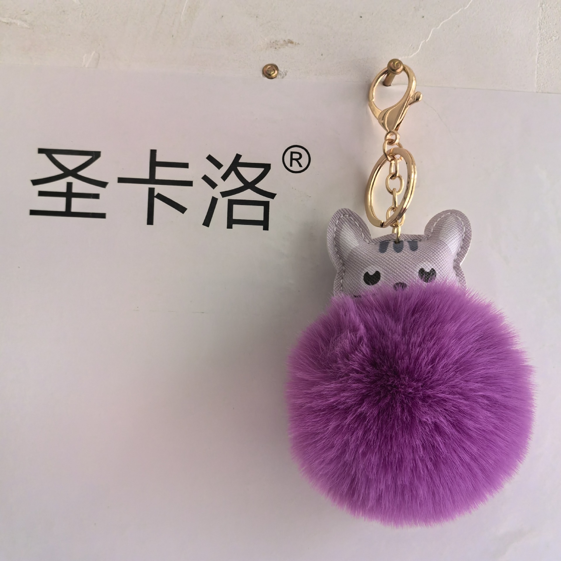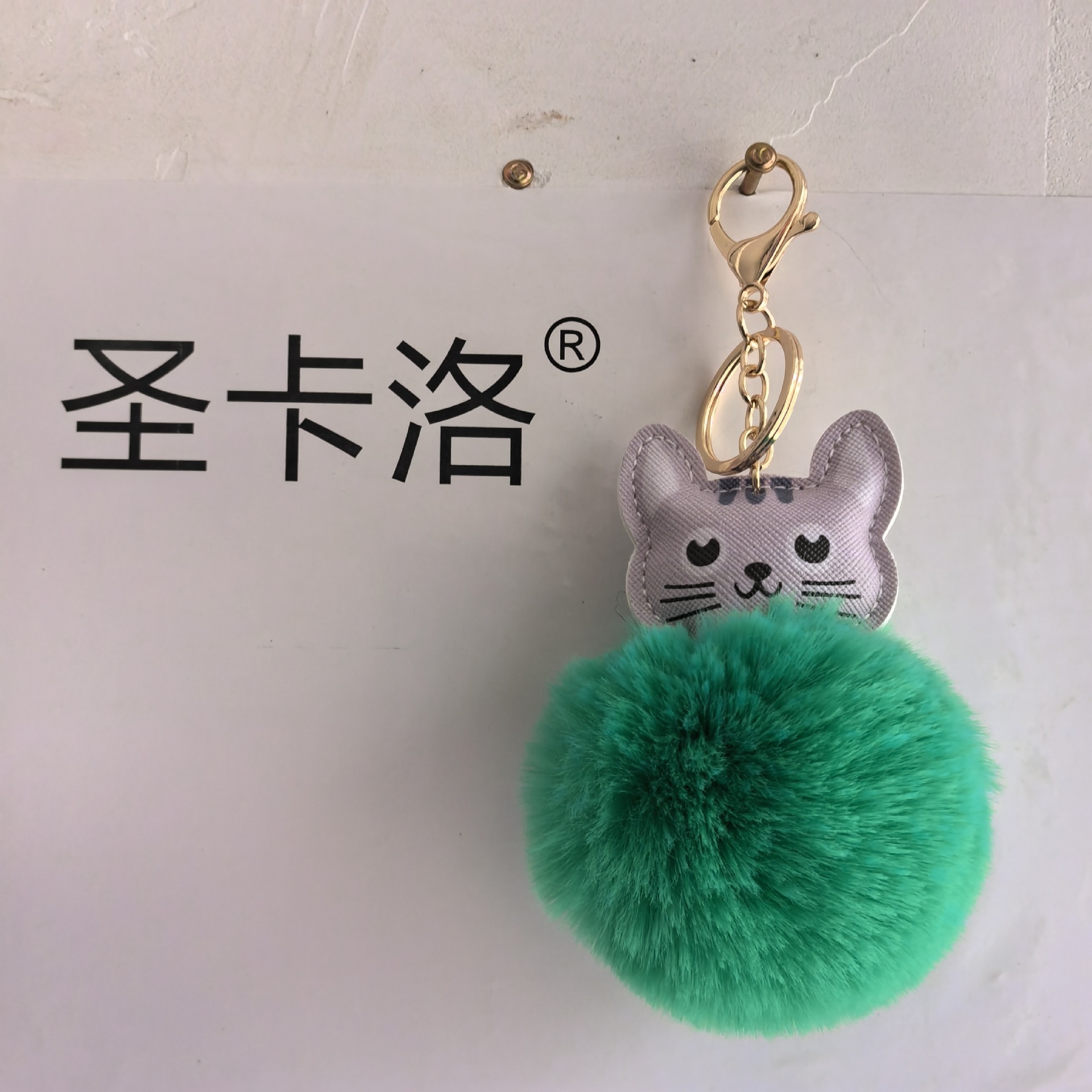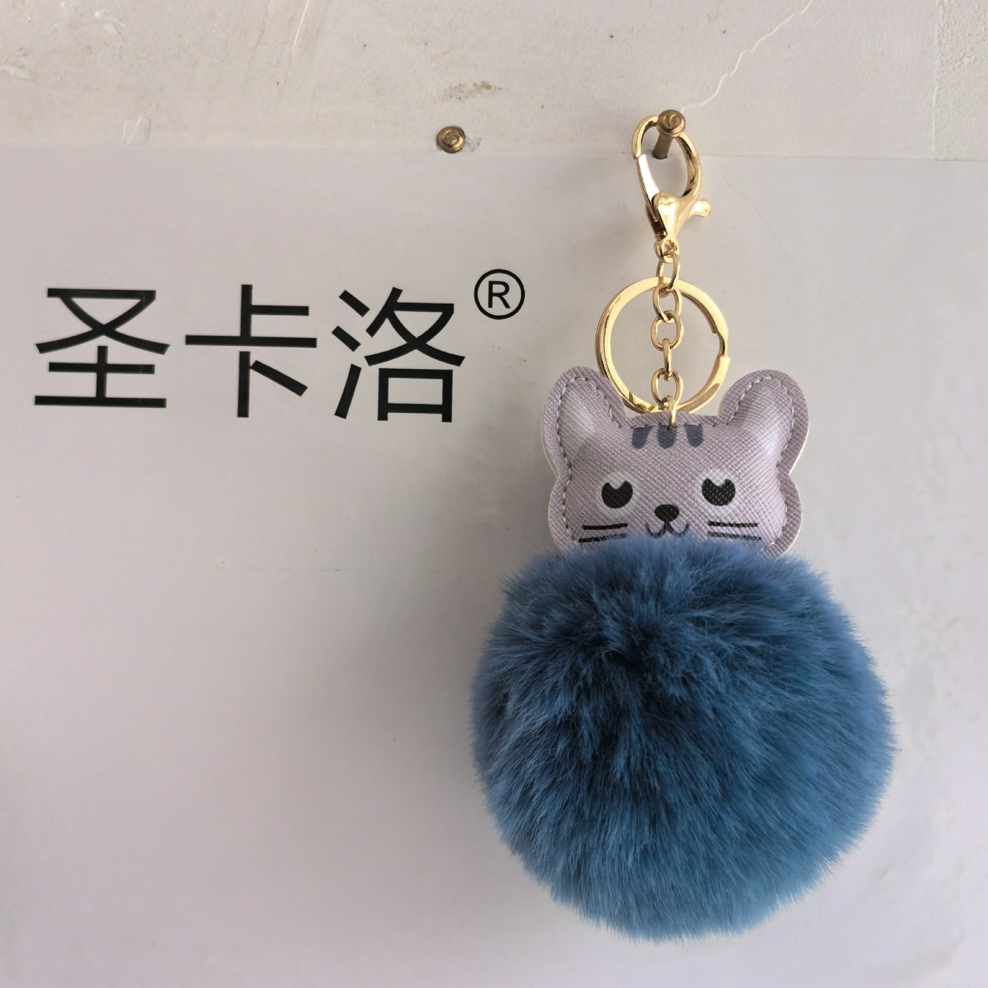 可爱猫咪毛球钥匙扣pu小猫毛绒抓娃娃机獭兔毛球挂件汽车挂饰