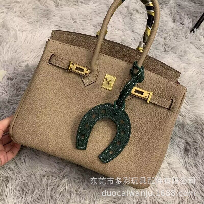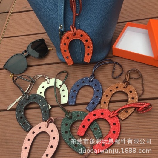 热卖h家马蹄包包挂件pu皮质铁蹄状钥匙扣挂饰小众马蹄皮革挂件